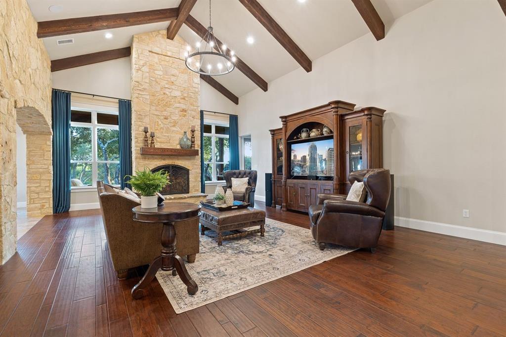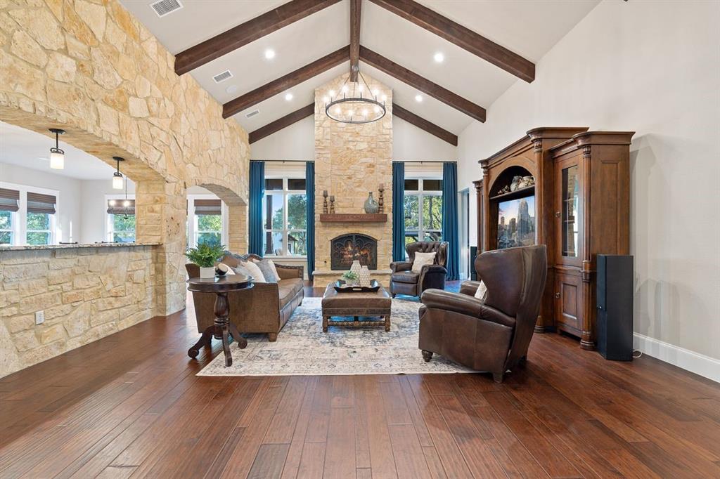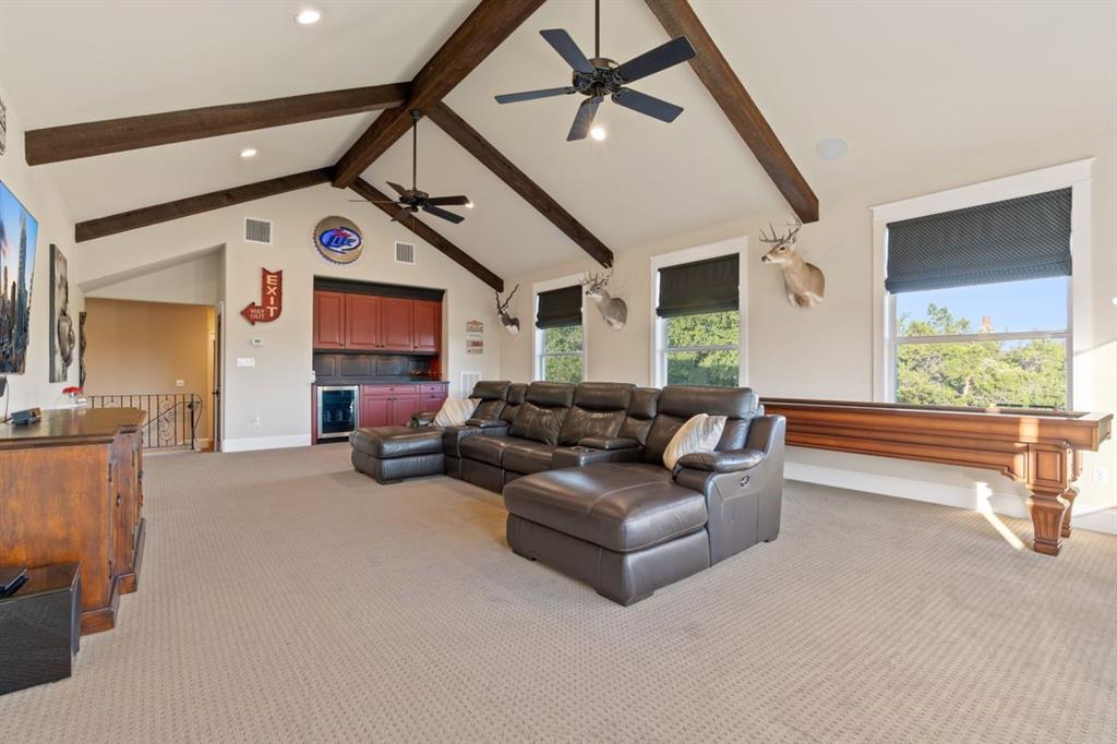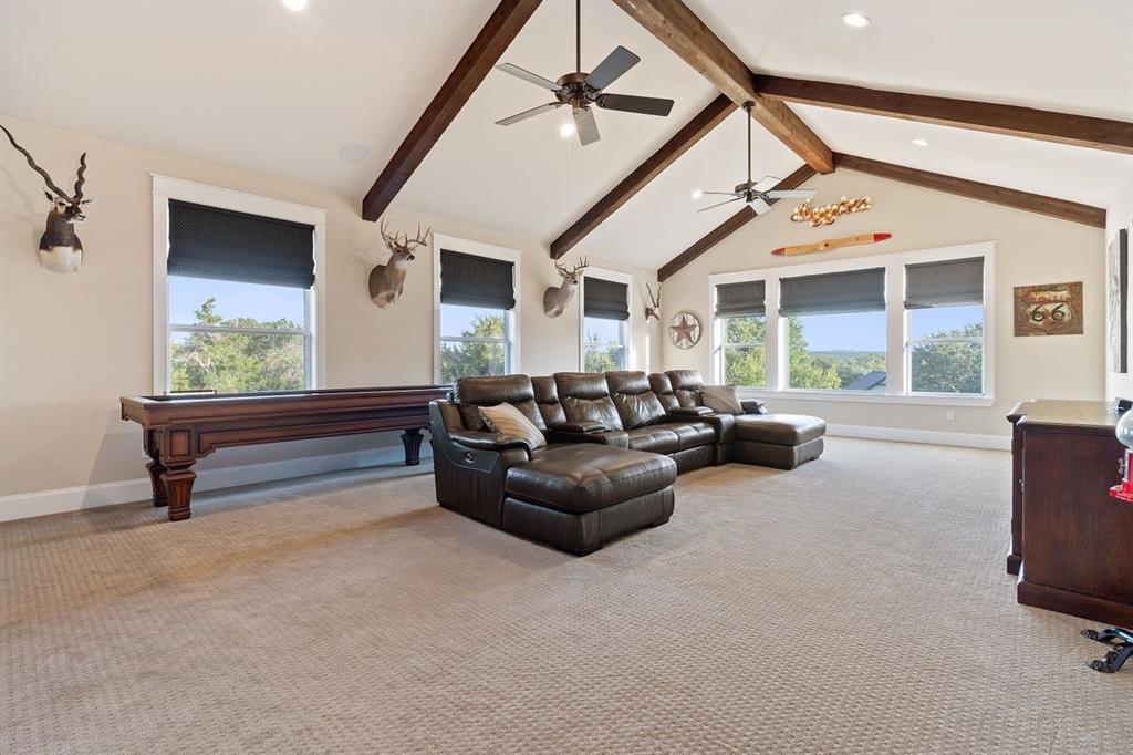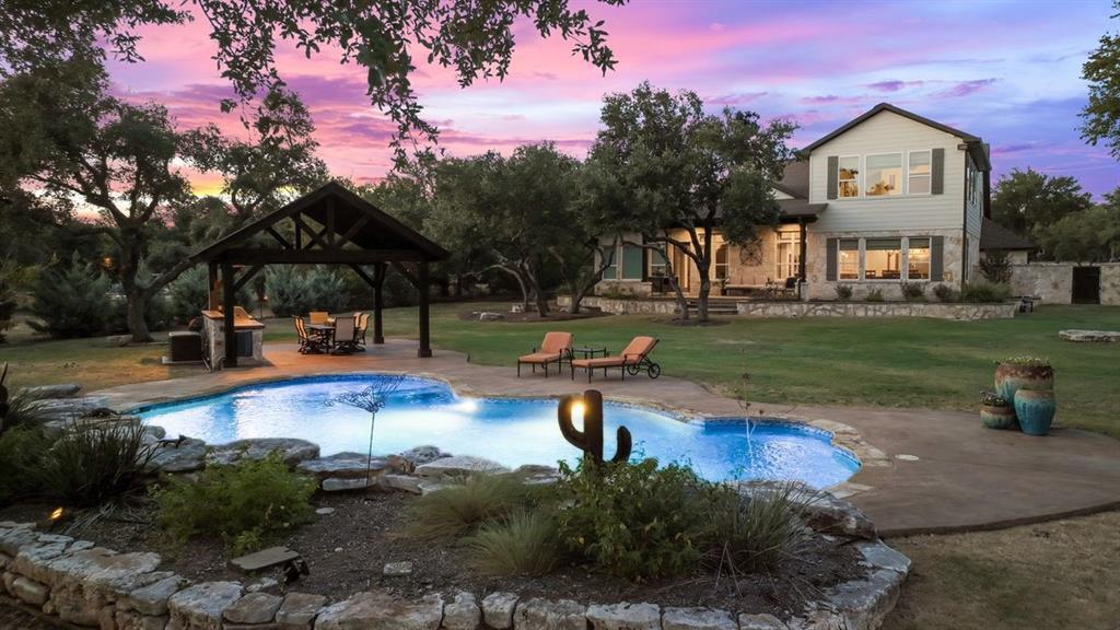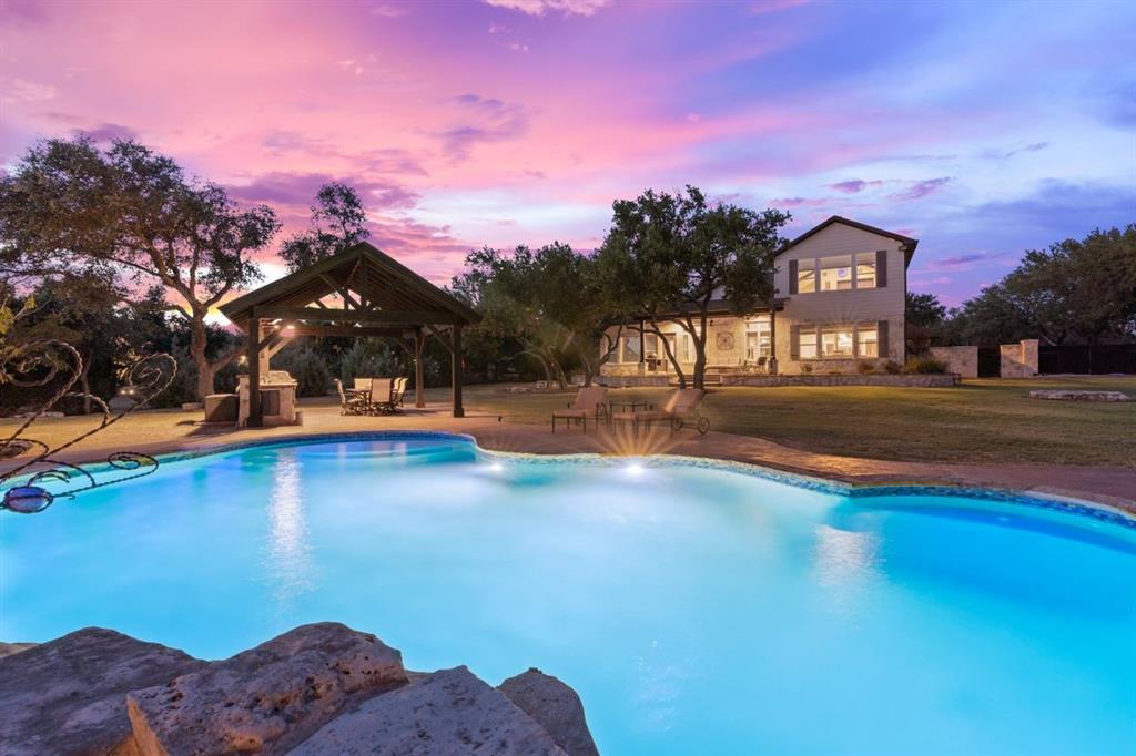 NEW ROOF & WELL PUMP OCTOBER 2023 // This home offers luxurious features & modern amenities within a gated community in the Dripping Springs area. With a spacious 2.2-acre estate this home boasts 4 bedrooms and 3.5 bathrooms, offering ample space for comfortable living. The layout includes various living areas, such as a large family room, formal & casual dining spaces, an office, & an oversized game room. One of the standout features of the property is the private backyard oasis, complete with a casual outdoor living area, a substantial outdoor kitchen, a refreshing refinished (2019) pool, and a large climate-controlled garage/workshop. The garage/workshop has the potential to be converted into a private guest house, providing additional accommodations. The property also has direct & private access to Barton Creek. The property's recent renovations/upgrades include a whole-house reverse osmosis system, 2 propane tankless gas water heaters, a remodeled kitchen, & an addition of a 2nd floor game room. The home was re-plumbed with PEX A during the remodeling process, & custom Kingwood cabinets were installed throughout the downstairs area. Other notable features include Hunter Douglas automatic blinds in the master bedroom & game room. Additional amenities: gas hookups for fireplaces, kitchen range, outdoor grill, & HVAC units showcase the property's focus on comfort and convenience. The detached workshop is insulated and has plumbing available for a sink and A/C, providing versatility for various uses. New septic system installed in 2023, new roof replaced Sept. 2023.