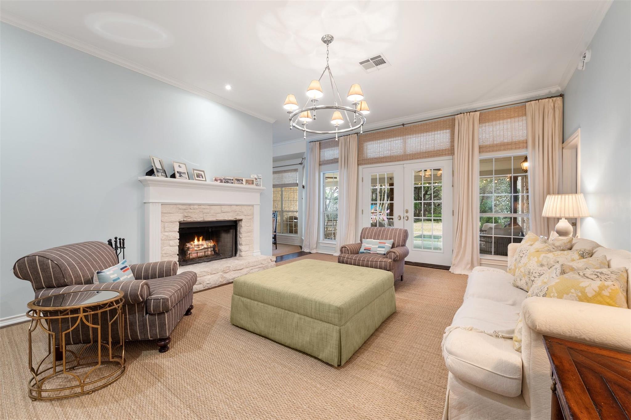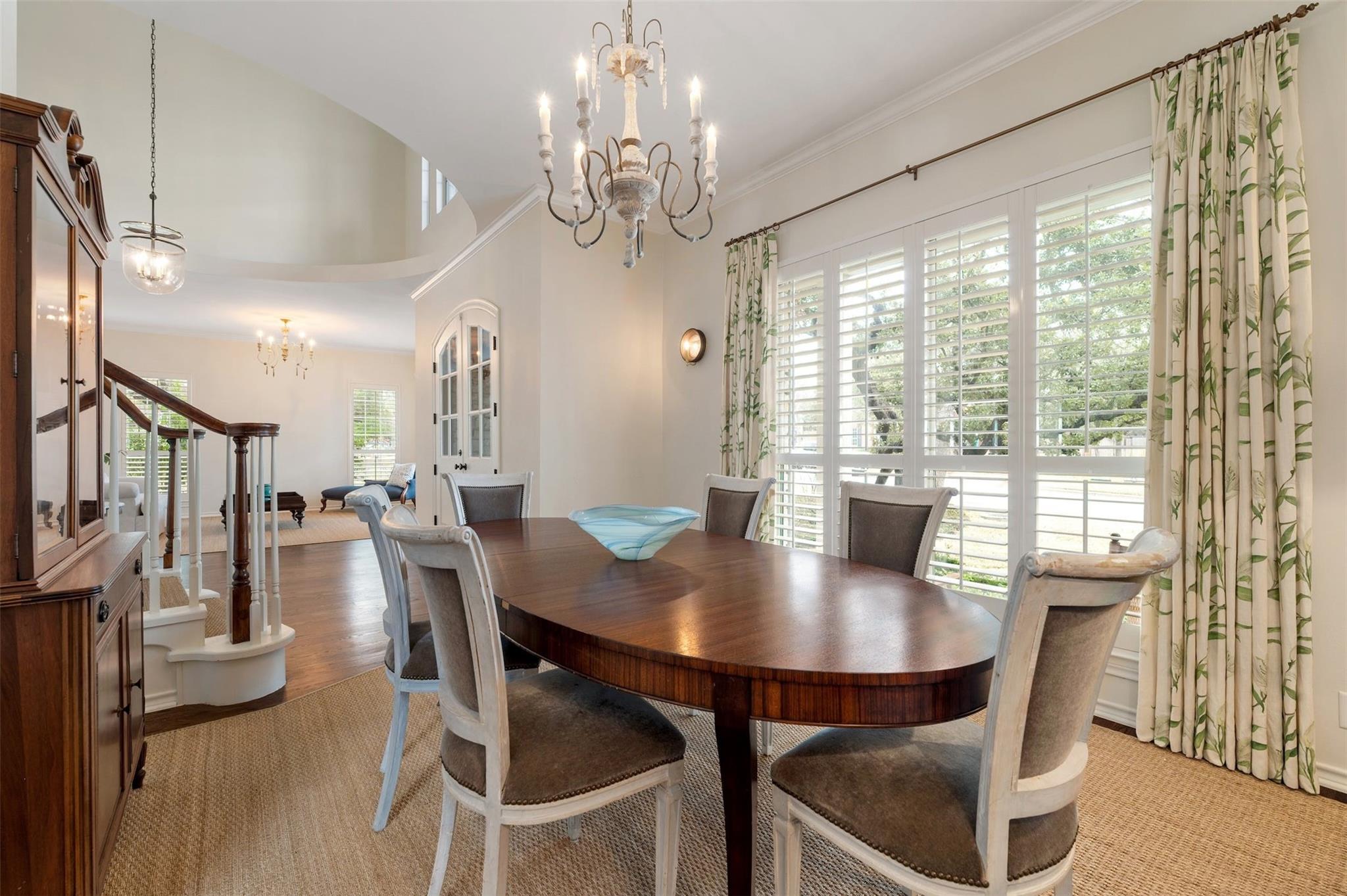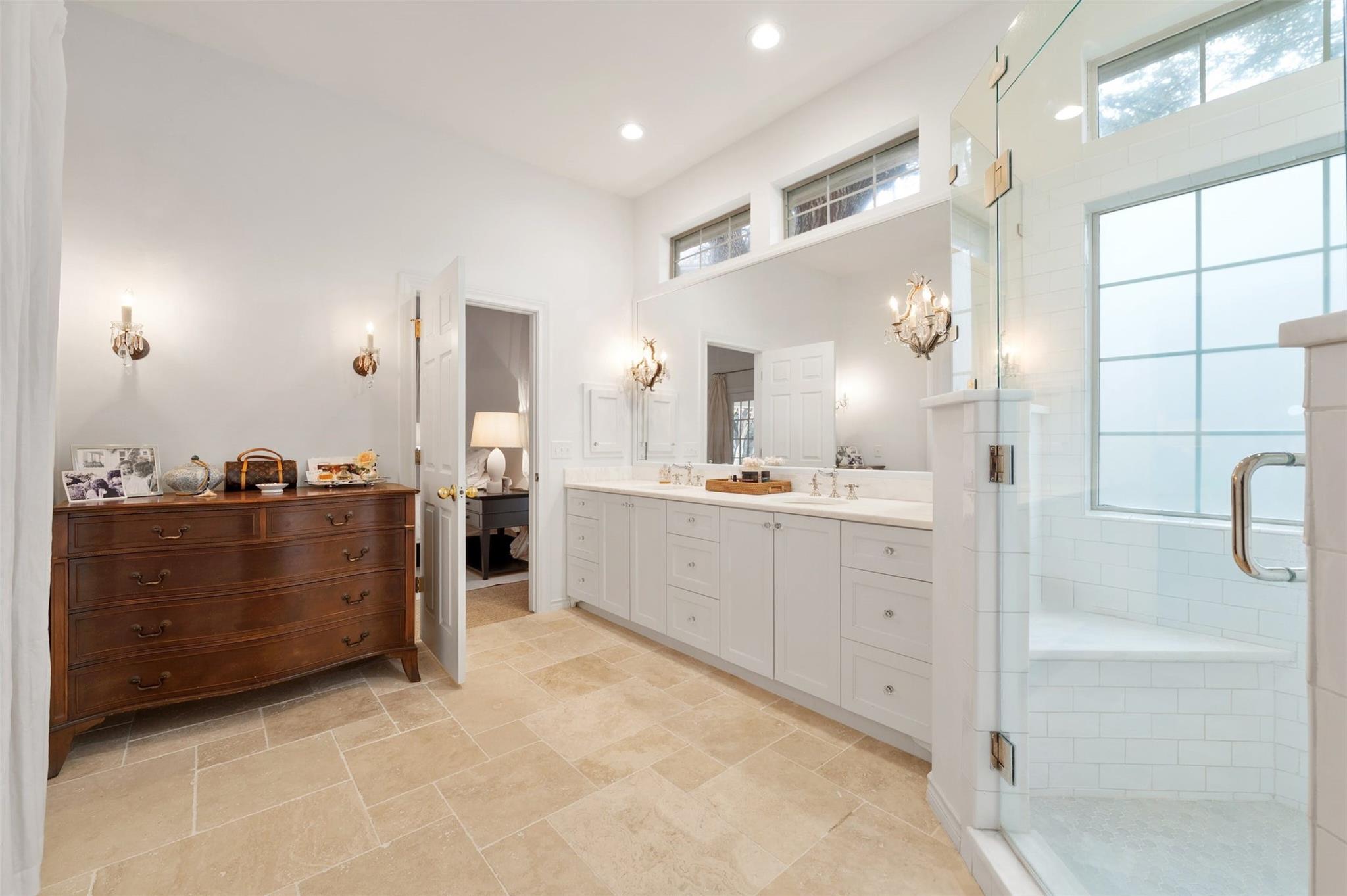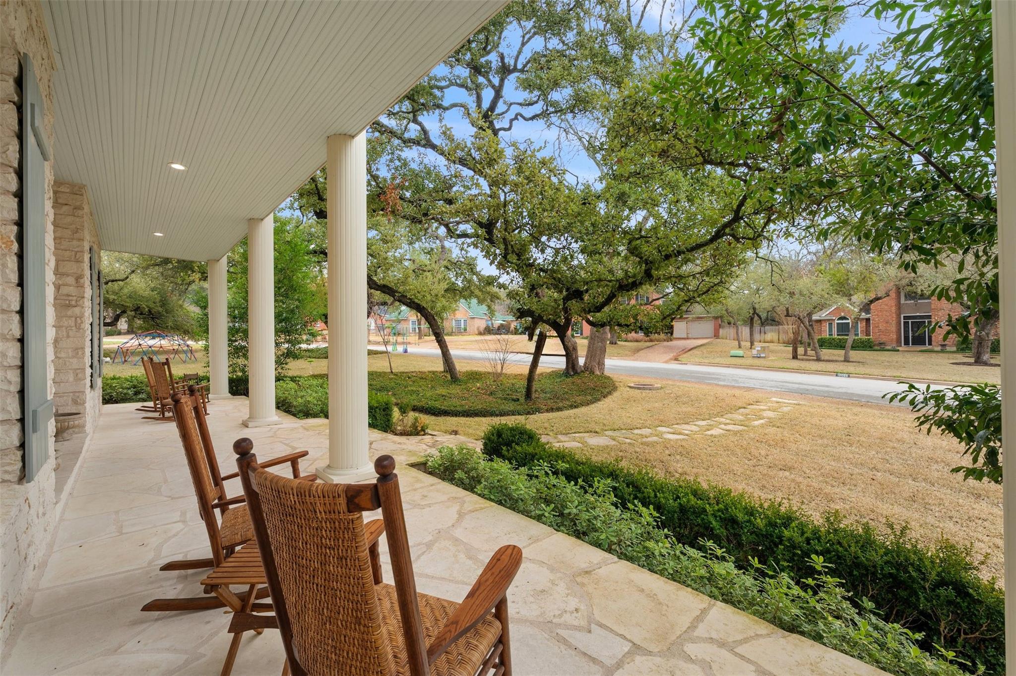 Locally acknowledged as having the best curb appeal in Barton Creek West, this Texas traditional home is straight off the cover of Southern Living magazine. Professionally designed and transformed by a professional designer for her own family, every detail has been thoughtfully planned and executed. From the moment you enter the foyer, a tone of gracious elegance is set by the excellence of the finishes and the efficiency of the floor plan. Open and airy formal living and dining spaces flank the entryway, providing instant warmth and welcome for family and friends and leading to the family room, featuring more character and craftsmanship. The remodeled kitchen includes white marble countertops, butler’s pantries, and bay window breakfast area. Off the kitchen, a remodeled third garage bay has been transformed into a beautiful laundry and mudroom. Rounding out the lower floor is a remarkable owner’s wing. Boasting a spacious bedroom, it also offers a study separated by gorgeous French doors and a marble fireplace. The primary bath was completely reconfigured and beautifully finished with white marble countertops, polished nickel fixtures, limestone floor, frameless shower, and dual walk-in closets. Upstairs, four bedrooms with remodeled Jack-and-Jill bathrooms are divided by a large playroom. All four bedrooms feel as though they are perched in the treetops because their large windows let in a huge amount of light. Outside, the spacious outdoor living space and the covered terraces provide multiple areas for living, dining, and entertaining, all while overlooking the expansive flat lawn bordering greenbelt. This special home, within walking distance of exemplary Eanes schools, is the ideal place to live and raise a family. With two community pools, hundreds of acres of private community nature preserve w/ trails, & neighborhood events like the annual Circleview Halloween parade, families will enjoy this charming home for generations to come.