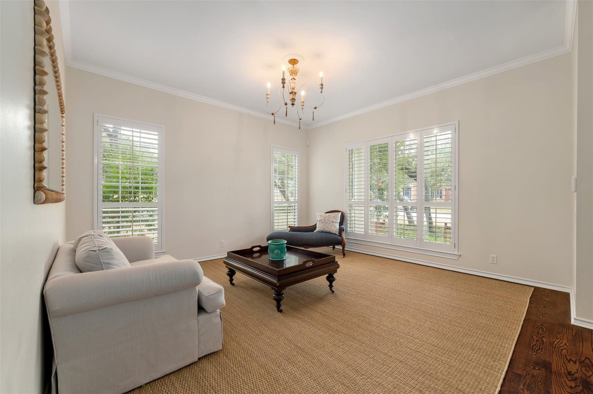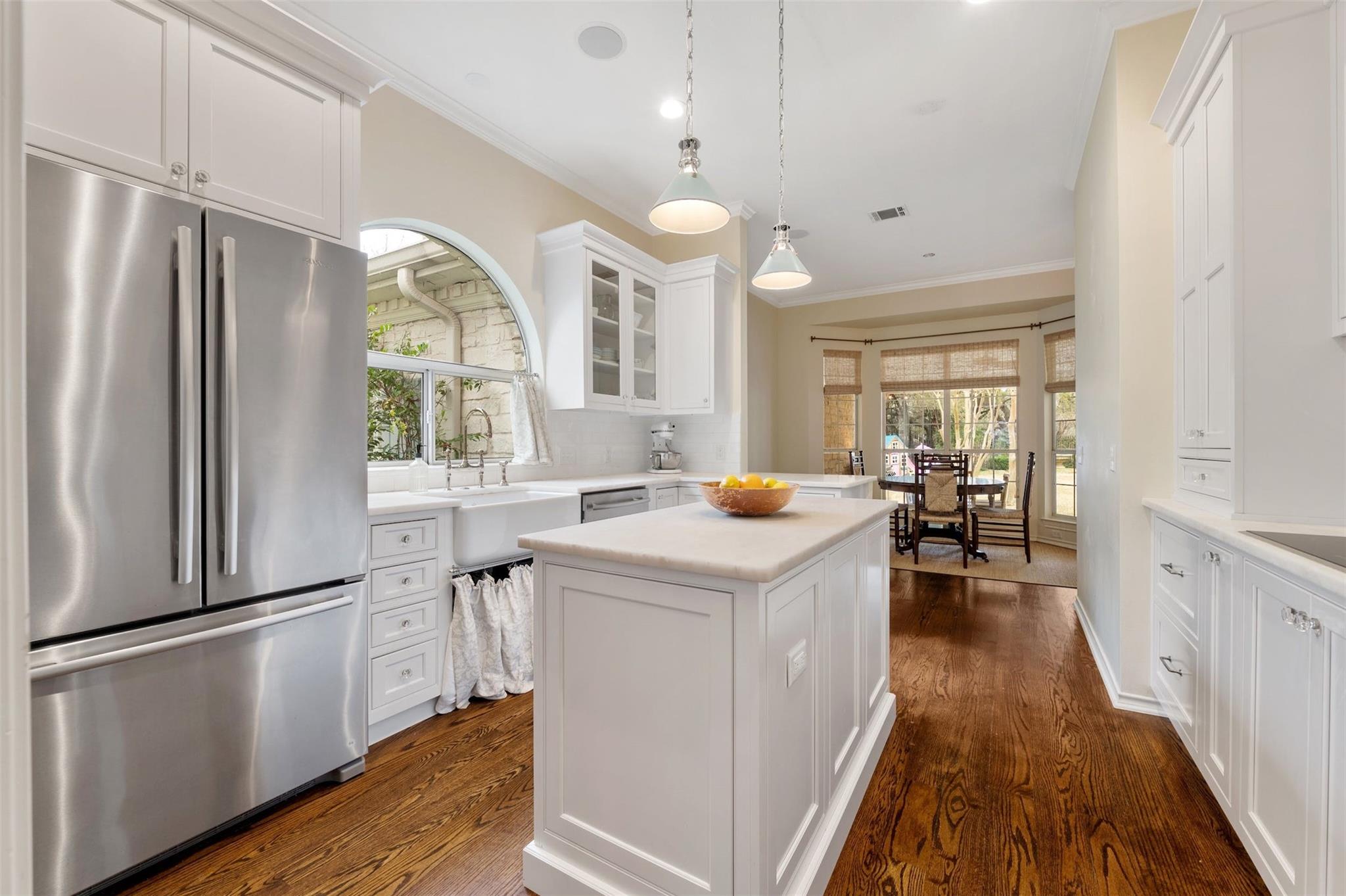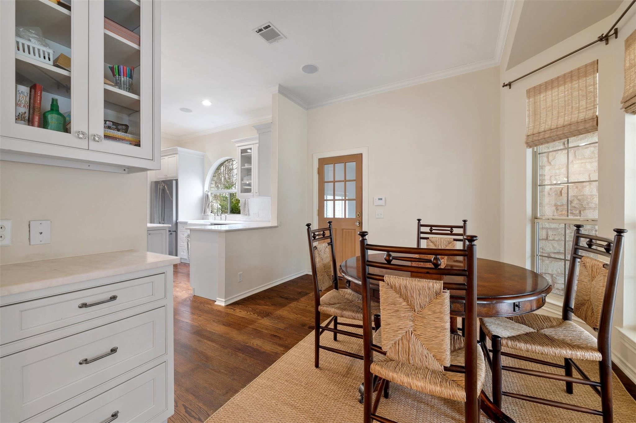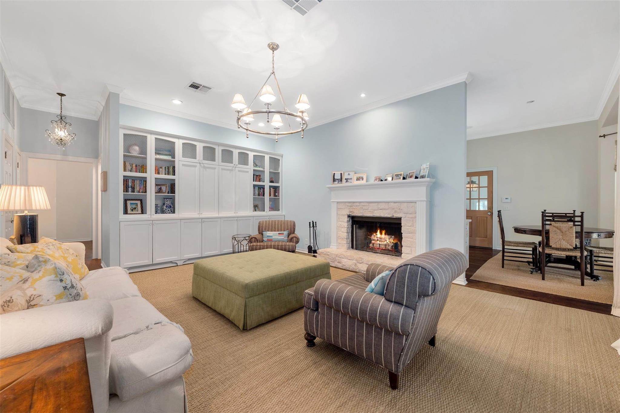 Locally acknowledged as having the best curb appeal in Barton Creek West, this Texas traditional home is straight off the cover of Southern Living magazine. Professionally designed and transformed by a professional designer for her own family, every detail has been thoughtfully planned and executed. From the moment you enter the foyer, a tone of gracious elegance is set by the excellence of the finishes and the efficiency of the floor plan. Open and airy formal living and dining spaces flank the entryway, providing instant warmth and welcome for family and friends and leading to the family room, featuring more character and craftsmanship. The remodeled kitchen includes white marble countertops, butler’s pantries, and bay window breakfast area. Off the kitchen, a remodeled third garage bay has been transformed into a beautiful laundry and mudroom. Rounding out the lower floor is a remarkable owner’s wing. Boasting a spacious bedroom, it also offers a study separated by gorgeous French doors and a marble fireplace. The primary bath was completely reconfigured and beautifully finished with white marble countertops, polished nickel fixtures, limestone floor, frameless shower, and dual walk-in closets. Upstairs, four bedrooms with remodeled Jack-and-Jill bathrooms are divided by a large playroom. All four bedrooms feel as though they are perched in the treetops because their large windows let in a huge amount of light. Outside, the spacious outdoor living space and the covered terraces provide multiple areas for living, dining, and entertaining, all while overlooking the expansive flat lawn bordering greenbelt. This special home, within walking distance of exemplary Eanes schools, is the ideal place to live and raise a family. With two community pools, hundreds of acres of private community nature preserve w/ trails, & neighborhood events like the annual Circleview Halloween parade, families will enjoy this charming home for generations to come.