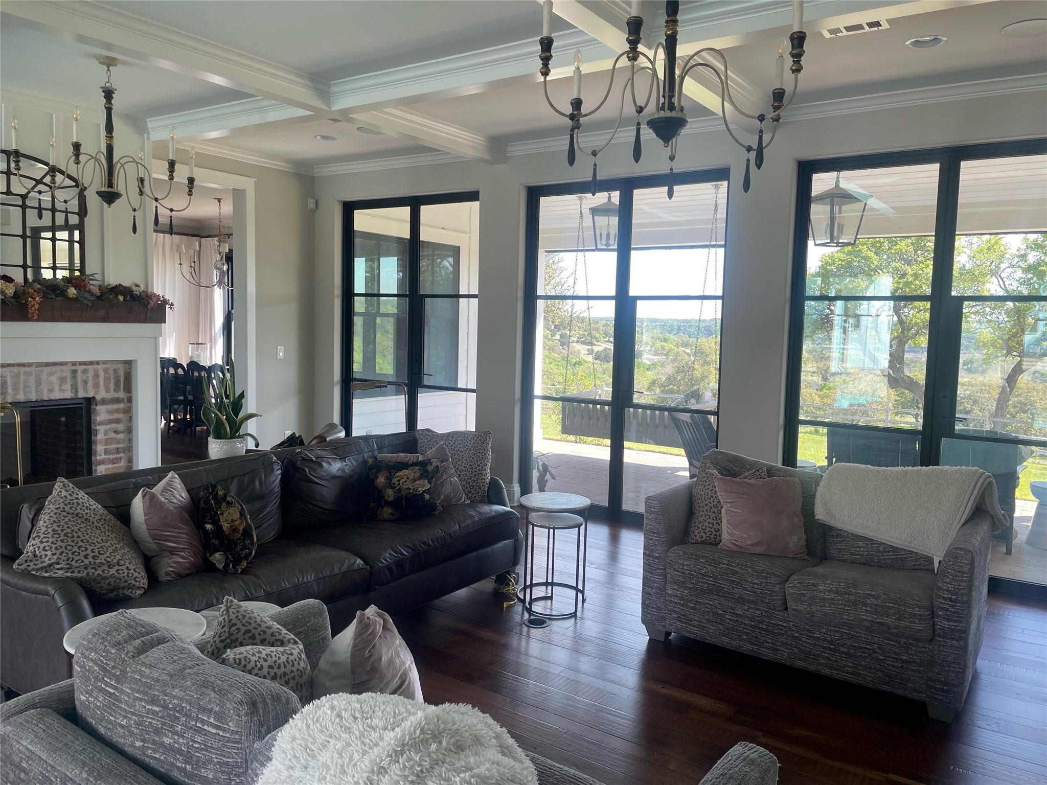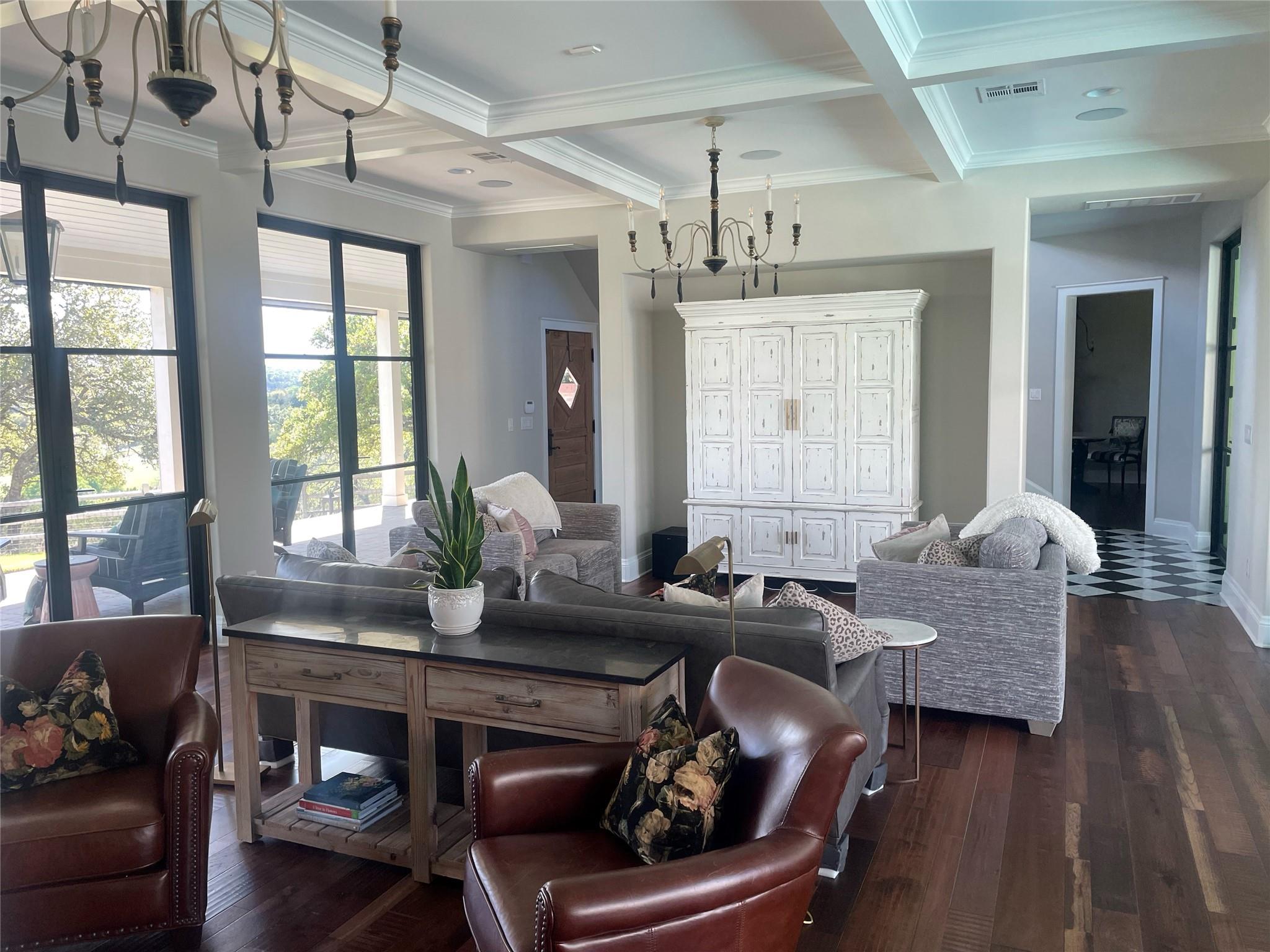 | Interior Features | Two Primary Baths, Two Primary Suties, Bookcases, Breakfast Bar, Beamed Ceilings, Coffered Ceiling(s), Quartz Counters, Crown Molding, Double Vanity, Electric Dryer Hookup, Eat-in Kitchen, Entrance Foyer, French Doors, High Speed Internet, In-Law Floorplan, Kitchen Island, Multiple Living Areas, Pantry, Recessed Lighting, Smart Thermostat, Soaking Tub, Sound System, Storage, Two Primary Closets, Walk-In Closet(s), Washer Hookup, Wet Bar, Wired for Data, Wired for Sound | |