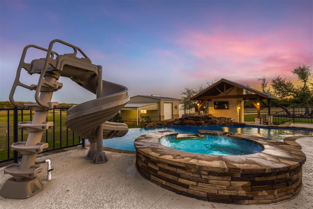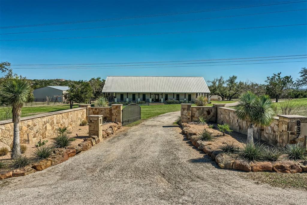 Welcome to a true Texas Gentleman’s Ranch that is a lifestyle property like no other. Enter the 11 acres through a grand, gated, rock entry where you're immediately met by huge oak trees, well-manicured grounds, lush grass and pastures. A paved drive leads you to a nicely appointed custom, Tx Ranch Style home with an inviting, covered, wrap around porch featuring limestone and rough-cut cedar columns. This Ranch Style home features 4 BD/ 3.5 BA, wood flooring, soaring 18 ft beamed ceilings and plenty of natural light with beautiful hill country views from every window. Chefs’ kitchen features double ovens, gas stove and high-end stainless-steel appliances. Dining and living room feature designer chandeliers that perfectly fit the space and highlight the 18 ft ceilings. The centerpiece of the living room is a grand limestone fireplace. Glass doors open to an outdoor entertainers paradise! The expansive outdoor living area is truly one if a kind, featuring a negative edge, resort style pool, (with heating capability), hot tub, and rock waterfall with a deck mounted slide. Relax around the large stone fire pit, custom built outdoor kitchen, bar, tv and flagstone sundeck. Enjoy the breeze while overlooking the Tx hill country views, even an authentic Tx windmill. Property also includes a 4,000 sq ft indoor baseball facility/ sports court! Additionally there is a 2,200 sq ft metal building/ garage space with roll up doors/ windows and passage doors. Property is well suited for horses, including a 1,600 sq ft shelter, stall, riding arena and tack room. There is also a 30K gal rainwater collection, Generac generator, well water storage tanks, irrigation system, and landscape lighting. Only 25 min to Austin, 10 min to Bee Cave, and right in the mix of hill country favorites like wineries, breweries, swimming holes and the Pedernales River. This is a special, unique, “lifestyle†property offering endless possibilities. This is the kind of place you never want to leave…