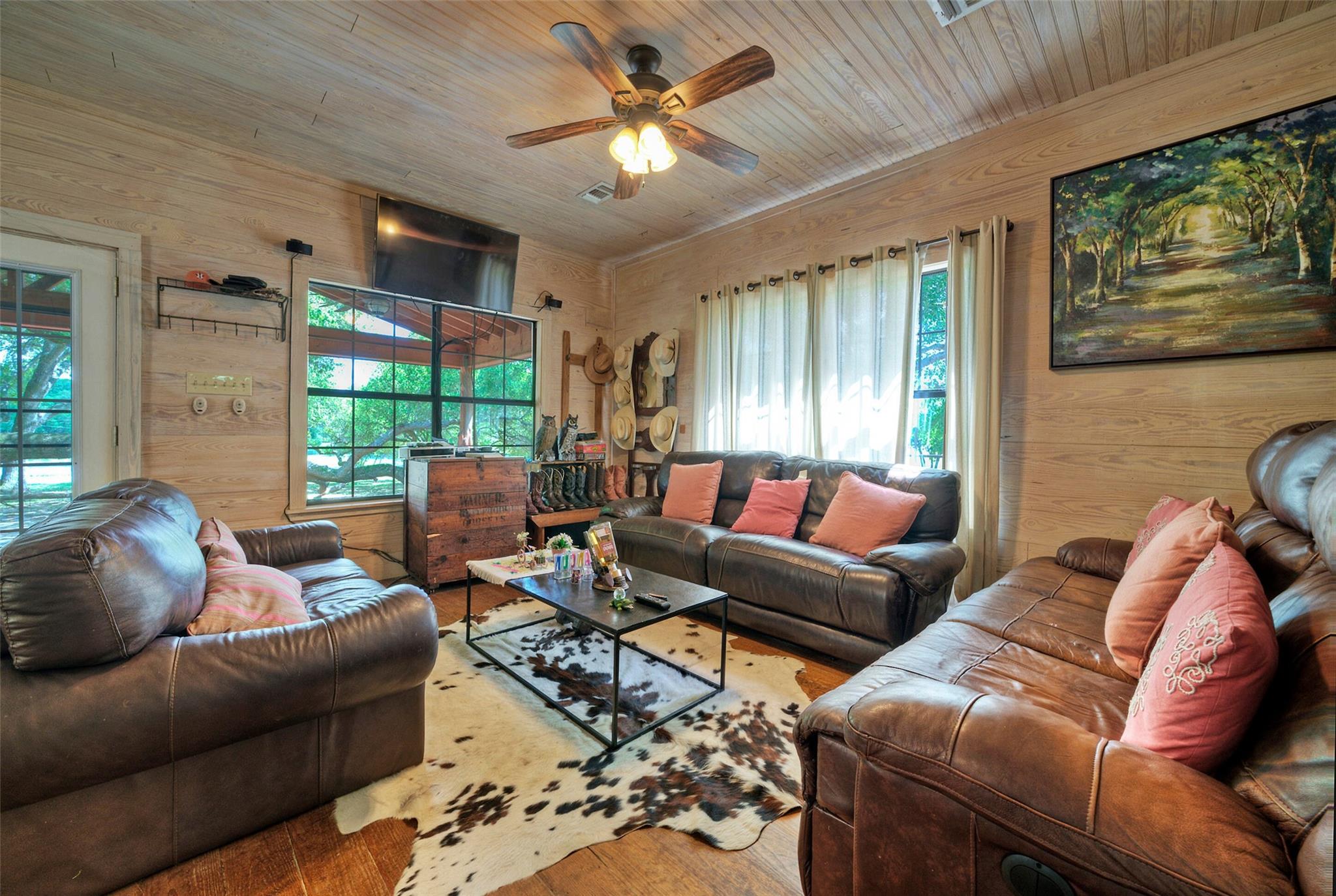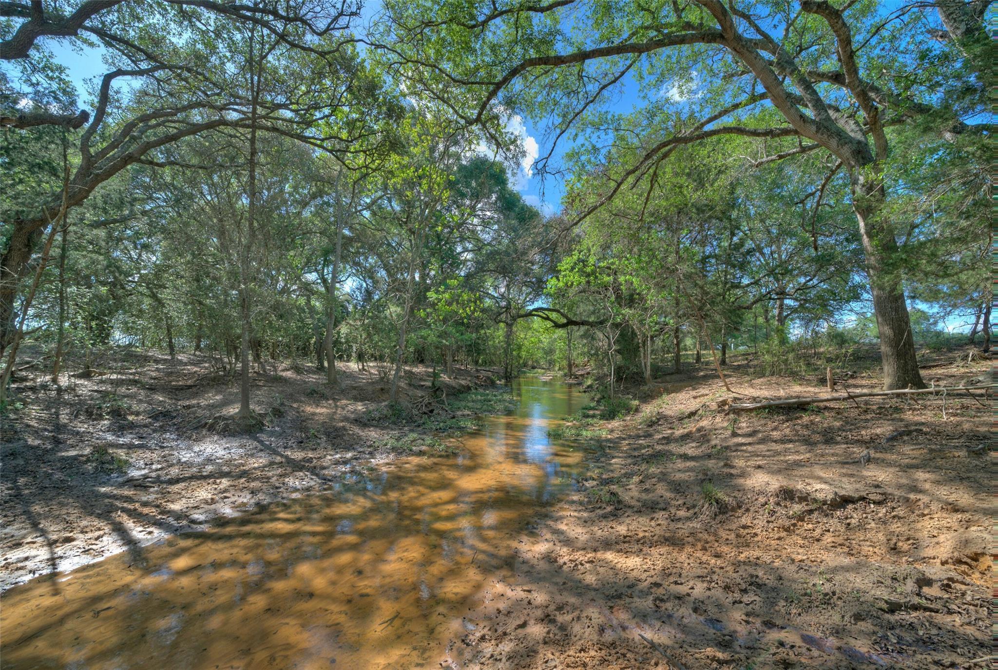 Situated on 143+/- acres of breathtaking land, this property is often referred to as the Hamptons for Houston Ranch Buyers. Conveniently accessible from Hwy 71 or Interstate 10, and just an hour away from downtown Houston and 90 minutes from Austin, this ranch offers a serene escape in the heart of Austin County countryside. The landscape of this ranch is truly picturesque, adorned with magnificent live oaks, a tranquil pond, and a meandering mile-long Schweiner Creek that flows through its core. This park-like terrain exudes tranquility and natural beauty. The ranch has two charming cabins that have been beautifully remodeled, ensuring ample space for family and friends. Imagine sitting on the back porch, surrounded by the majestic canopy of live oak trees, while overlooking a 1.5 acre pond with an island in the middle. This recreational haven is perfect for both hunting and fishing enthusiasts, providing a sanctuary to unwind and connect with nature. The property boasts two wells strategically located to provide ample water throughout. Additionally, there are two outbuildings, a luxurious shooting range, and a large insulated toy barn/RV barn that has been finished out with commercial HVAC and a bathroom. These amenities add a touch of luxury and convenience to the ranch, enhancing the overall experience for its owners. With over 3,000 feet of road frontage, the property is bordered by lovely split rail fencing and features a custom, laser-cut driveway gate along Frantz Rd. Both perimeter and cross fencing are in place, and the ranch benefits from an Ag exemption for hay and cattle. This ranch is truly a one-of-a-kind property that offers limitless possibilities for outdoor enthusiasts, hunters, ranchers, livestock, and those seeking a tranquil retreat.