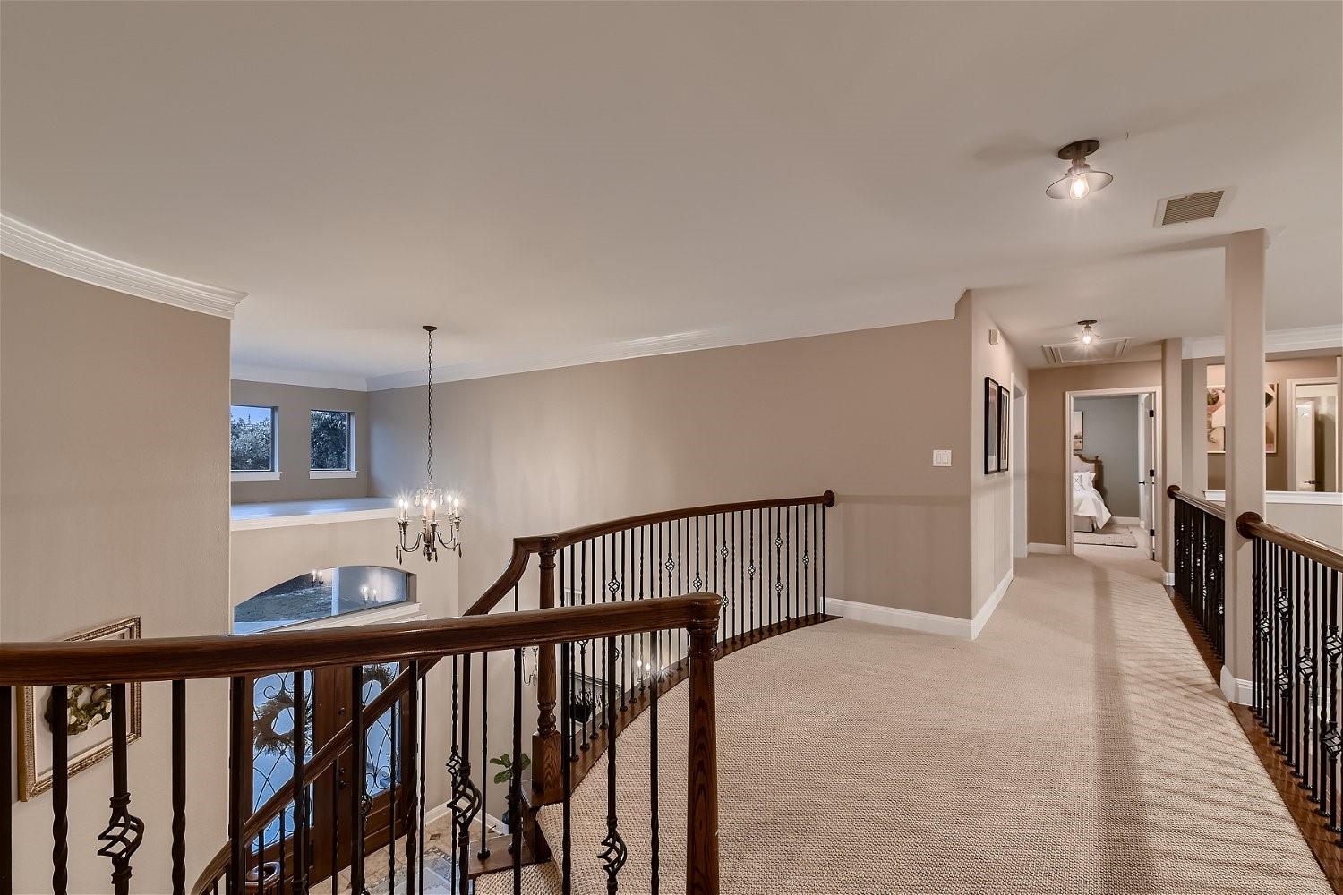 Gorgeous estate home in the sought-after community of Bella Lago. At the end of Cuernavaca with low traffic, you'll love the estate-sized lots and close proximity to Lake Austin! Enjoy a community park on the shores of Lake Austin! This executive-style home features a gourmet kitchen that has been updated/remodeled that opens to the family room with an impressive floor-to-ceiling rock fireplace. The primary suite exudes class and luxury! You'll love the large walk-in closet with built-ins, a coffee bar, soaring ceilings and spa-like bathroom. The downstairs guest bedroom can also be used as an office. Upstairs you'll find three large bedrooms with wonderful closet space, two full baths and a huge game/media room. Tracking to some of the best schools in the country! LOW TAX RATE!