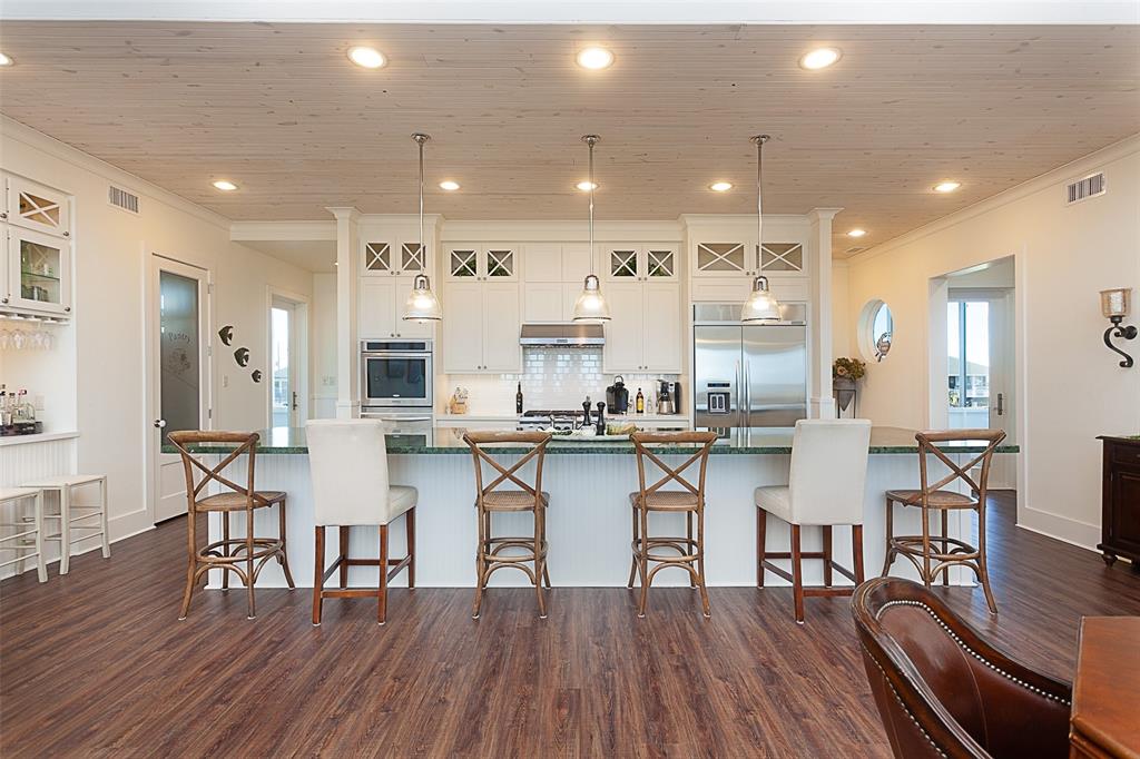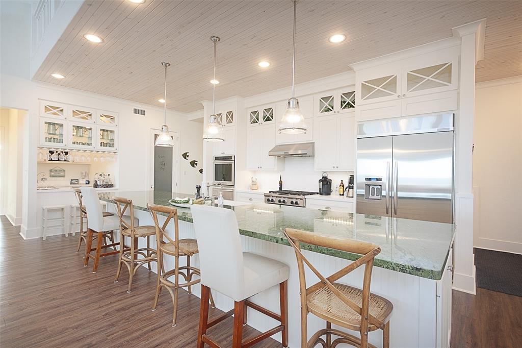 Beautiful custom beach front home with everything you could ever imagine. Gorgeous Gulf of Mexico views & a massive wrap arounddeck with two screened porches. All 6 bedrooms include private baths, 4 of the bedrooms have deck access. Oversized, gourmet kitchen, wet bar, 2 offices & a game room that's open to the first floor. Don't miss the loft in the game room that's a perfect reading nook with afabulous water view all on a huge beach front lot. Media Rm W/stadium seating. Spend days on the beach and play volleyball on the litcourt at night. Pretty colors throughout, granite, marble, stainless appliances, claw foot tub, huge showers in every bathroom. Perfect forlarge groups with tons of covered area under the house w/built in tables to enjoy outside meals or relax while listening to the waves onthe beach. All windows have storm shutters, generator powers part of the house. Beach walk access is really close. Smaller office @kitchen has been prepped for elevator.