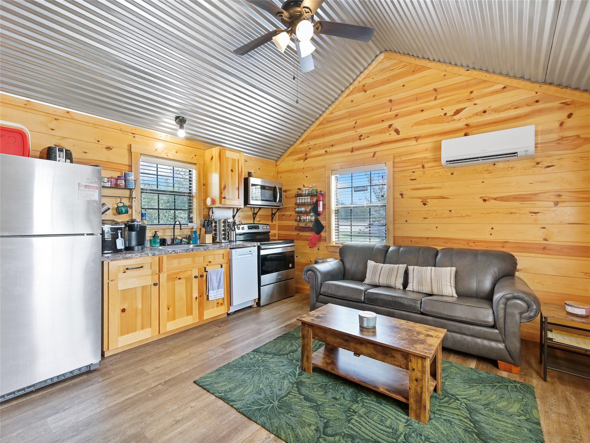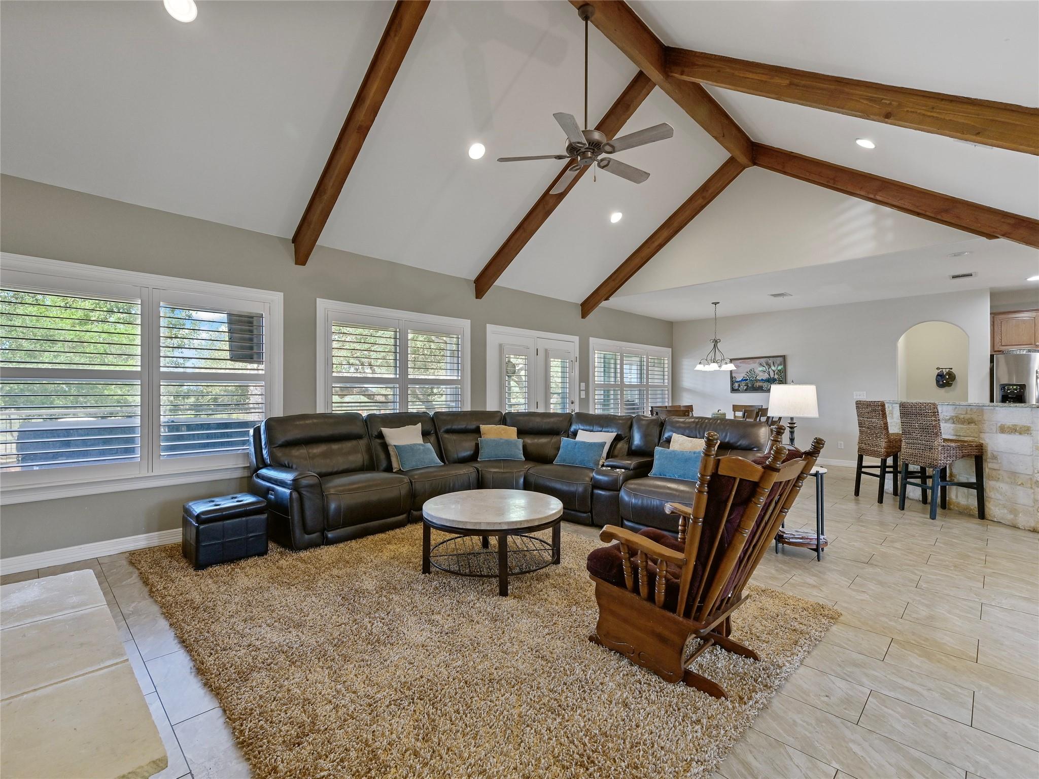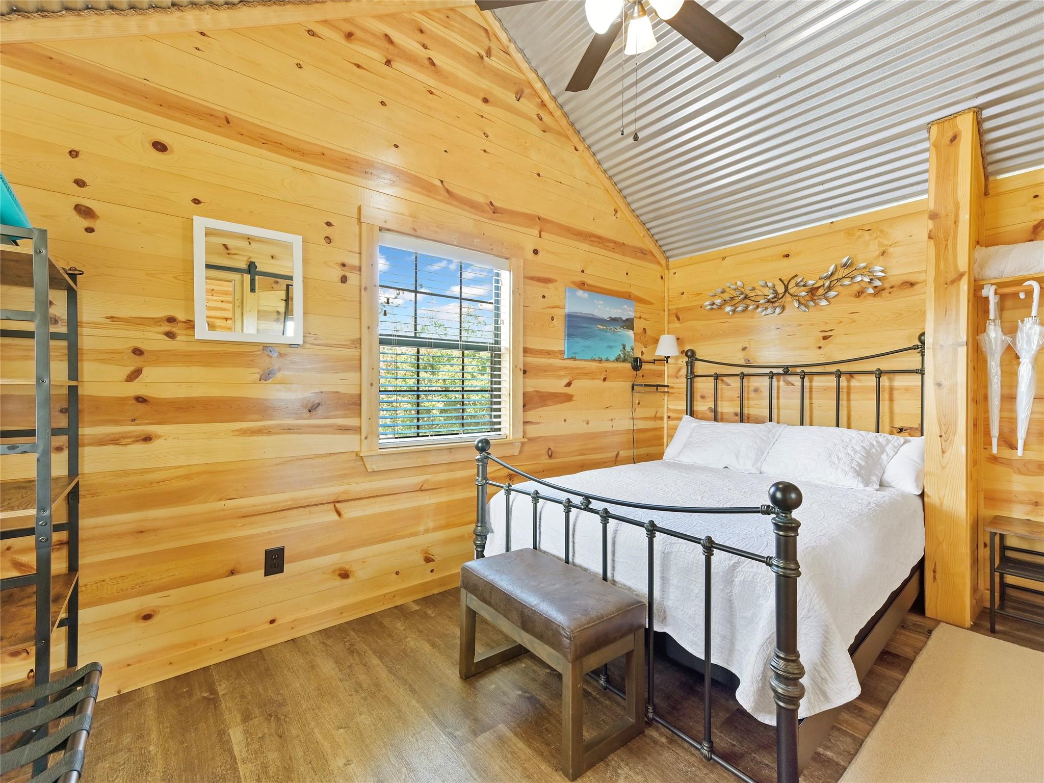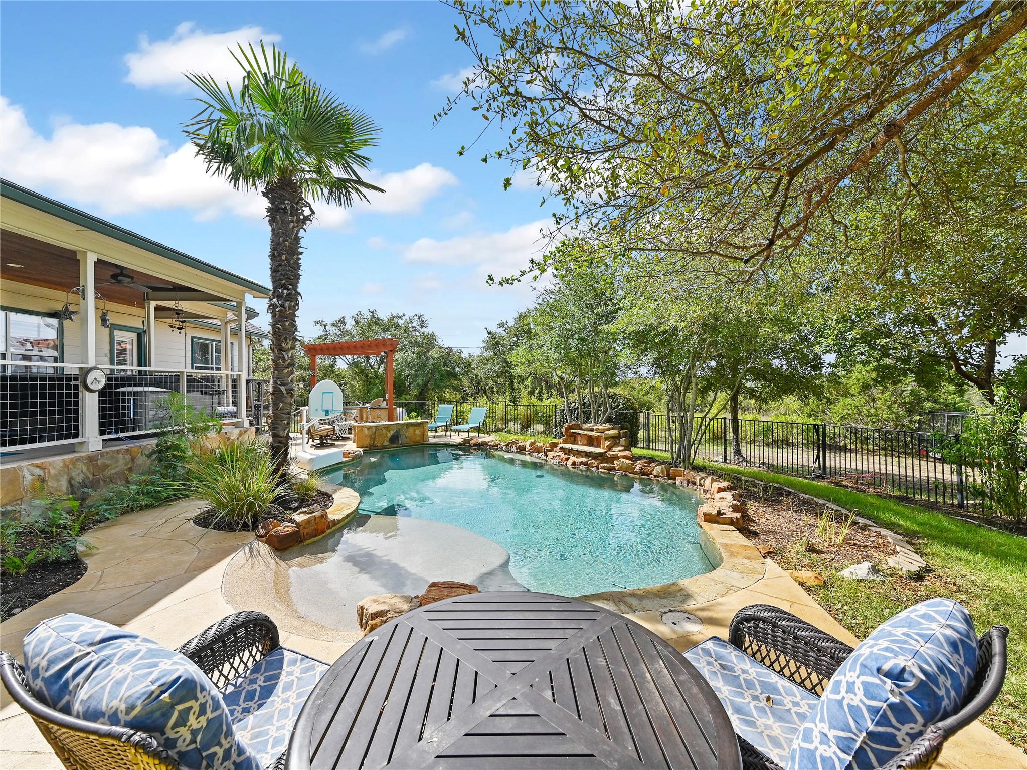 Discover an incredible opportunity in the enchanting Hill Country! Nestled just off Fitzhugh Road, this sprawling 5-acre parcel beckons with its proximity to charming wedding venues, breweries, wineries, and distilleries. The centerpiece of this property is a spacious 2,480 sqft, 3-bedroom, 2-bathroom main home boasting an open floor plan with beamed vaulted ceilings and a grand wood-burning fireplace. The kitchen seamlessly flows into the family room and breakfast area, creating a warm and welcoming atmosphere. The primary bedroom is generously sized, accompanied by a luxurious bath. An office space offers the flexibility of transforming into a fourth bedroom.Step outside, and you'll be greeted by a private pool with a cascading waterfall, providing serene views of the picturesque Hill Country. But that's not all – this property also features four fully furnished 1-bedroom, 1-bathroom, 460 sqft cabins that are in high demand as Airbnb rentals. These cabins encircle a cozy fire pit area and meticulously landscaped grounds, complete with a refreshing pool and swim spa.With the potential to expand the rental offerings by incorporating the main house and adding more cabins, the income-generating possibilities are immense. And best of all, this property is unrestricted, allowing for a wide range of potential uses and developments. Seize this golden opportunity in the heart of the Hill Country!