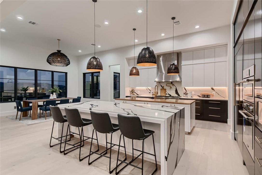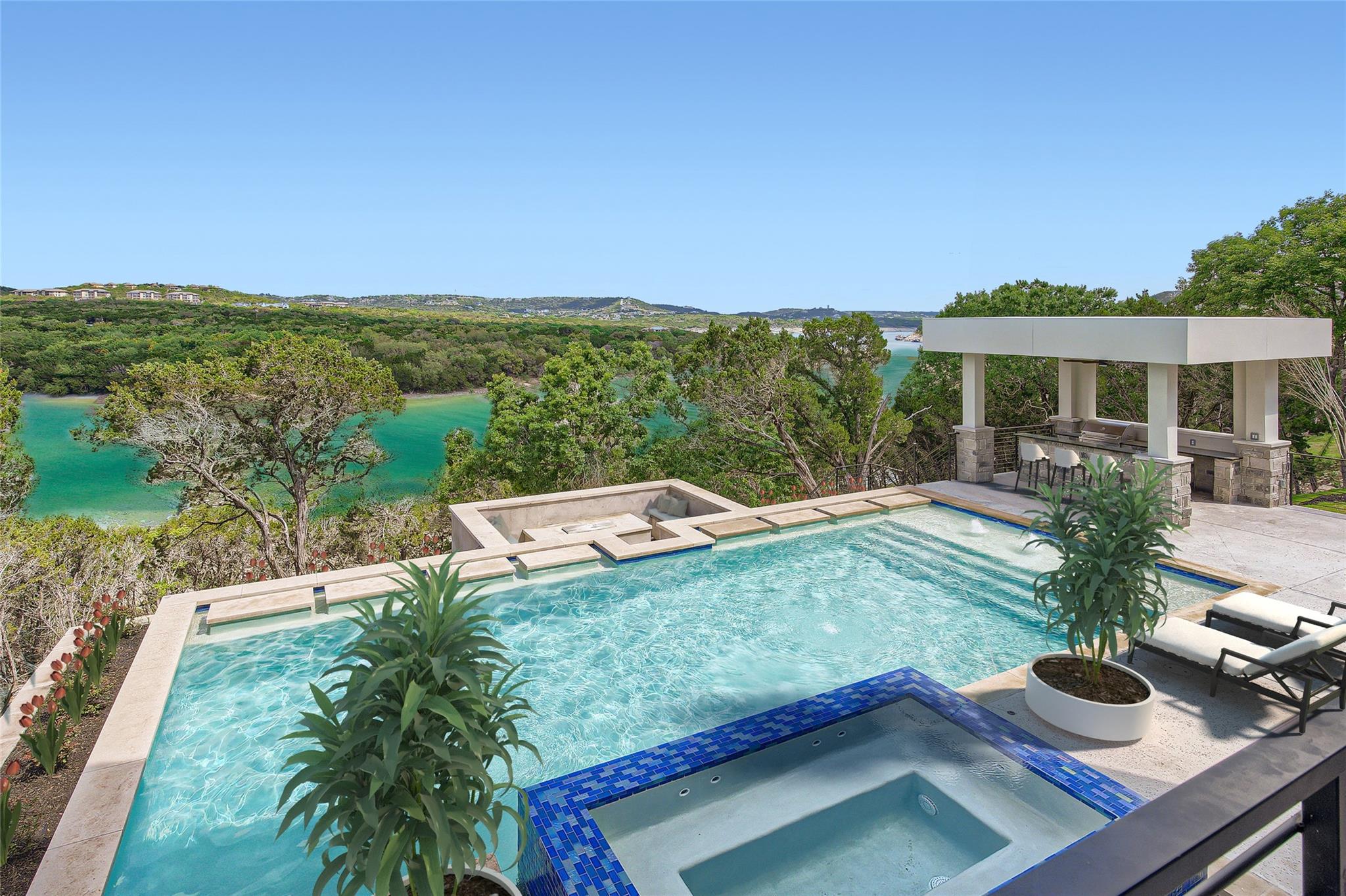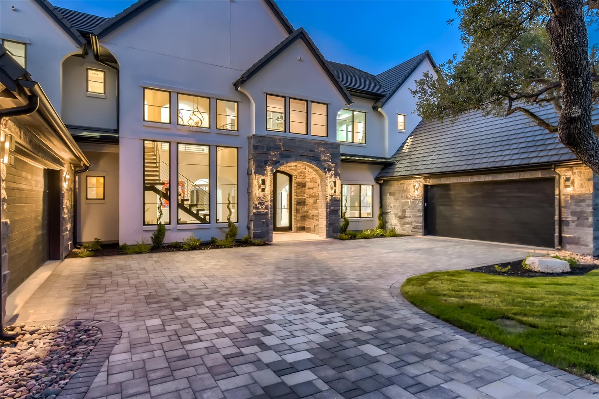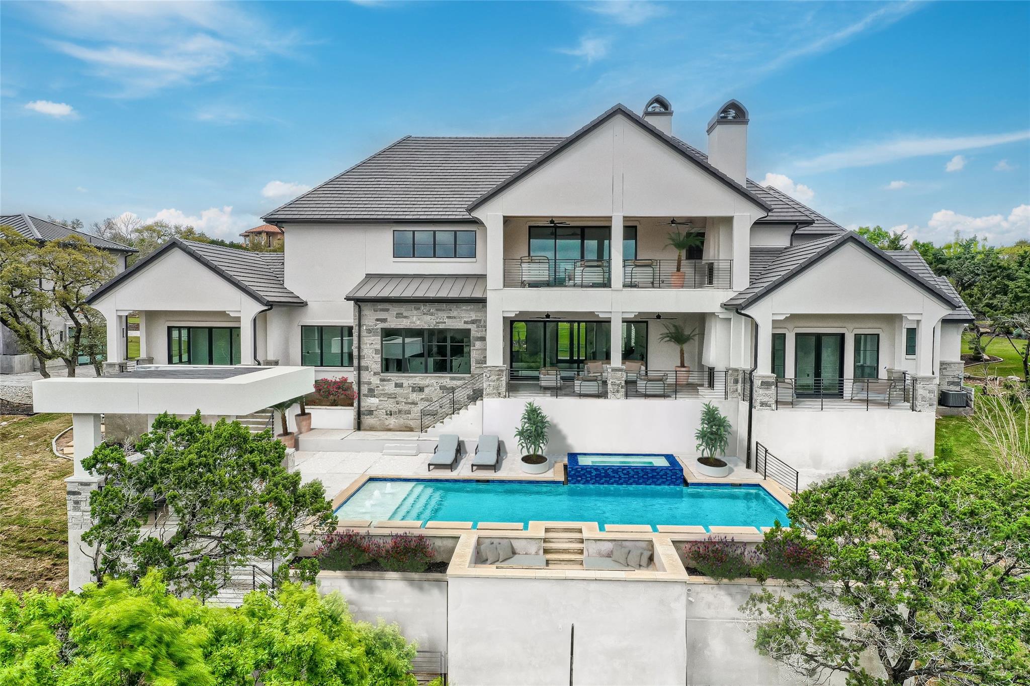 Fully furnished, and for those financing, a rate buydown, zero down payment program, or seller-financing makes it easy to call this remarkable residence home. A newly built French Tudor inspired haven with over 300 ft of shoreline and a boat slip, awaits you. Imagine a sprawling backyard, gently sloping to a private, deep water cove teeming with aquatic life. At normal lake levels, the water kisses the property line! Designed & built for generations of delight, with expansive 12ft ceilings and sophisticated arches throughout. Thoughtfully adorned with exquisite finishes from Thermador appliances,Emtek solid brass hardware, European white oak flooring, custom, frameless European cabinetry, whole-house solid core doors, Quartz and Butcher Block tops,Brizo fixtures, premium windows and doors, and designer tile and chandeliers. Here, life is seamless with contemporary luxuries: a catering kitchen with a 2nd set of appliances, primary suite with a dedicated laundry room & matching custom closets, a glass-encased wine bar, a versatile lounge perfect for fitness or art, and guest quarters with a private entrance. An oversized utility room with a pet spa, a future elevator shaft, a grand library, and a state-of-the-art home theater complete the inside. Outside, indulge in a resort-style pool, hot tub, sunken seating area with firepit, and separate outdoor kitchen. Enjoy Austin's year-round outdoor paradise, with miles of paved trails, fishing, boating, and water sports. A swift golf cart ride brings you to a sophisticated, deep water floating marina and Beach Club. Within minutes to living conveniences such as the brand new Brookshire Brothers grocery store, just 20 min to hill country wineries, 25 min to Austin limits, and 45 minutes to the airport, but a world apart in this double-gated resort community! Take your private tour today and make this unmatched sanctuary your home! * select photos edited to show normal lake levels