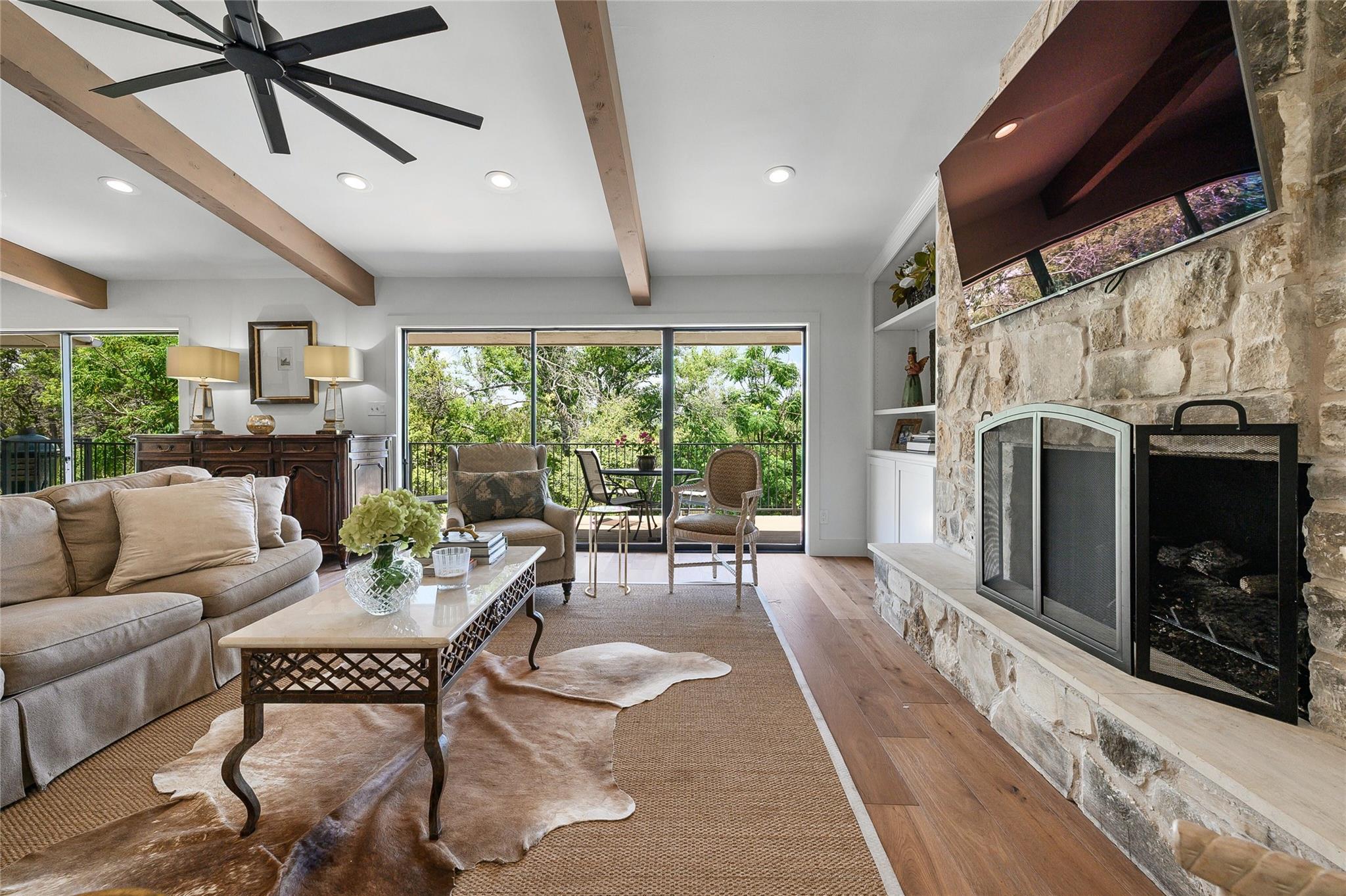 Welcome to 37 Sundown Parkway. This beautifully updated home is situated on a heavily wooded, private acre in the heart of Westlake in Eanes ISD and just minutes from downtown. The main house boasts 3,301 square feet with an additional 1,020 square feet in separate garage apartment with private access, full kitchen, bathroom and laundry hookups. The main house features a steel entry door, vaulted, wood beam ceilings, hardwood floors, stone walls, two fireplaces, marble countertops, stainless steel appliances and an abundance of natural lighting throughout. This highly coveted neighborhood offers privacy, complete with a 13-acre common area featuring ponds, tennis courts, equestrian barn and hiking trails. Enjoy the swimming pool or one of several outdoor lounge areas. Beautifully landscaped and ready for new homeowners.
