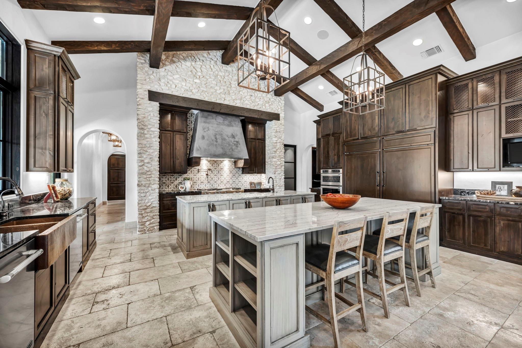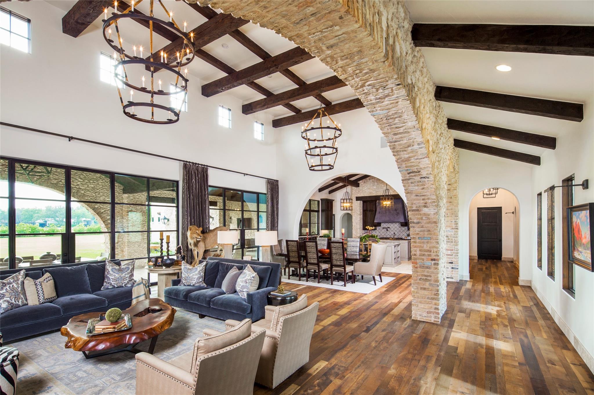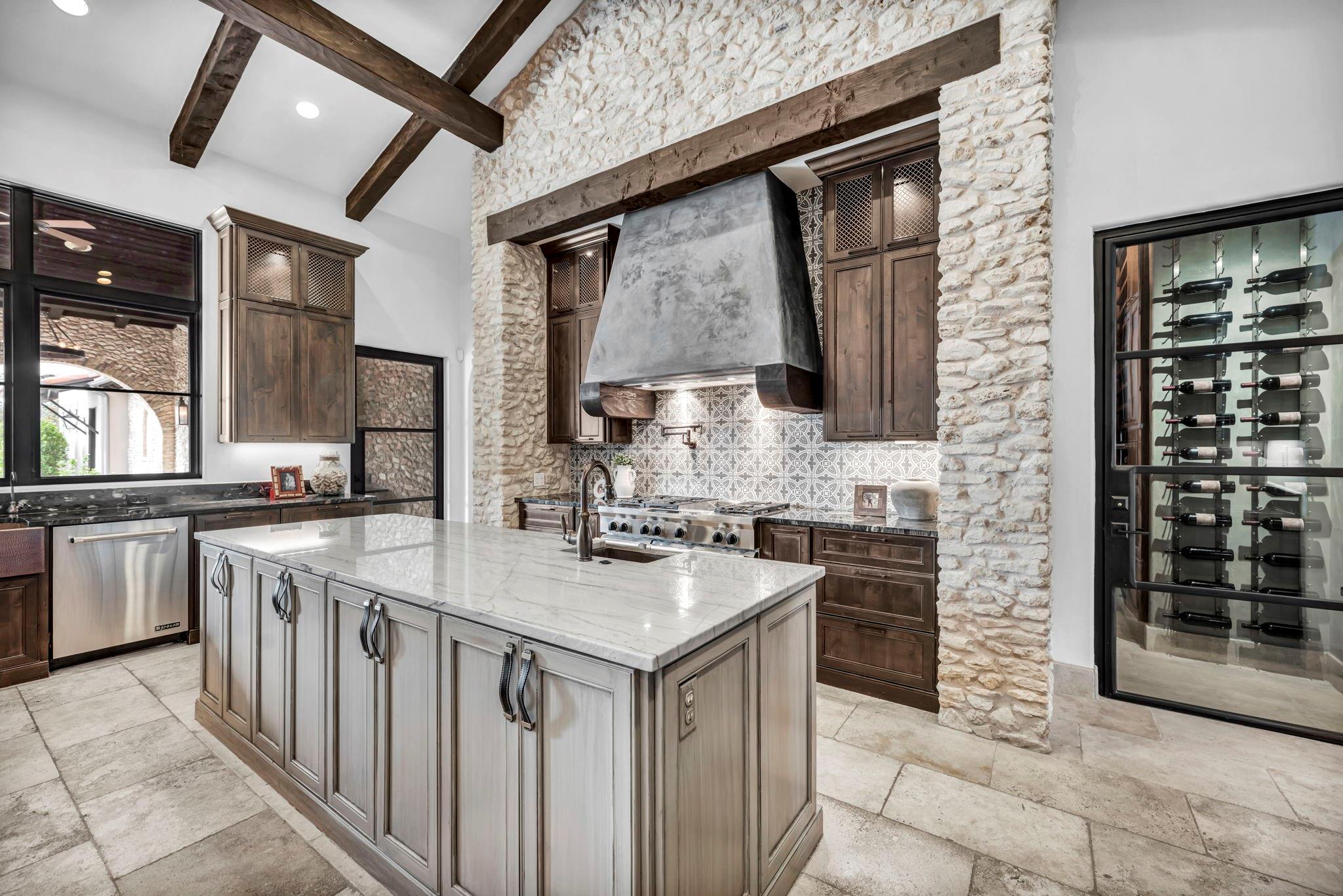 This one-of-a-kind luxury estate is located in the exclusive Breakaway Park subdivision known for its fly-in / fly-out community with its own private runway. Sitting on a full acre lot, this home backs directly up to the airstrip and has plenty of room to build your own hangar or guest house if desired. With this property, the owners have the opportunity to join the pilots' association as a member, for use of the airport. Designed by renowned architect John Hathaway of Vanguard Studios and decorated by Glynis Wood Interiors - this timeless Italian themed villa has a seamless blend of old-world elements mixed with contemporary touches throughout. With no expense spared in creating a luxurious and serene atmosphere – it’s the ultimate dream home for those who seek the best in high-end living and entertaining. Exterior appointments include a real Mexican clay tile roof, custom built copper gates, a blend of cave stone, limestone, and old Chicago brick masonry along with a professionally designed landscaping package and landscape lighting. In the rear yard many activities abound with a lighted sport court, a lavish heated pool and spa, a rear patio cooling system – and plenty of grassy lawn for many other outdoor experiences. The interior of the home boasts expansive open spaces, large steel and glass window / door units, custom wood beams, reclaimed custom wood floors and natural stone tile throughout. The owner's bath has a steam shower and hand hammered copper tub along with direct access its own patio which leads to the pool area. Just off the kitchen there is a custom-built 700+ bottle chilled wine room! Additionally, the high-end appliances, custom light fixtures, cabinets, and luxurious finishes throughout are just a few of the many things to experience. This location is close to shopping, the Domain, entertainment, and convenient transportation, trails and so much more!