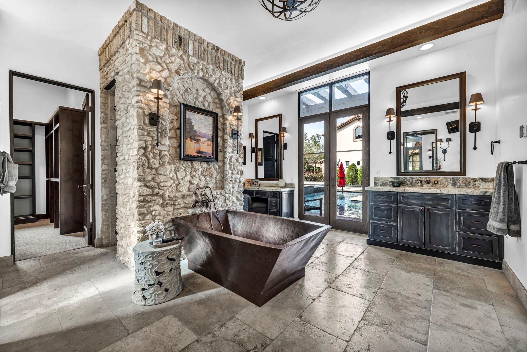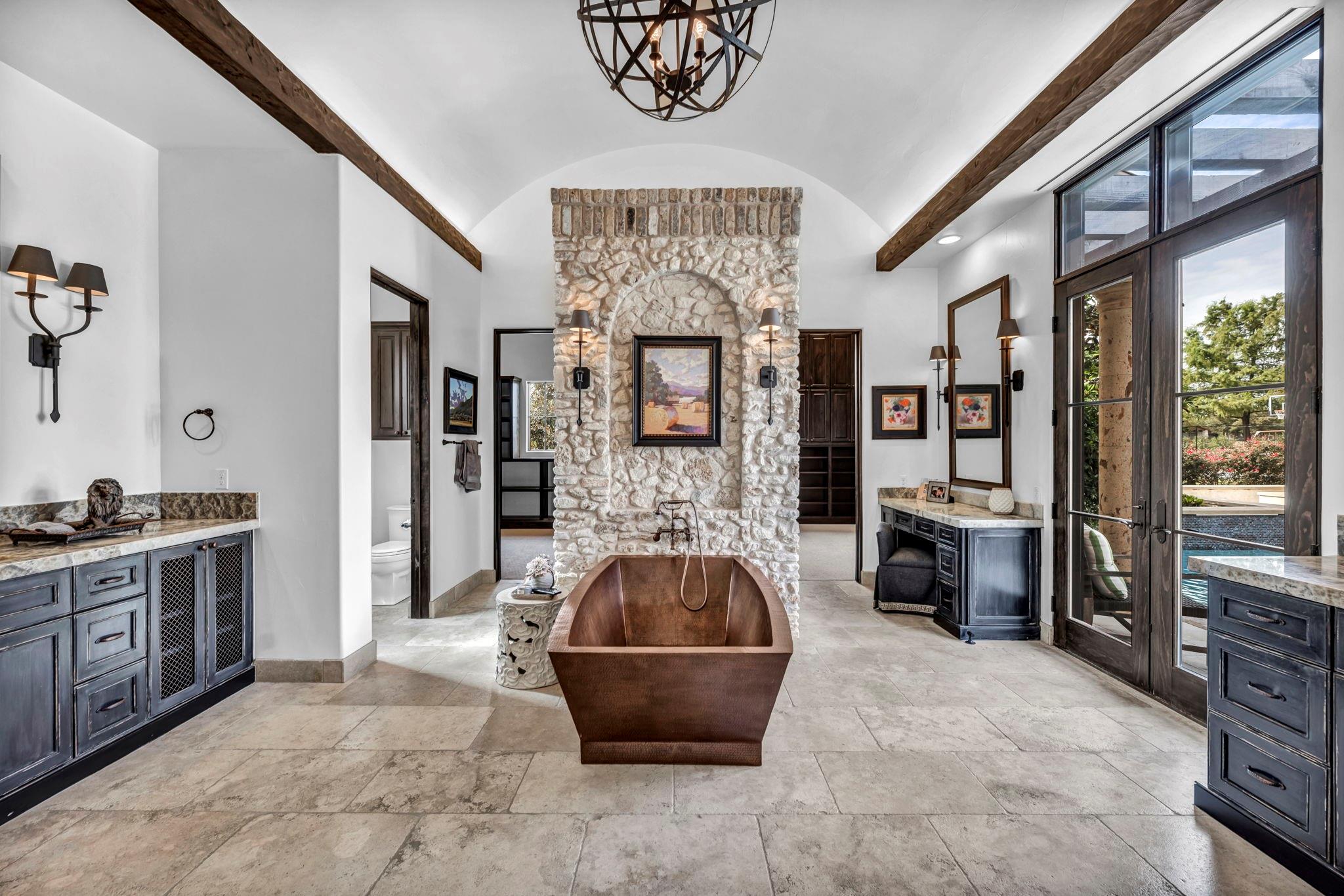 | Interior Features | Ceiling Fan(s), Beamed Ceilings, Cathedral Ceiling(s), High Ceilings, Granite Counters, Stone Counters, Entrance Foyer, High Speed Internet, Pantry, Primary Bedroom on Main, Recessed Lighting, Sauna, Stackable W/D Connections, Two Primary Closets, Walk-In Closet(s), Washer Hookup, Wired for Data, Wired for Sound | |