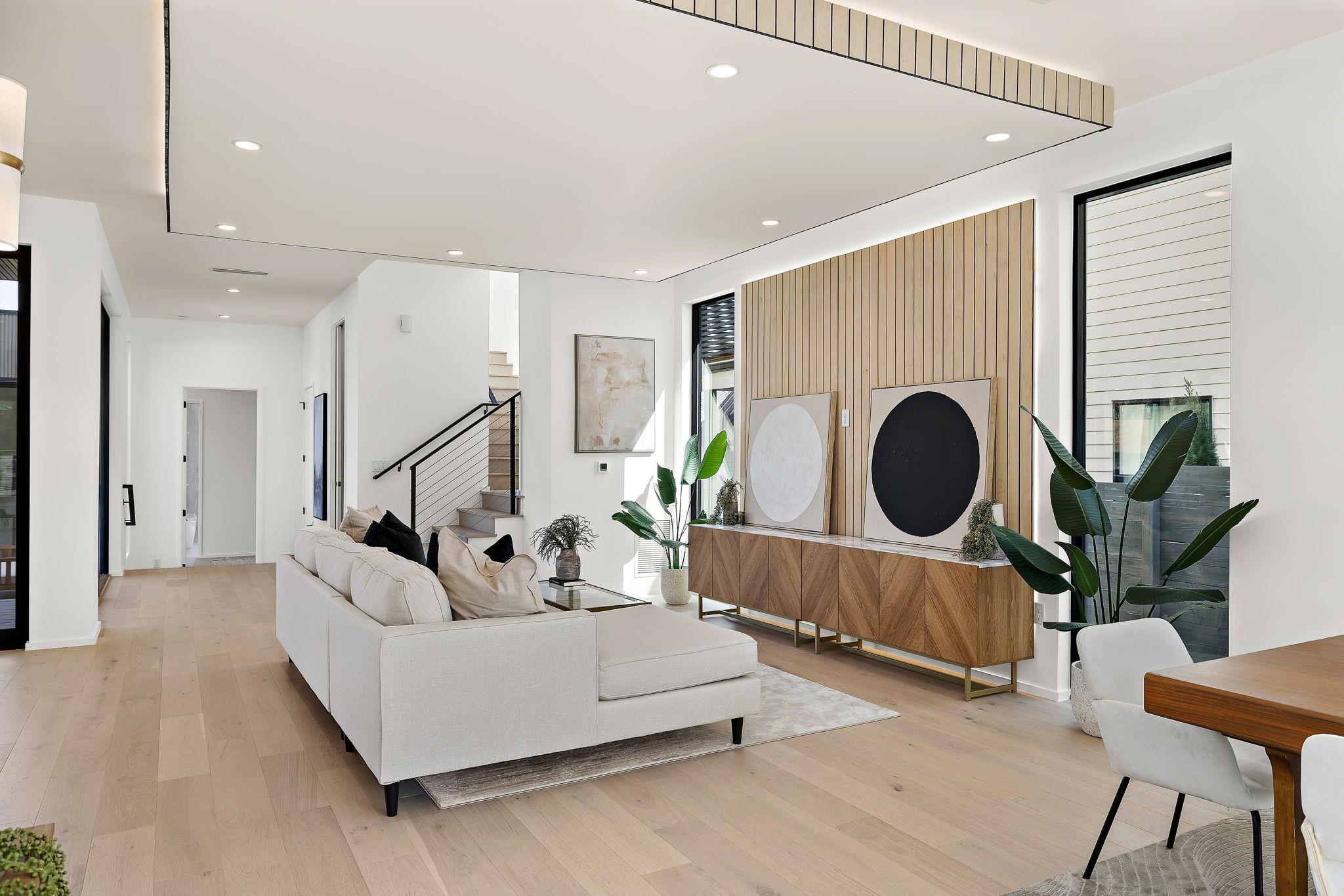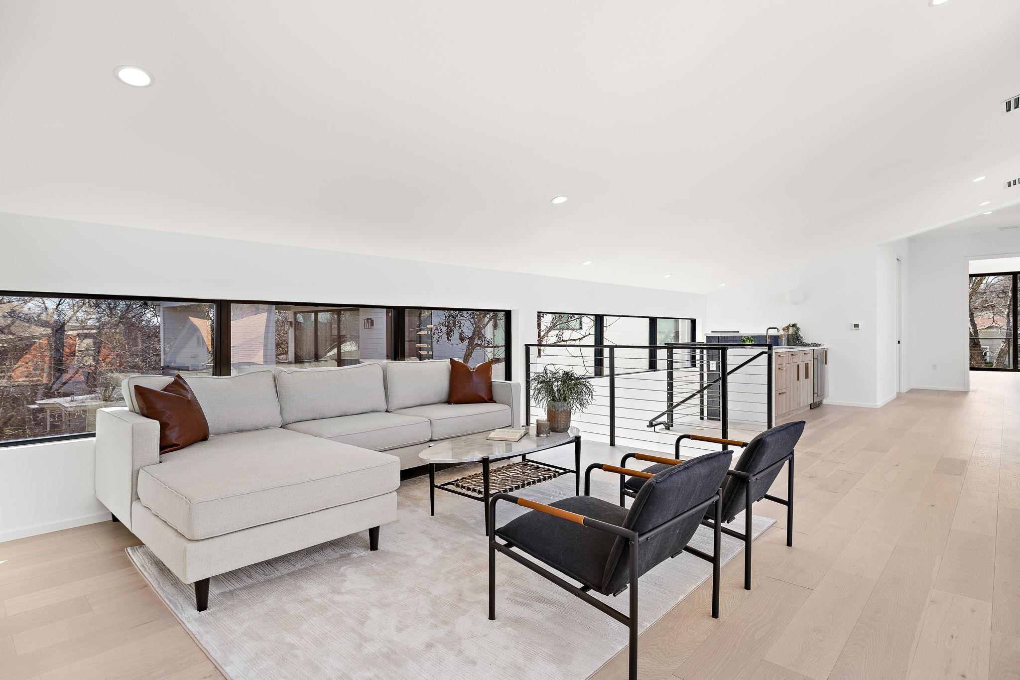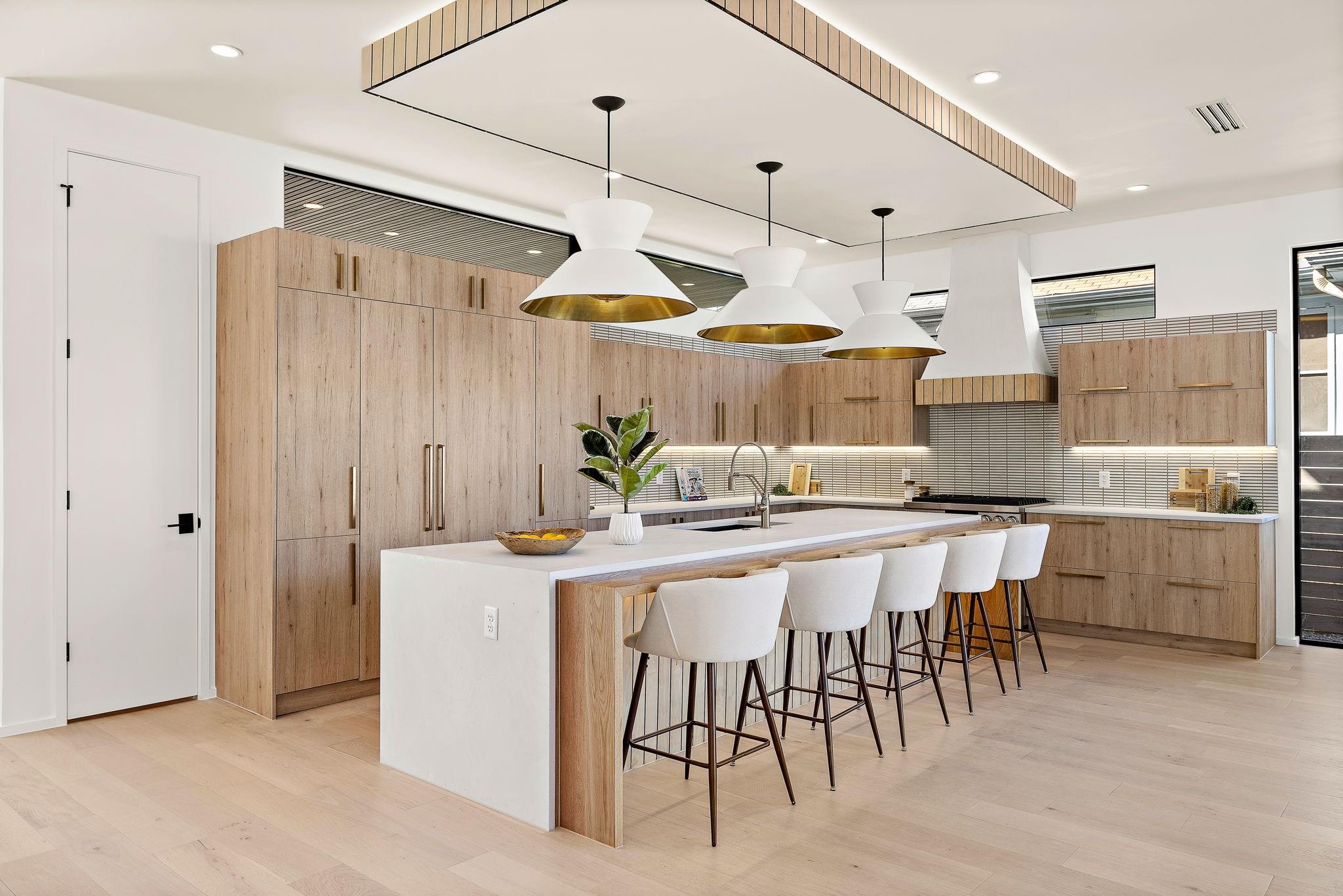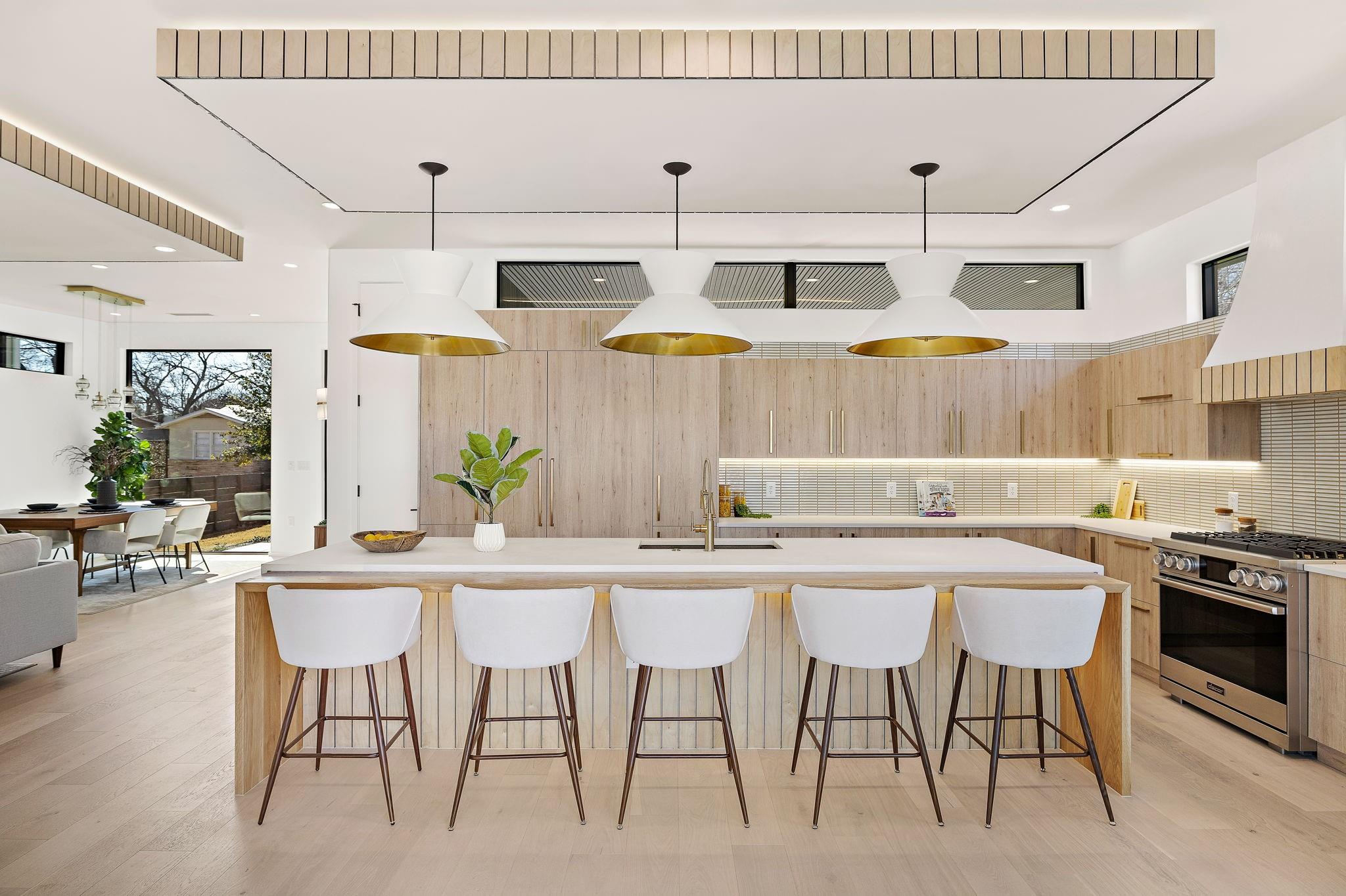Discover the pinnacle of urban opulence with this breathtaking abode, where contemporary design meets unparalleled elegance. Boasting a sophisticated modern architectural style and a thoughtfully curated layout, this home is the epitome of luxury living, designed for grand-scale entertaining. It features soaring high ceilings and vast, floor-to-ceiling windows that bathe every room in natural light, complemented by the warmth of white oak hardwood floors throughout, creating a welcoming and refined atmosphere. The chef's kitchen is a masterpiece of design and functionality, outfitted with cutting-edge appliances and bespoke wooden cabinetry, marrying beauty with practicality. Step outside to find a serene outdoor sanctuary, featuring a peaceful swimming pool, spa, an alfresco kitchen, and a barbecue area, all set up for ultimate relaxation and social gatherings. The primary suite, located on the main level, serves as a luxurious haven, with its elevated ceilings, a bathroom reminiscent of a high-end spa, a generously sized walk-in closet, and direct access to the tranquil backyard. The second floor houses three additional bedrooms and two full bathrooms, alongside a flexible space complete with a wet bar, leading out to several balconies and a rooftop deck that offers awe-inspiring views of the Austin skyline. Situated just a stone's throw from Zilker Park, Lady Bird Lake, and a myriad of dining, shopping, and entertainment venues, this home truly represents the zenith of urban luxury living.