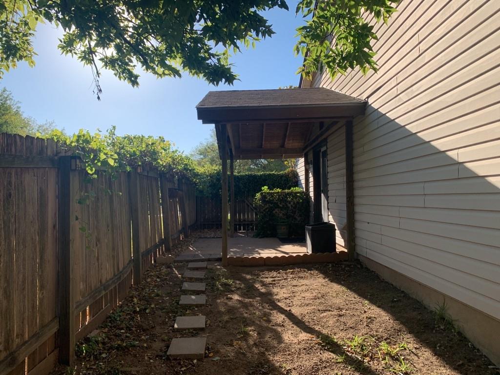 Excellent 2 bedroom, 1 bath duplex in Round Rock! Just of North Mays and close to EVERYTHING! Laundry closet in unit with washer/dryer connections! Both bedrooms have 2 closets & faux wood blinds! Gorgeous upgraded bathroom vanity and storage! Sliding patio doors open to covered patio area in the backyard! Small fenced front yard area perfect for porch sitting! Trees offering plenty of shade cover. Covered car port and driveway parking.