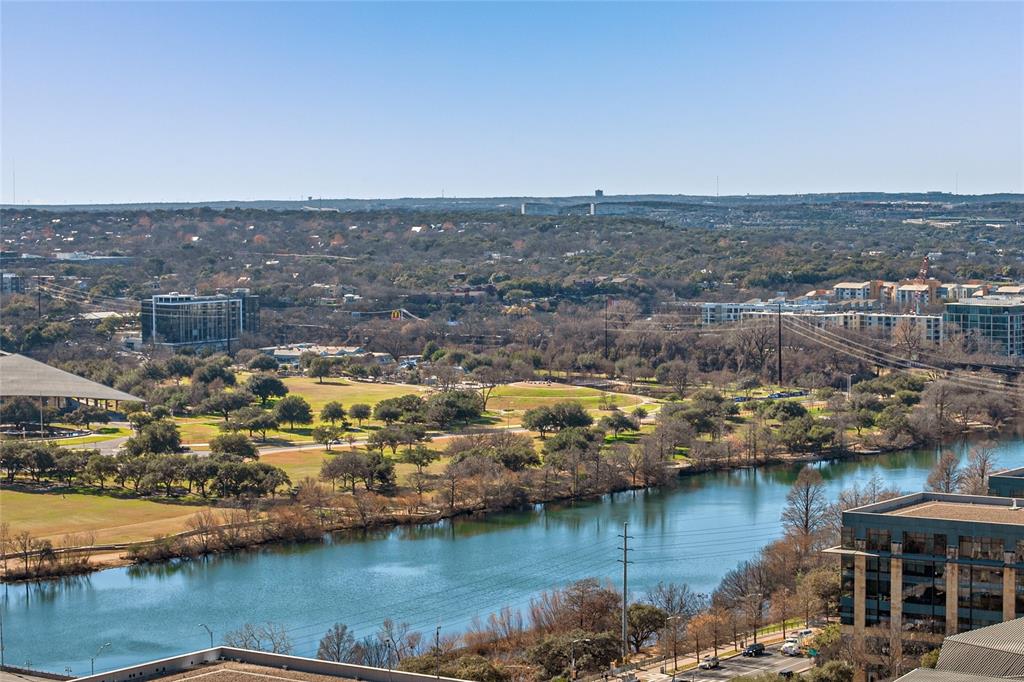 Custom touches added by Dick Clark Architecture in this “E†residence on the 21st floor of The Austonian. Offering views of the Austin skyline, hill country and Lady Bird Lake, this NW corner 2BR+Office home gives you gracious living/entertaining space and private bedrooms. The primary suite contains a spa-like bath, dual vanity and a generous walk-in closet. The kitchen is outfitted with high-end appliances. Office/flex equipped with built-ins and a desk. 2 parking spaces and a storage unit. The Austonian is known for its resort-style ambiance and luxurious residences. Take advantage of 40,000 square feet of amenities, including meticulously maintained common areas, a 56th-floor fitness center and pool with 360-degree views, a spa room for private treatments, a dog grooming room, a dog park, a theater, a premium wine cellar, and more. A convenient central location, easily stroll to the Hike-and-Bike Trail, the Austin Public Library, exceptional shopping, and the city’s best restaurants. See agent for unit information. Tax and assessed values are estimates for illustration purposes only. All figures should be independently verified.24-Hour Advanced Showing Notice.