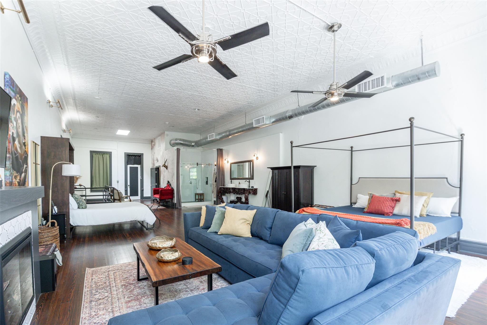 Live in DOWNTOWN NEW BRAUNFELS!!! Enjoy everything downtown New Braunfels has to offer in this newly renovated 1-bedroom loft apartment next to the Brauntex. Zoned C2, this building can have a business in it as well. Downstairs kitchen and living area and an additional living area as well as a full bathroom upstairs with an awesome shower! Another bonus is that this unique downtown apartment comes with all new LG appliances and is fully furnished to sleep 6. Brand new electrical, plumbing and downstairs wood flooring. There is also approximately 1600 square feet of warehouse space in the back part of the building. Current owner has pending: permits, SUP for short term rentals, and drawings to renovate this space to provide more income producing potential. Don't miss out. These types of opportunities are rare in New Braunfels. Property is zoned C2 and can be used for a variety of businesses.