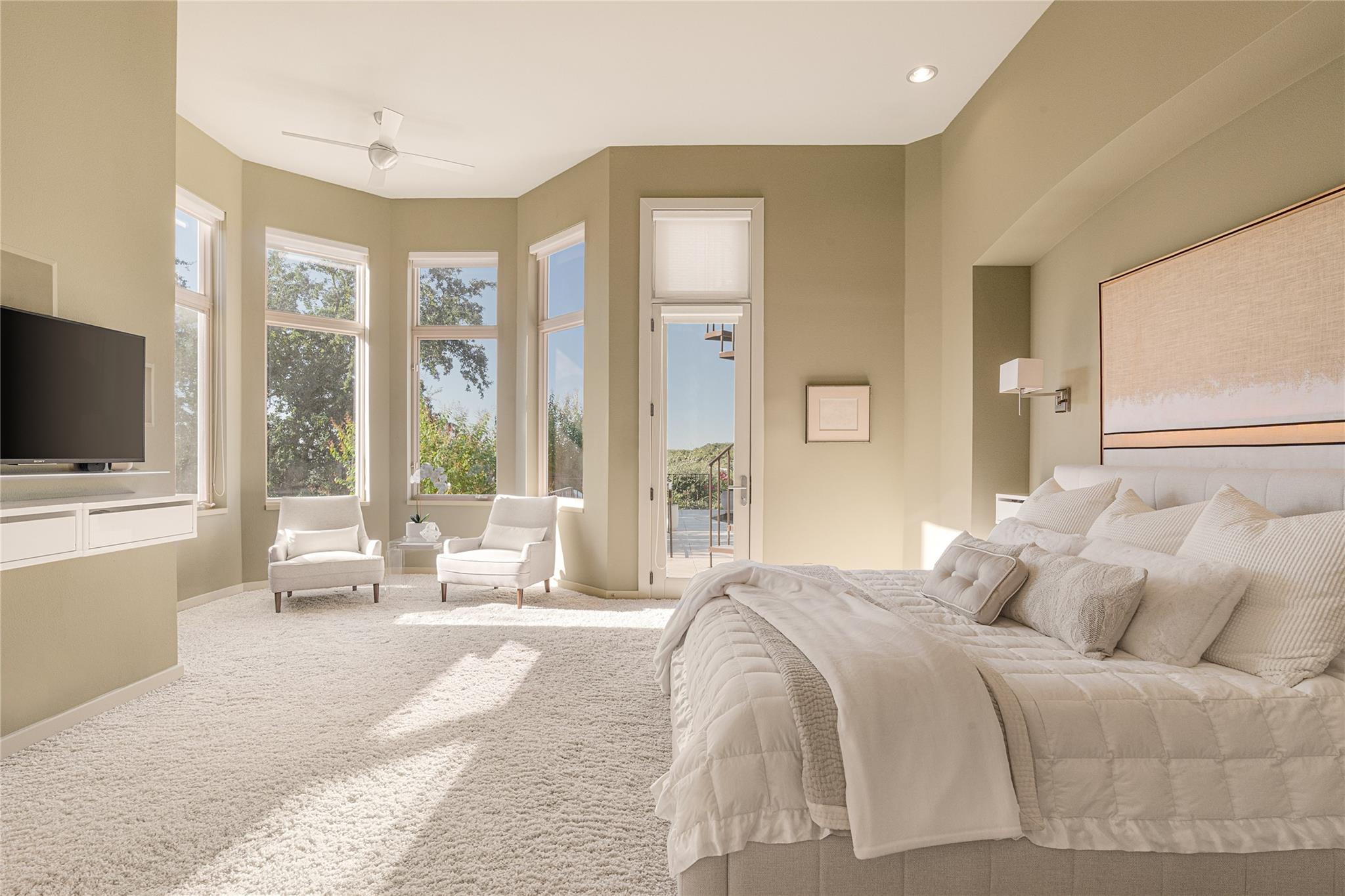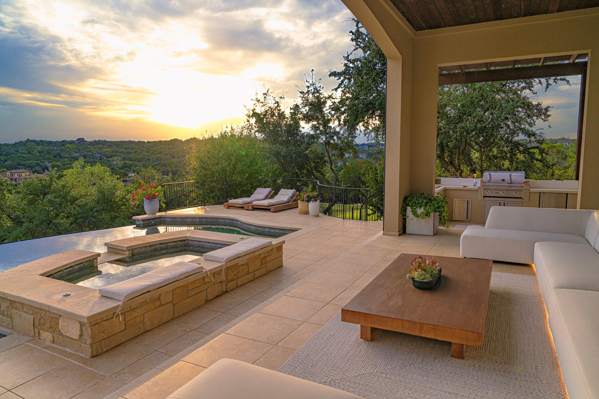 Introducing Sunset Sanctuary - An Austin Oasis Nestled in the picturesque rolling hills, Sunset Sanctuary is a remarkable estate just 20 minutes from downtown Austin. This property offers an exceptional living experience with breathtaking sunrise and sunset views, and a convenient location near the Riverplace Country Club and Lake Austin's shores. The patio deck lends views of Austin’s downtown sky-scrapers and in the evenings, you'll be treated to mesmerizing sunsets reflected in the infinity-edge pool. This remodeled home boasts a striking 20-foot travertine wall illuminated by dimmable up-lights, custom Porcelanosa stair-tread tiles, and Durango iron doors for a grand entrance. The kitchen features Carrara marble backsplashes, new quartz countertops, and high-end appliances. Outdoor enthusiasts will appreciate the remodeled summer kitchen with a Lynx 36†stainless grill, Coyote stainless refrigerator, and more. The property has fresh paint, contemporary fixtures, smart technologies, and climate control storage for convenience and comfort. The walk-out level infinity-edge pool and spa are complemented by a pool bathroom, outdoor shower, and ample storage. An expansive yard with a low-maintenance Trex deck, live oaks, and stone features provides beauty and privacy. Security elements like a Ring doorbell and Arlo cameras are in place. The landscape is water-efficient with Rachio irrigation control. Beyond a home, Sunset Sanctuary is a wildlife haven, attracting hummingbirds, deer, falcons, and more. With unobstructed views of rolling hills and double rainbows, it's a slice of heaven. This property seamlessly combines luxury living with nature, offering a 20-25 minute commute to downtown Austin or the Domain during rush hour. Don't miss the chance to explore this enchanting home. Contact us to schedule a private tour and experience Sunset Sanctuary for yourself!