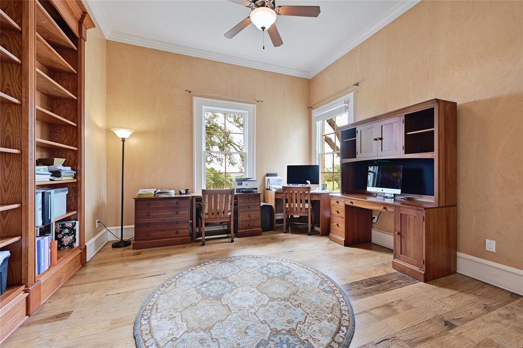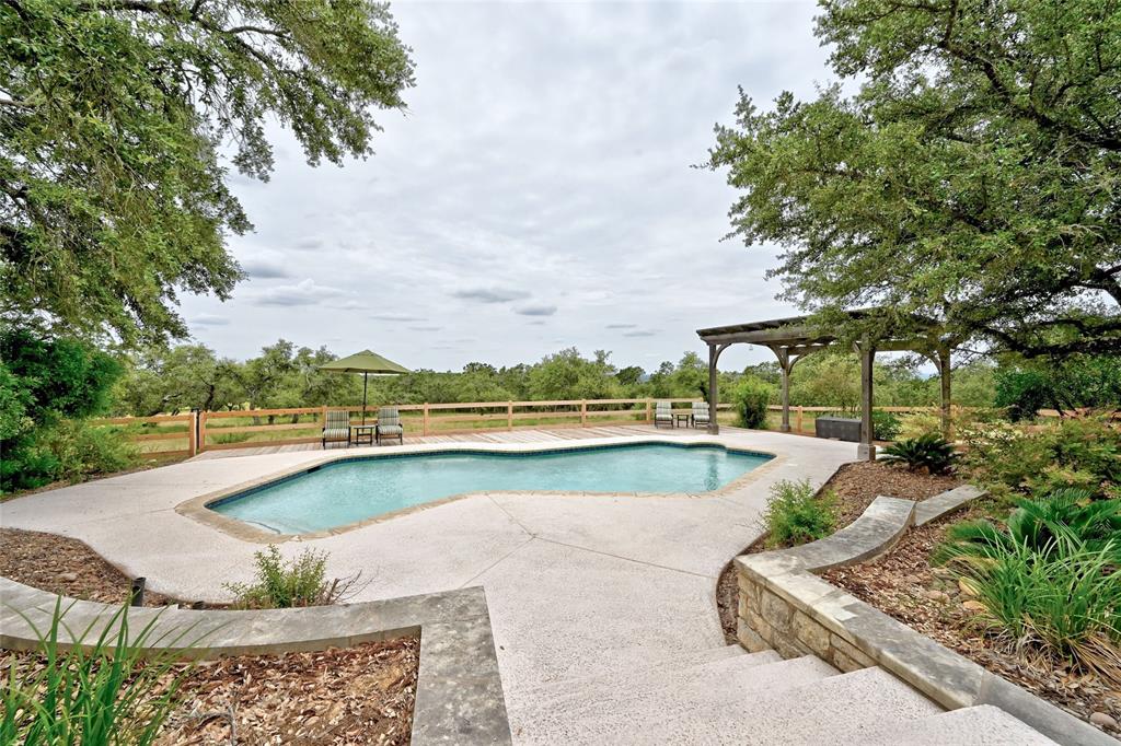 Come see this remarkable 32+ acre hilltop estate and one of the highest elevations in a 25 mile radius. Enter through the private gate, drive underneath a canopy of blooming crepe myrtles, and ascend to the perfect topography of the park-like groomed gentleman's ranch. Enjoy the beautiful hardwood trees and the cedar groves that provide delightful shade. The elegant 4970 sq. ft. home has 4 bedrooms, each with a private full bath, a Class 4 metal, impact resistant roof, lovely pool, and breathtaking views in all directions. The property also enjoys low wildlife exemption taxes. There is a 3500+ sq. ft. barn with a breezeway and concrete floors. This shop-style barn can be easily transformed into a 8+ stall horse barn. The barn boasts air conditioned offices and storerooms. The second barn, constructed in 2021, is a luxury horse barn that has everything a horse owner could want (see the features list). The hilltop riding arena has incredible views in all directions and is graded to serve as one of the best potential homesites in greater Austin. You must see it to believe the views. This amazing property is lightly restricted and can be subdivided to 7.5 acre minimum parcels. The property includes 2 high-producing wells as well as city water. Transfer switches at the home and both barns provide generator power for all buildings as needed. This exceptional property is a horseman's dream and also has significant development potential for subdivision. This property is one of few remaining large parcels only 25 minutes to downtown Austin, yet with all the benefits of privacy and security. The exemplary Dripping Springs Schools are another sought after benefit. Don't miss the features list, this ranch has too many unique and desirable characteristics to list in one short paragraph! See the map showing the proximity to all Austin has to offer. There are no rocks or stumps on this property for easy ride on mowing. HAS SPECTRUM HIGH SPEED INTERNET. Owner/Agent