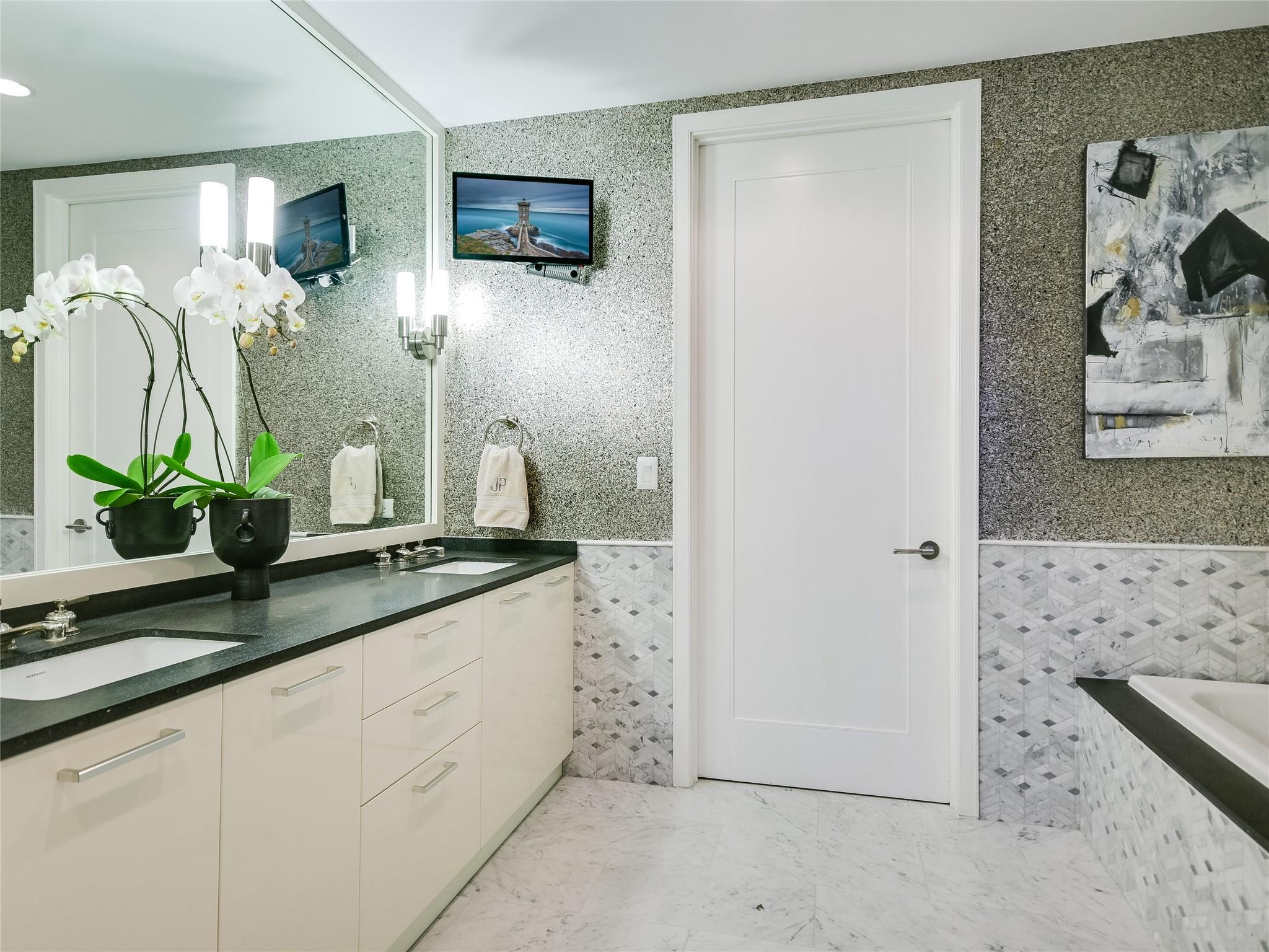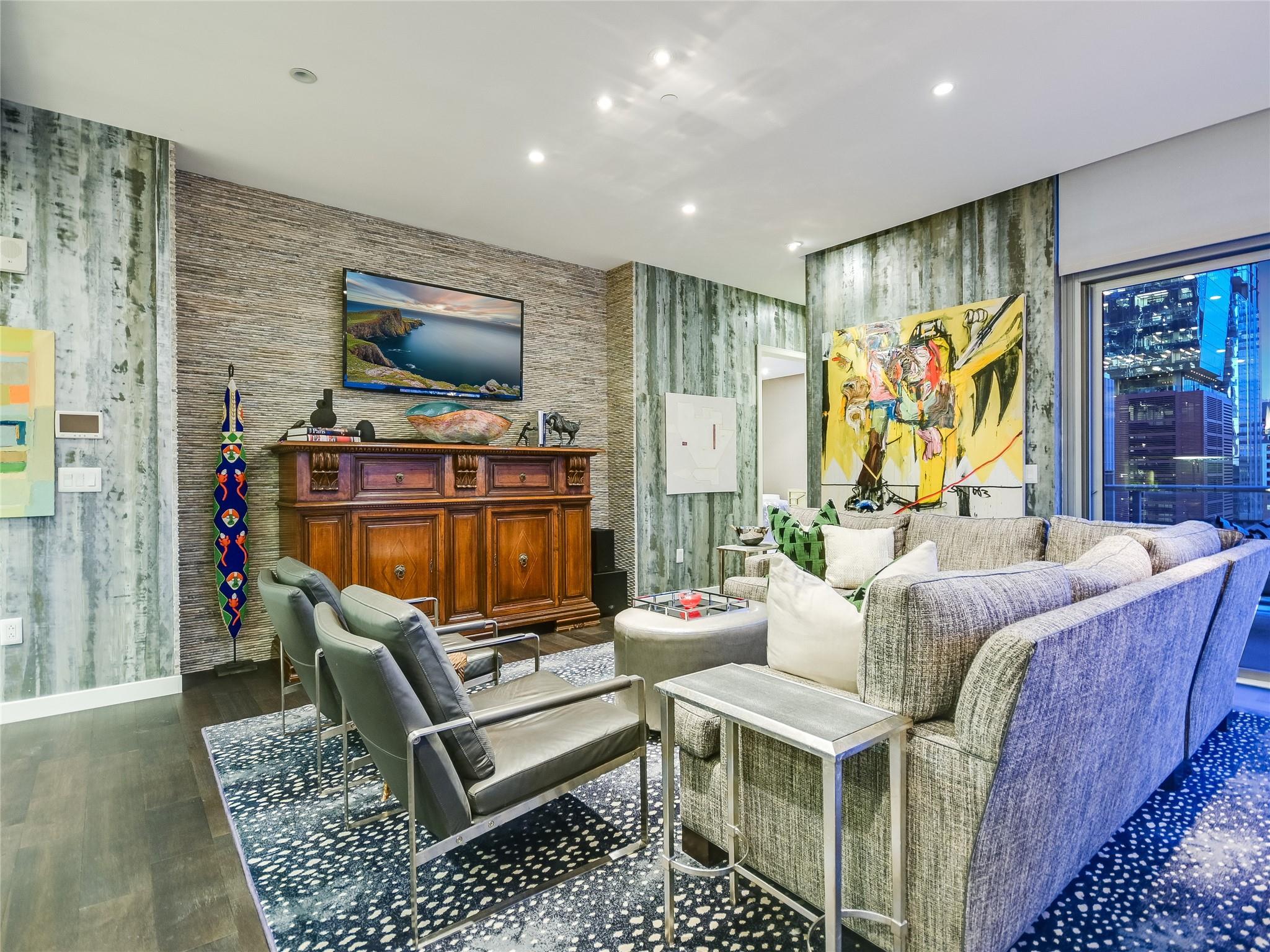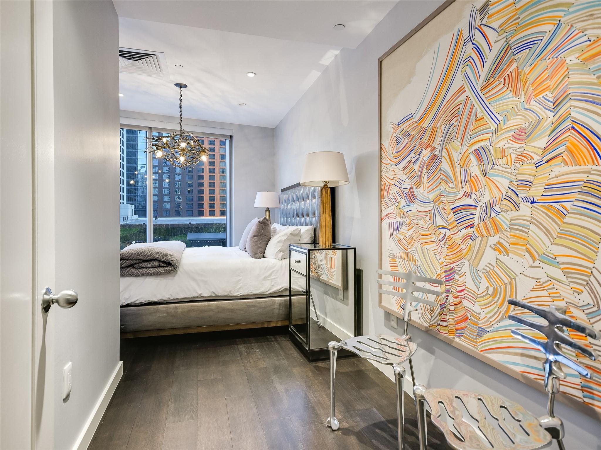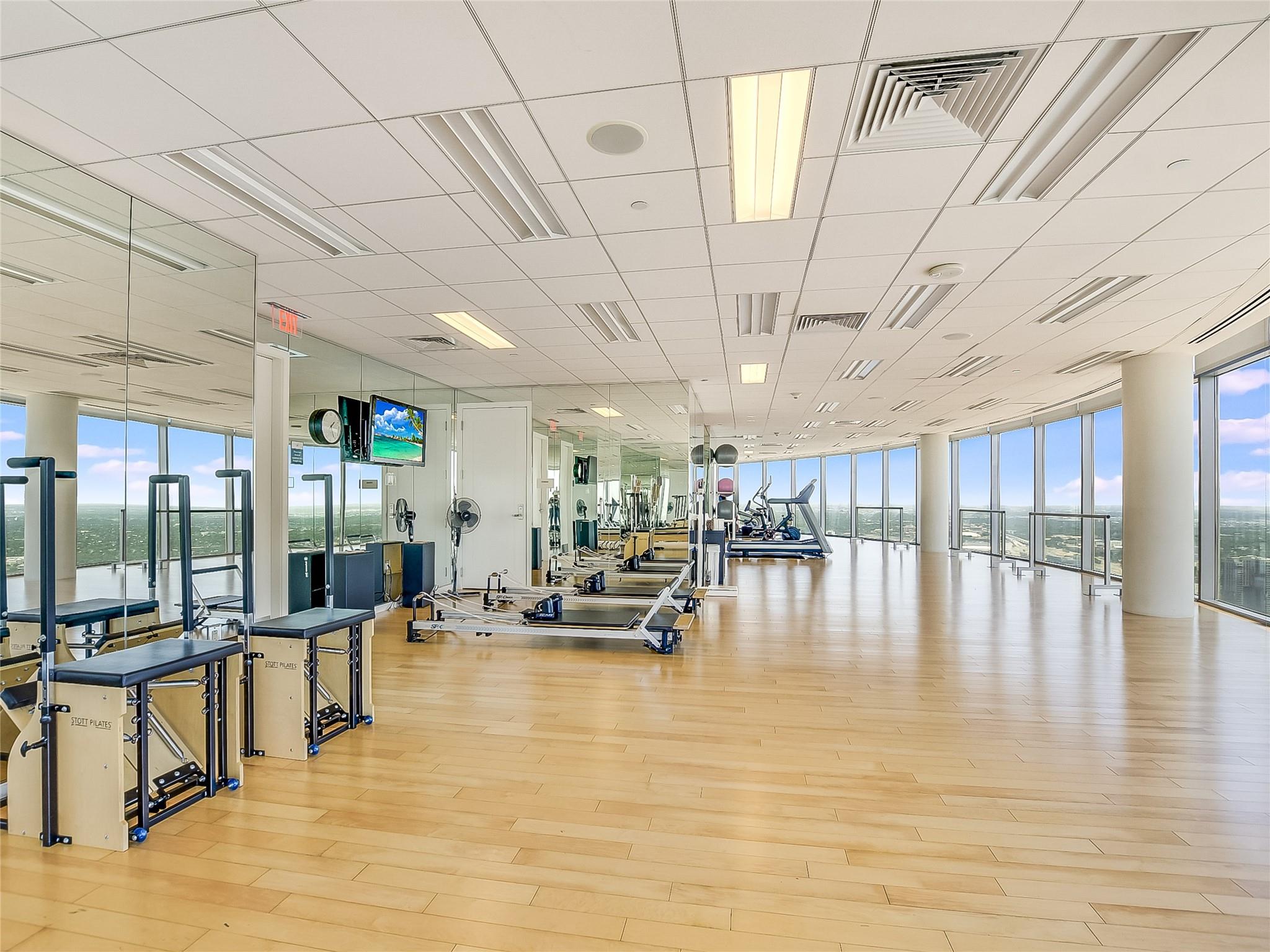 Situated on the 11th floor, NE corner, of the highly sought-after Austonian building, this 2-bedroom, 2-bath residence offers stunning views of the city skyline and the Capitol building. This open-concept living space incorporates floor-to-ceiling windows equipped with shades in the living, kitchen, and dining area. The well-appointed chef's kitchen boasts top-of-the-line stainless steel appliances, granite countertops, tile backsplash, ample cabinetry, and a central island that doubles as a breakfast bar. Throughout the residence, you'll find hardwood floors that enhance its elegance. The primary suite offers sweeping views of downtown and the Capitol. The luxurious primary bath is complete with a soaking tub, dual sinks, and a spacious shower all adorned with exquisite marble. The primary walk-in closet offers custom built-ins for maximum storage. All bedrooms feature custom shades. In addition, this unit offers a storage unit as well as two prime parking spots. The building also offers valet parking. The Austonian is renowned for its resort-style atmosphere and opulent residences, offering a wealth of amenities spanning 40,000 square feet. These amenities include meticulously maintained common areas, a 56th-floor fitness center and pool offering panoramic views, a private spa room, a dog grooming area, a dog park, a theater, a premium wine cellar, and more. Positioned in a prime central location, residents enjoy easy access to Lady Bird Lake, the Hike-and-Bike Trail, the Austin Public Library, exceptional shopping options, and the city's finest dining establishments.