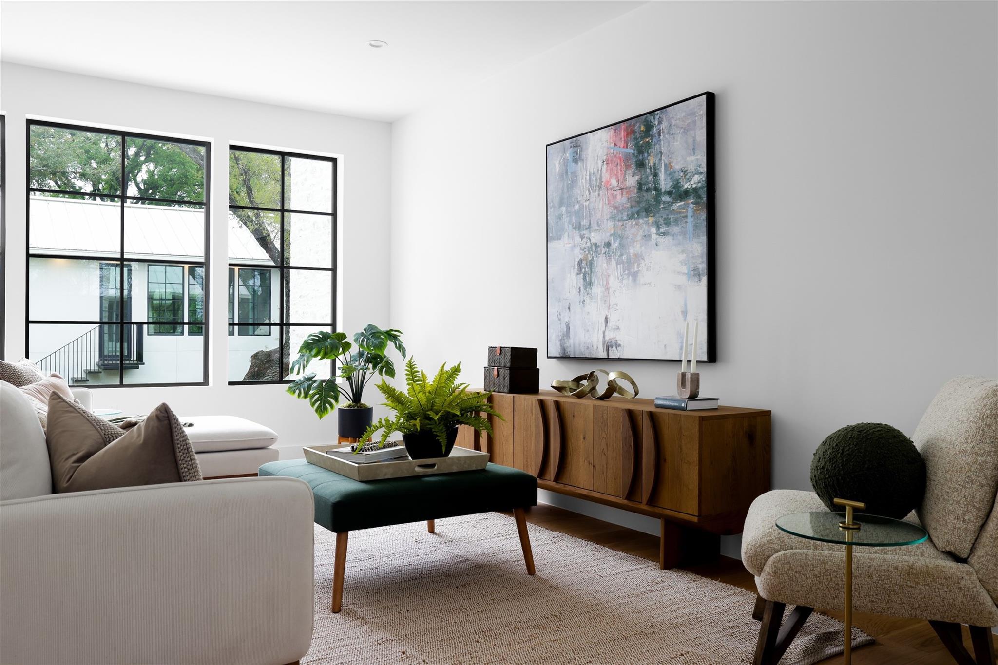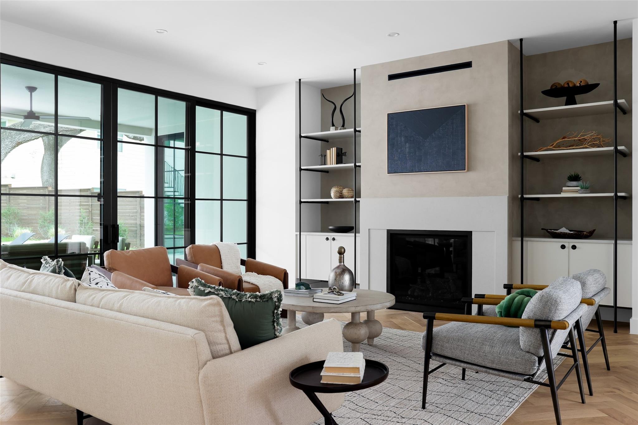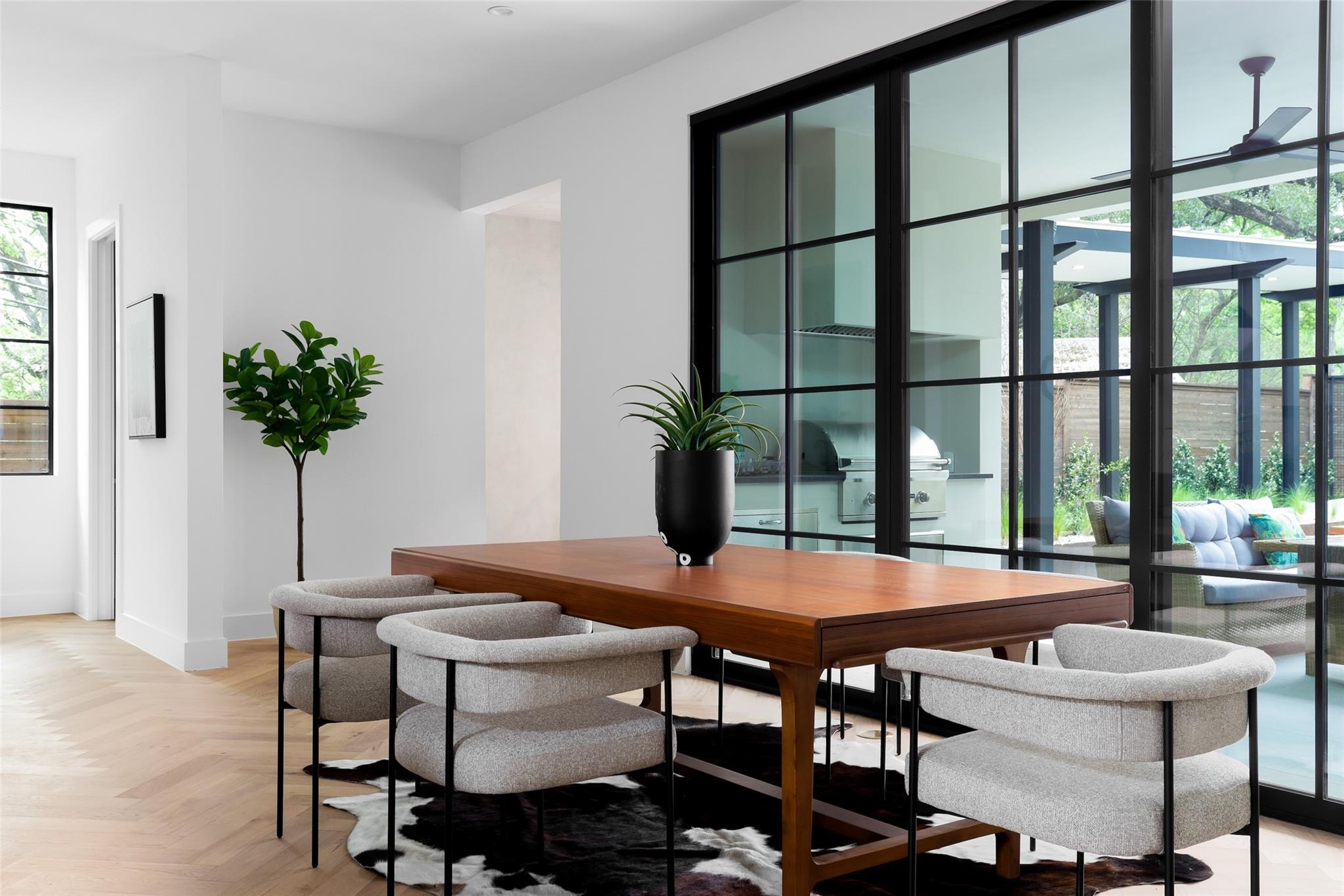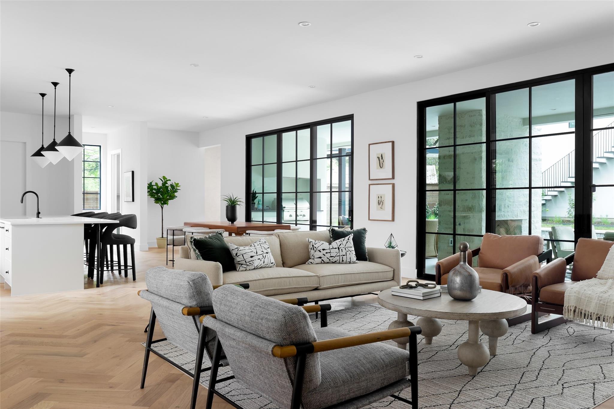 This 4,321 SF compound in the heart of Barton Hills is a masterpiece of luxury by architect Rodenberg Design and expertly built by Tusker Development. Together, they created a unique, timeless, and functional home with 3769 SF in the main house that complements the surrounding heritage oaks. It’s truly a spectacular find in 78704 boasting a guesthouse/flex space/exercise/art/music studio with 552 SF spanning the width of the rare 3-car garage with a full bath and walk-in closet. With thoughtful architectural details, inside and out, and interior selections by SLIC Design, you will be captivated by its curated beauty. Expansive windows and floor-to-ceiling sliding doors flood the home with natural light. They open the Great Room with a fireplace to a large, shaded yard. Enjoy your gas heated shotcrete pool with 3 waterfalls year round and entertain on your deep covered patio. The outdoor kitchen and fireplace create a relaxing and inviting oasis for dining al fresco. Inside, the home features sprawling white oak floors throughout the spacious floor plan and a dedicated office. Off the gourmet kitchen, enjoy a wet bar with wine fridge, large walk-in pantry and butler’s pantry/mud room. Upon entering the first-floor Primary Suite, tucked away for privacy, you will be captivated by the abundance of natural light and sparkle of the pool through your own private door. The spectacular spa-like Primary Bath leads to a huge walk-in closet with its own W&D hookups and loads of built-in storage. The second story houses 3 large guest rooms with walk-in closets, a den/media room, two full bathrooms and a laundry/utility room. This 5 bedroom (1 in guest house), 5 full bathroom (1 in guest house) smart home must be seen in person to appreciate the details. Close to Barton Creek for hiking and swimming and South Lamar for shopping and dining, it is the perfect place to call home. Please ask for the full list of features. There are simply too many to describe in this limited space.
