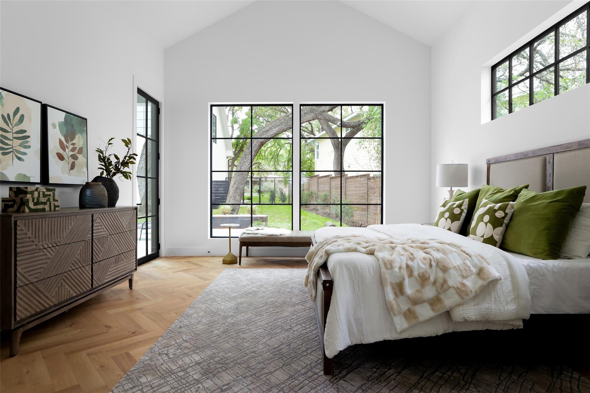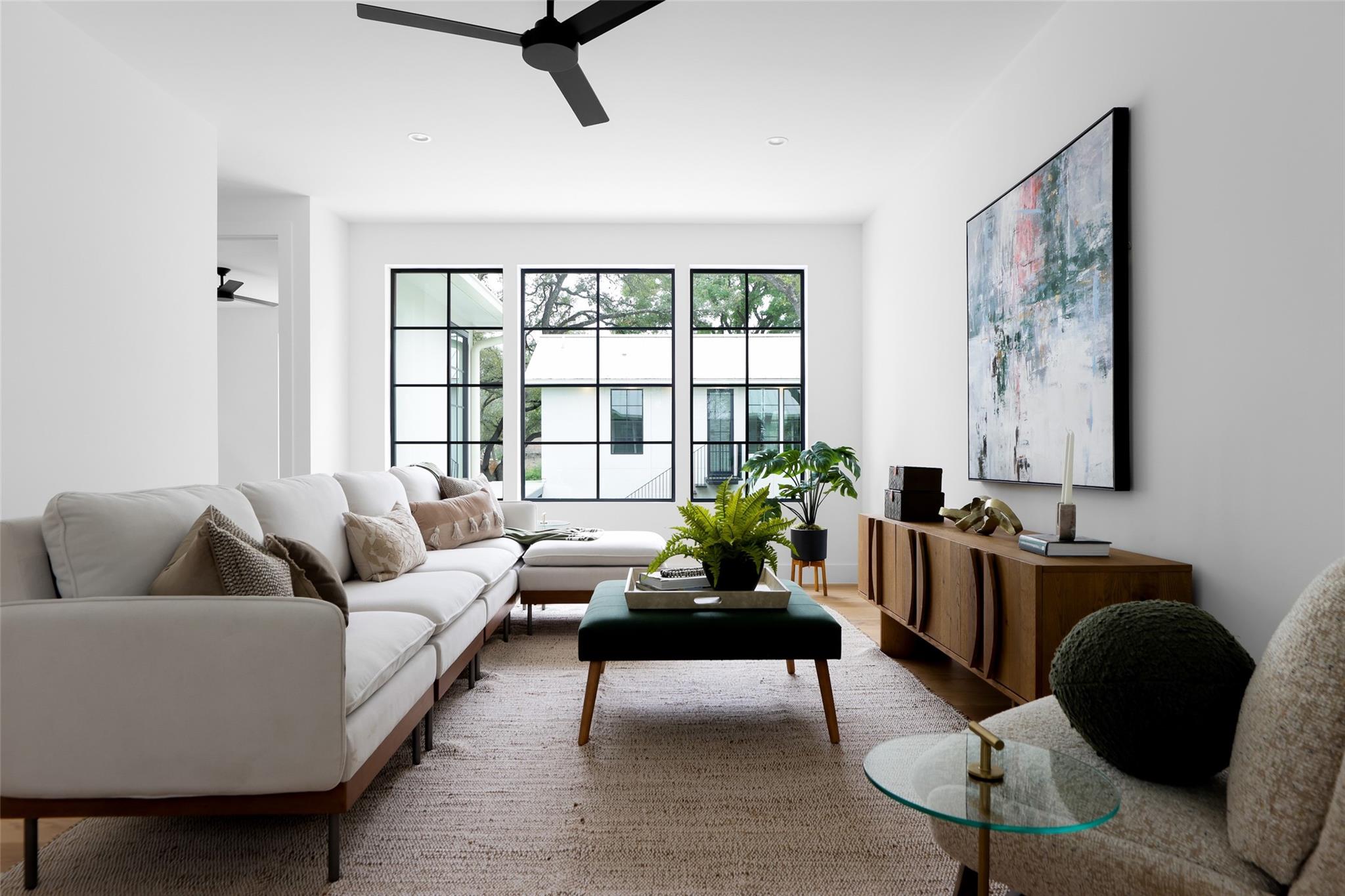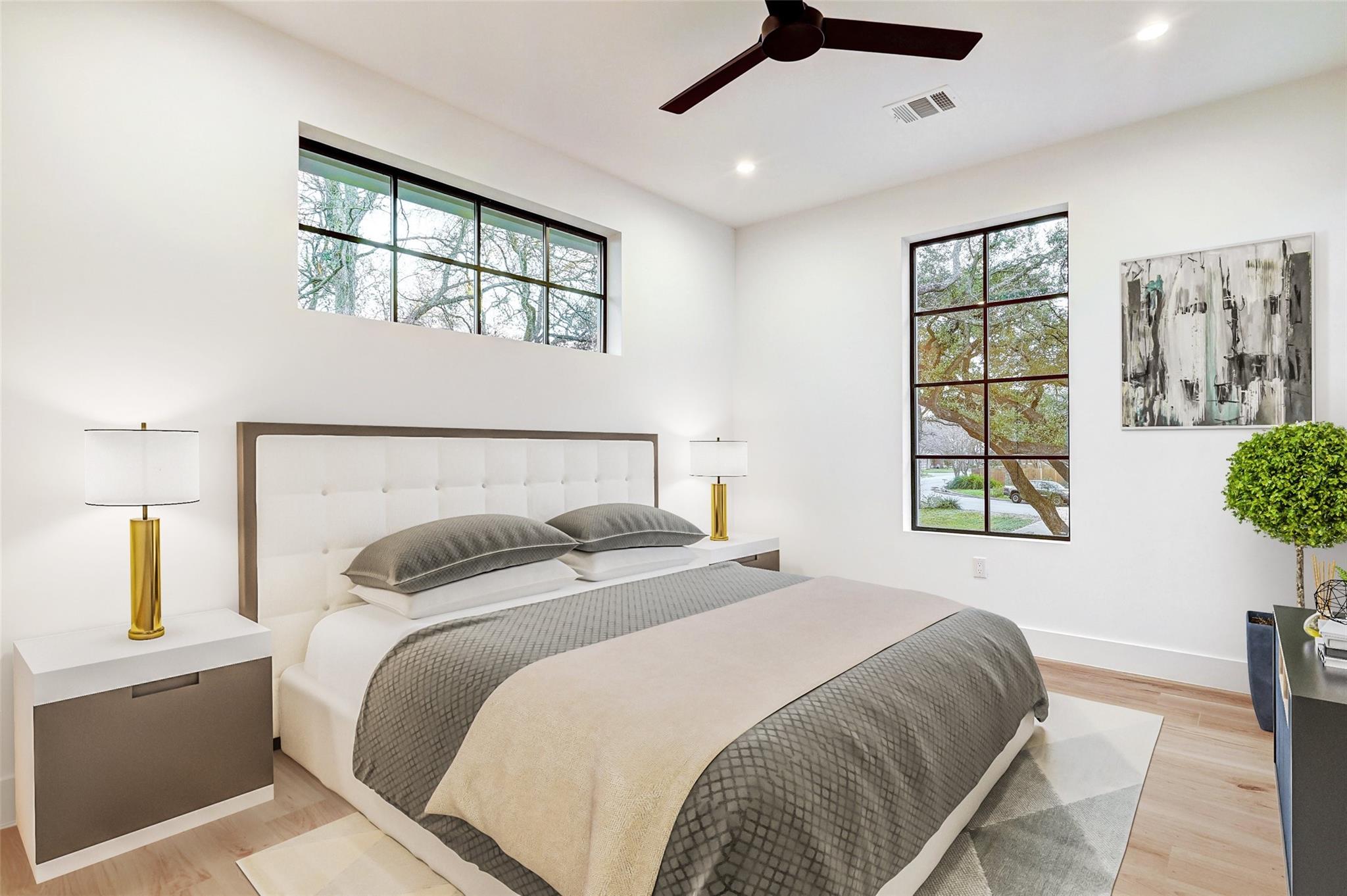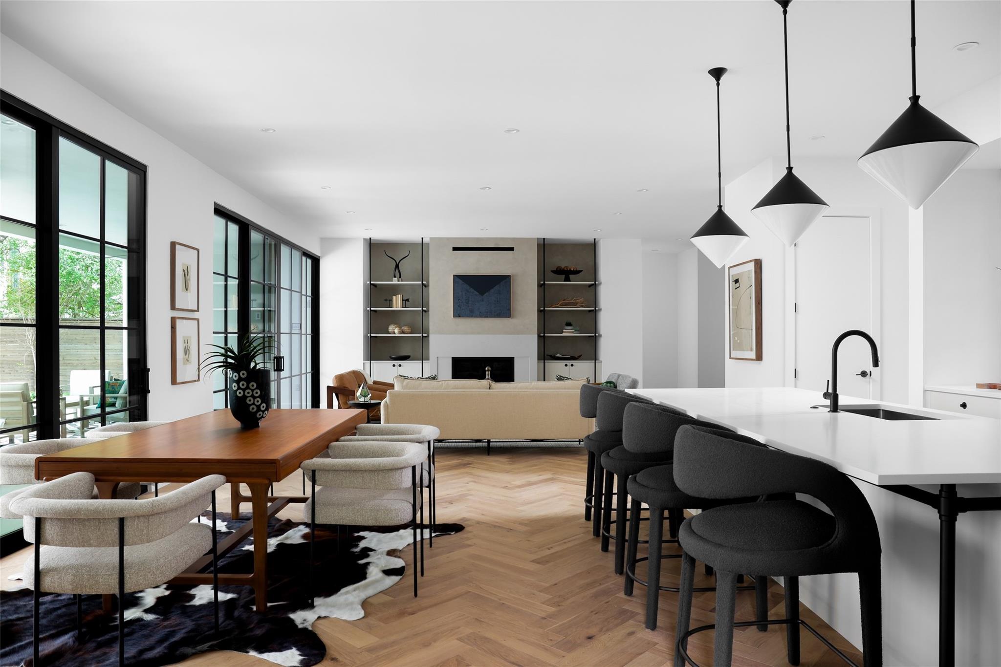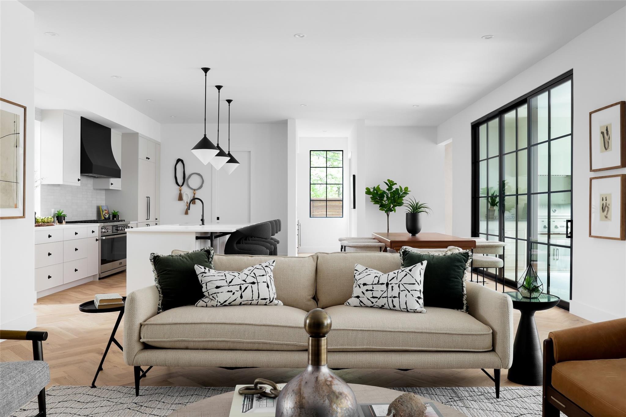 This 4,321 SF compound in the heart of Barton Hills is a masterpiece of luxury by architect Rodenberg Design and expertly built by Tusker Development. Together, they created a unique, timeless, and functional home with 3769 SF in the main house that complements the surrounding heritage oaks. It’s truly a spectacular find in 78704 boasting a guesthouse/flex space/exercise/art/music studio with 552 SF spanning the width of the rare 3-car garage with a full bath and walk-in closet. With thoughtful architectural details, inside and out, and interior selections by SLIC Design, you will be captivated by its curated beauty. Expansive windows and floor-to-ceiling sliding doors flood the home with natural light. They open the Great Room with a fireplace to a large, shaded yard. Enjoy your gas heated shotcrete pool with 3 waterfalls year round and entertain on your deep covered patio. The outdoor kitchen and fireplace create a relaxing and inviting oasis for dining al fresco. Inside, the home features sprawling white oak floors throughout the spacious floor plan and a dedicated office. Off the gourmet kitchen, enjoy a wet bar with wine fridge, large walk-in pantry and butler’s pantry/mud room. Upon entering the first-floor Primary Suite, tucked away for privacy, you will be captivated by the abundance of natural light and sparkle of the pool through your own private door. The spectacular spa-like Primary Bath leads to a huge walk-in closet with its own W&D hookups and loads of built-in storage. The second story houses 3 large guest rooms with walk-in closets, a den/media room, two full bathrooms and a laundry/utility room. This 5 bedroom (1 in guest house), 5 full bathroom (1 in guest house) smart home must be seen in person to appreciate the details. Close to Barton Creek for hiking and swimming and South Lamar for shopping and dining, it is the perfect place to call home. Please ask for the full list of features. There are simply too many to describe in this limited space.