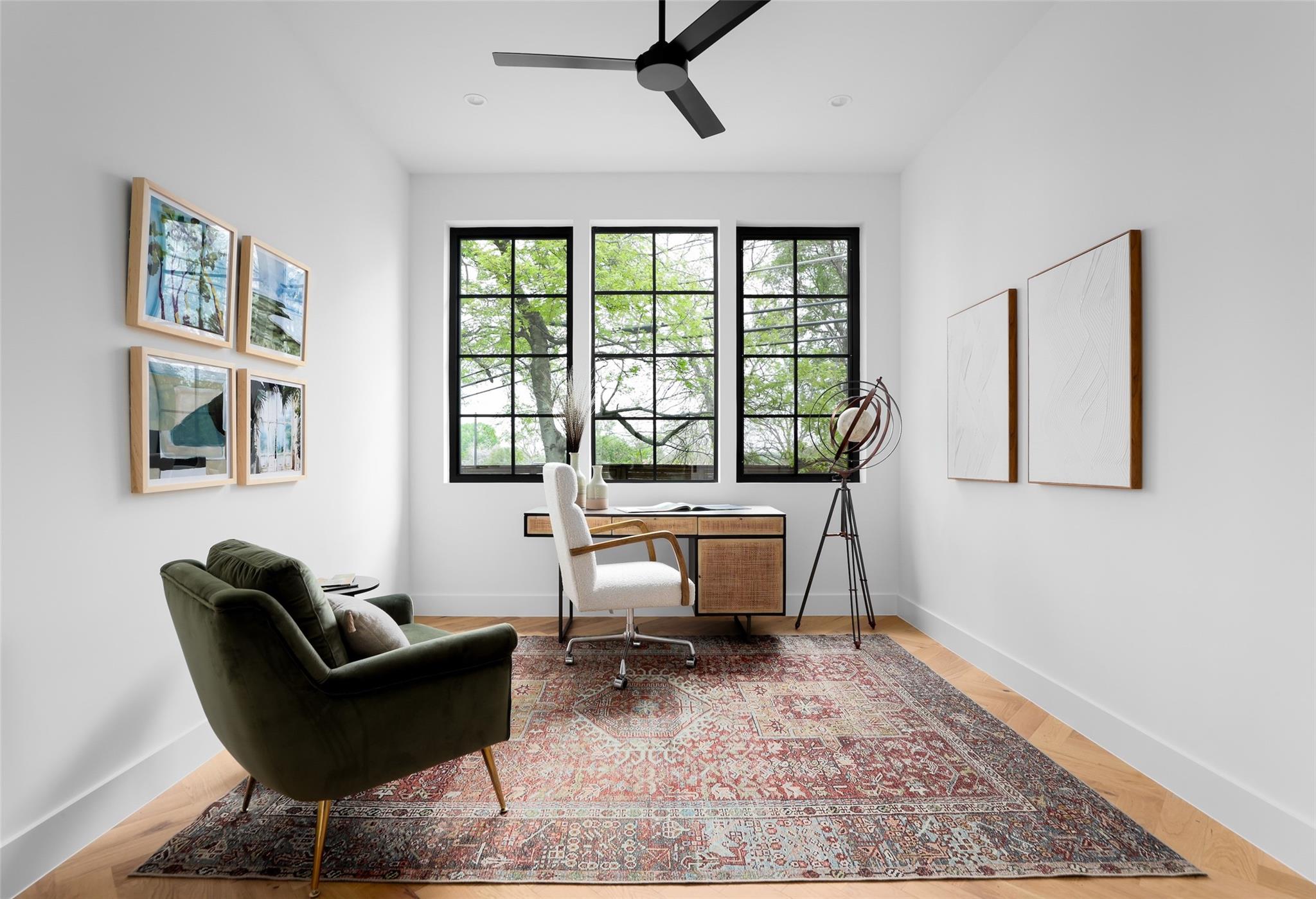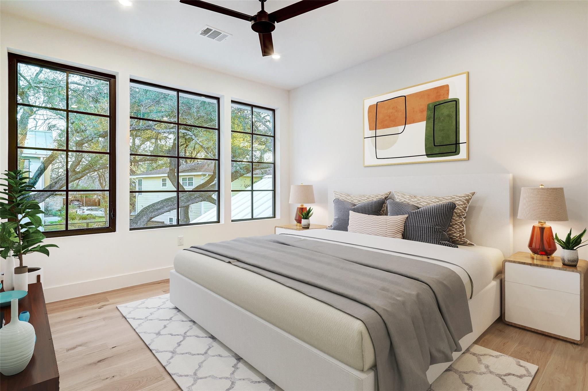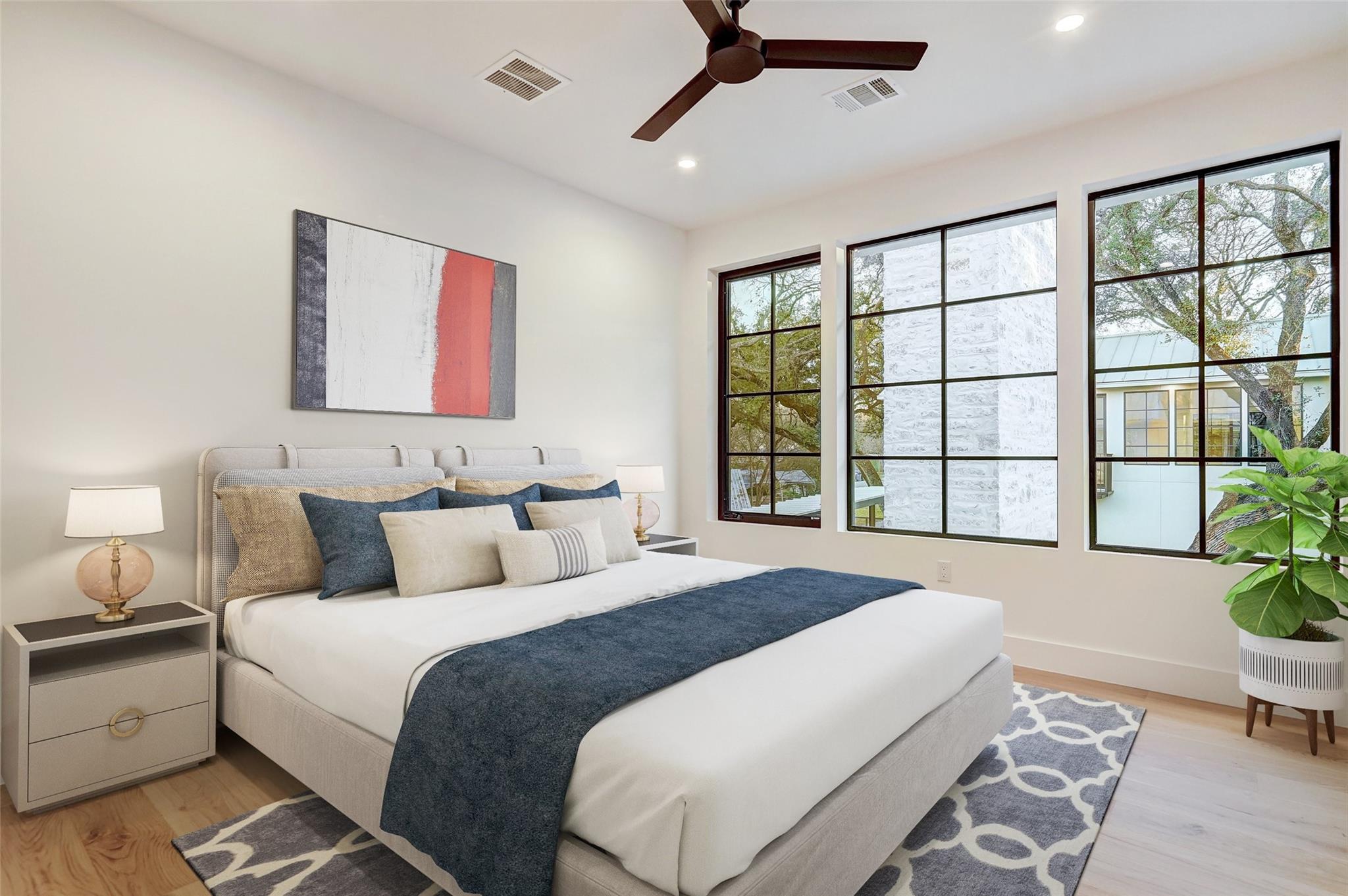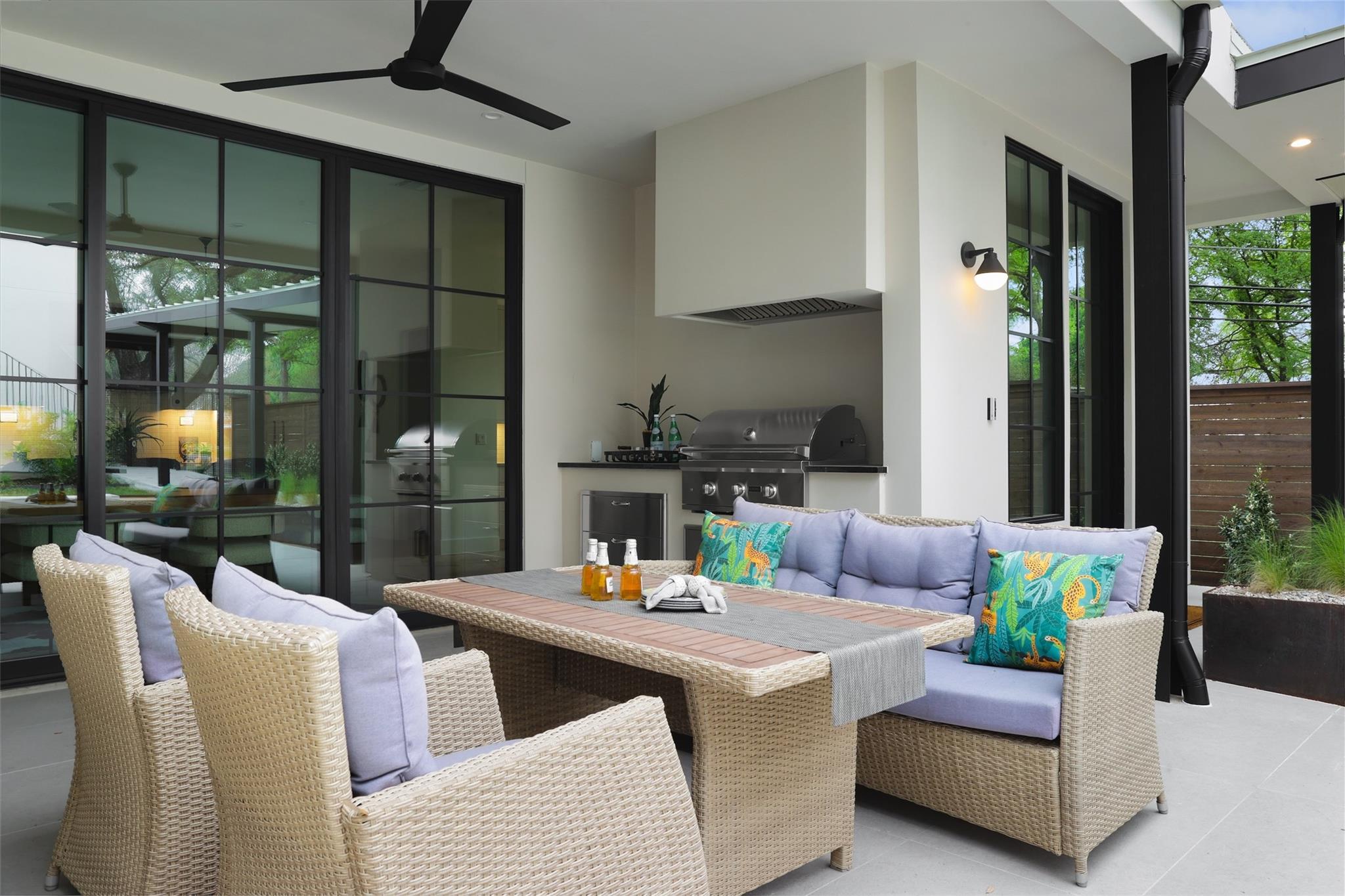 This 4,321 SF compound in the heart of Barton Hills is a masterpiece of luxury by architect Rodenberg Design and expertly built by Tusker Development. Together, they created a unique, timeless, and functional home with 3769 SF in the main house that complements the surrounding heritage oaks. It’s truly a spectacular find in 78704 boasting a guesthouse/flex space/exercise/art/music studio with 552 SF spanning the width of the rare 3-car garage with a full bath and walk-in closet. With thoughtful architectural details, inside and out, and interior selections by SLIC Design, you will be captivated by its curated beauty. Expansive windows and floor-to-ceiling sliding doors flood the home with natural light. They open the Great Room with a fireplace to a large, shaded yard. Enjoy your gas heated shotcrete pool with 3 waterfalls year round and entertain on your deep covered patio. The outdoor kitchen and fireplace create a relaxing and inviting oasis for dining al fresco. Inside, the home features sprawling white oak floors throughout the spacious floor plan and a dedicated office. Off the gourmet kitchen, enjoy a wet bar with wine fridge, large walk-in pantry and butler’s pantry/mud room. Upon entering the first-floor Primary Suite, tucked away for privacy, you will be captivated by the abundance of natural light and sparkle of the pool through your own private door. The spectacular spa-like Primary Bath leads to a huge walk-in closet with its own W&D hookups and loads of built-in storage. The second story houses 3 large guest rooms with walk-in closets, a den/media room, two full bathrooms and a laundry/utility room. This 5 bedroom (1 in guest house), 5 full bathroom (1 in guest house) smart home must be seen in person to appreciate the details. Close to Barton Creek for hiking and swimming and South Lamar for shopping and dining, it is the perfect place to call home. Please ask for the full list of features. There are simply too many to describe in this limited space.