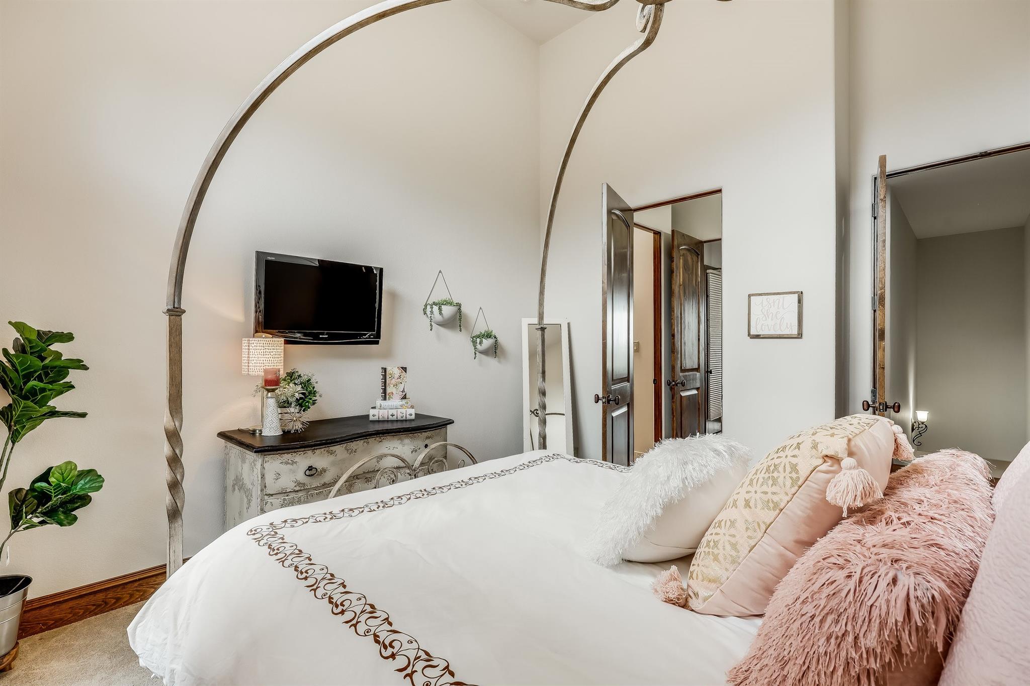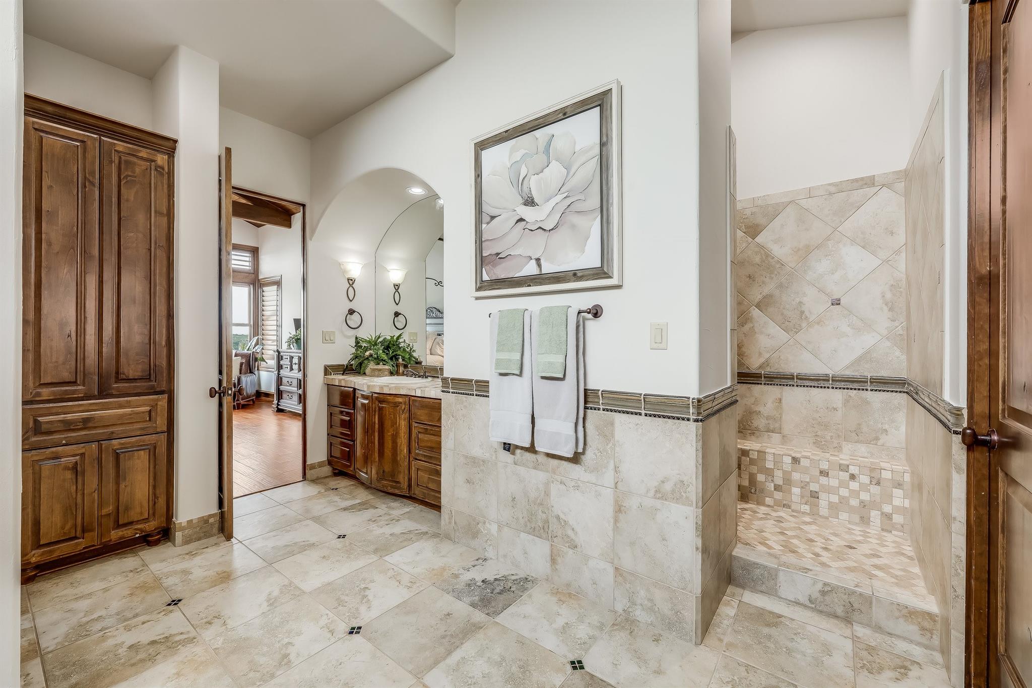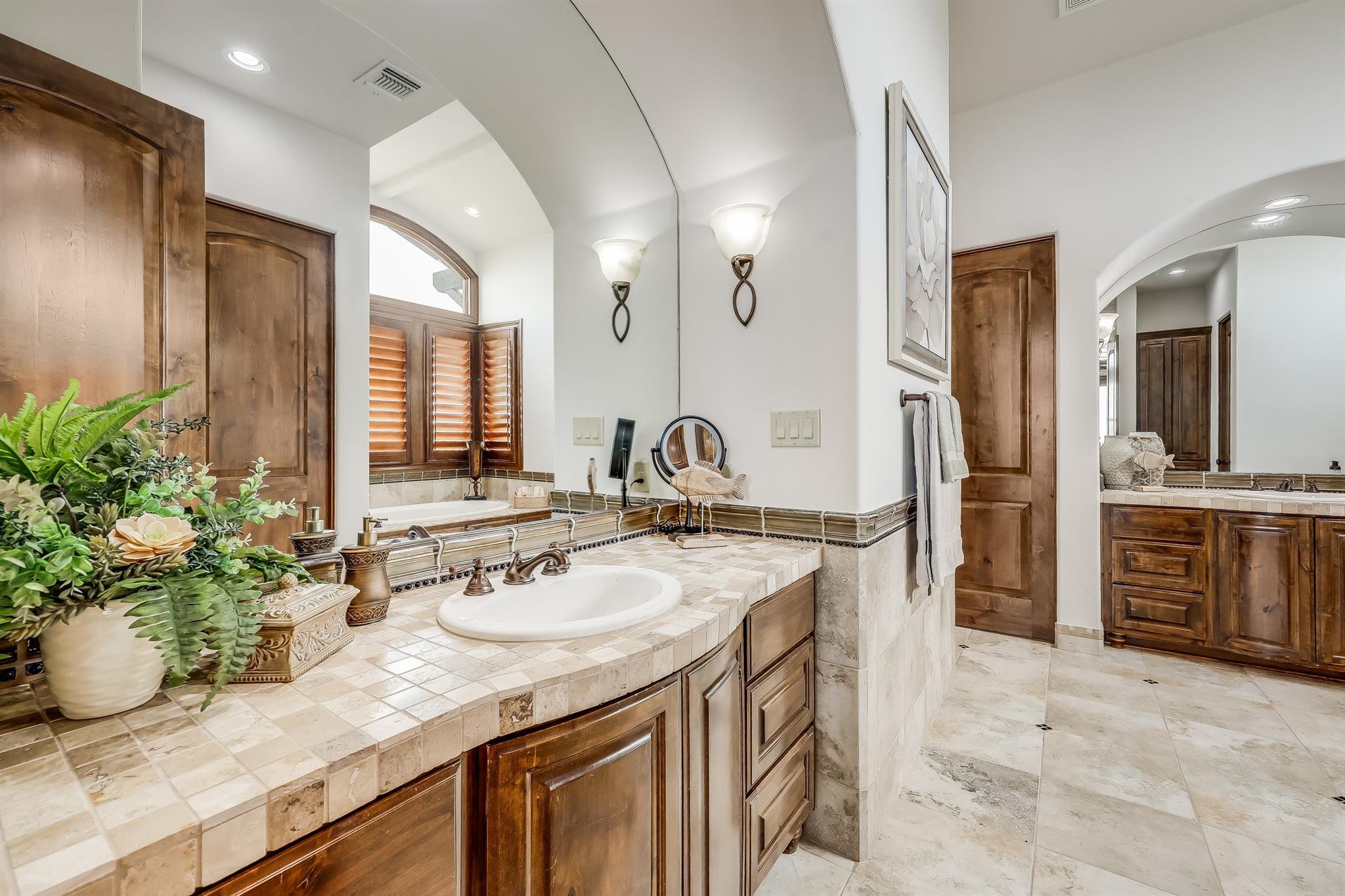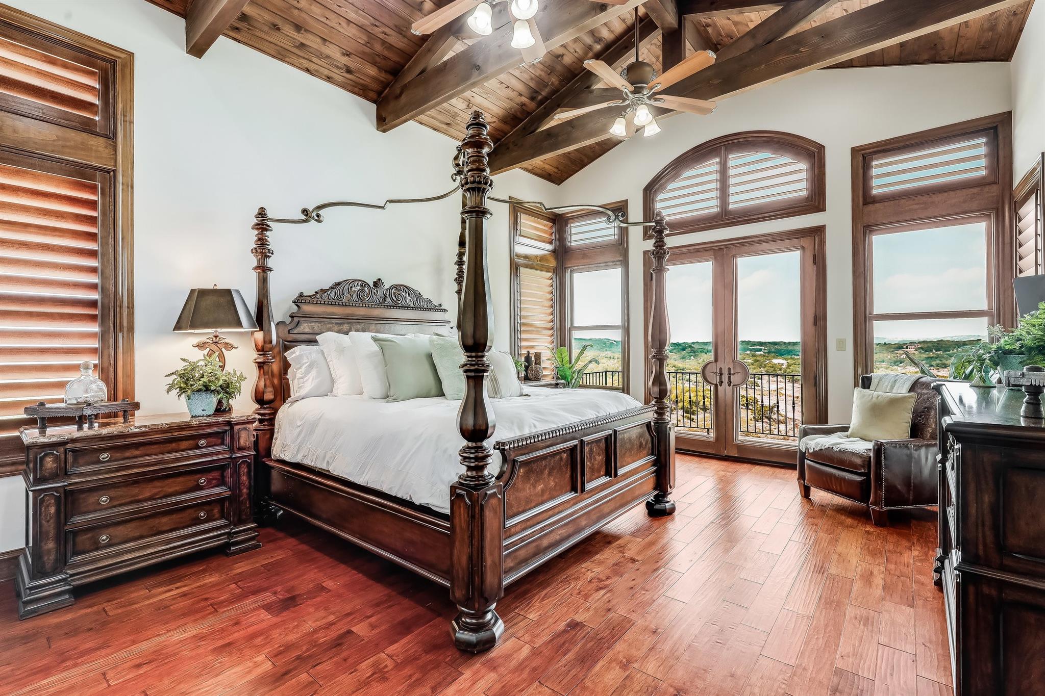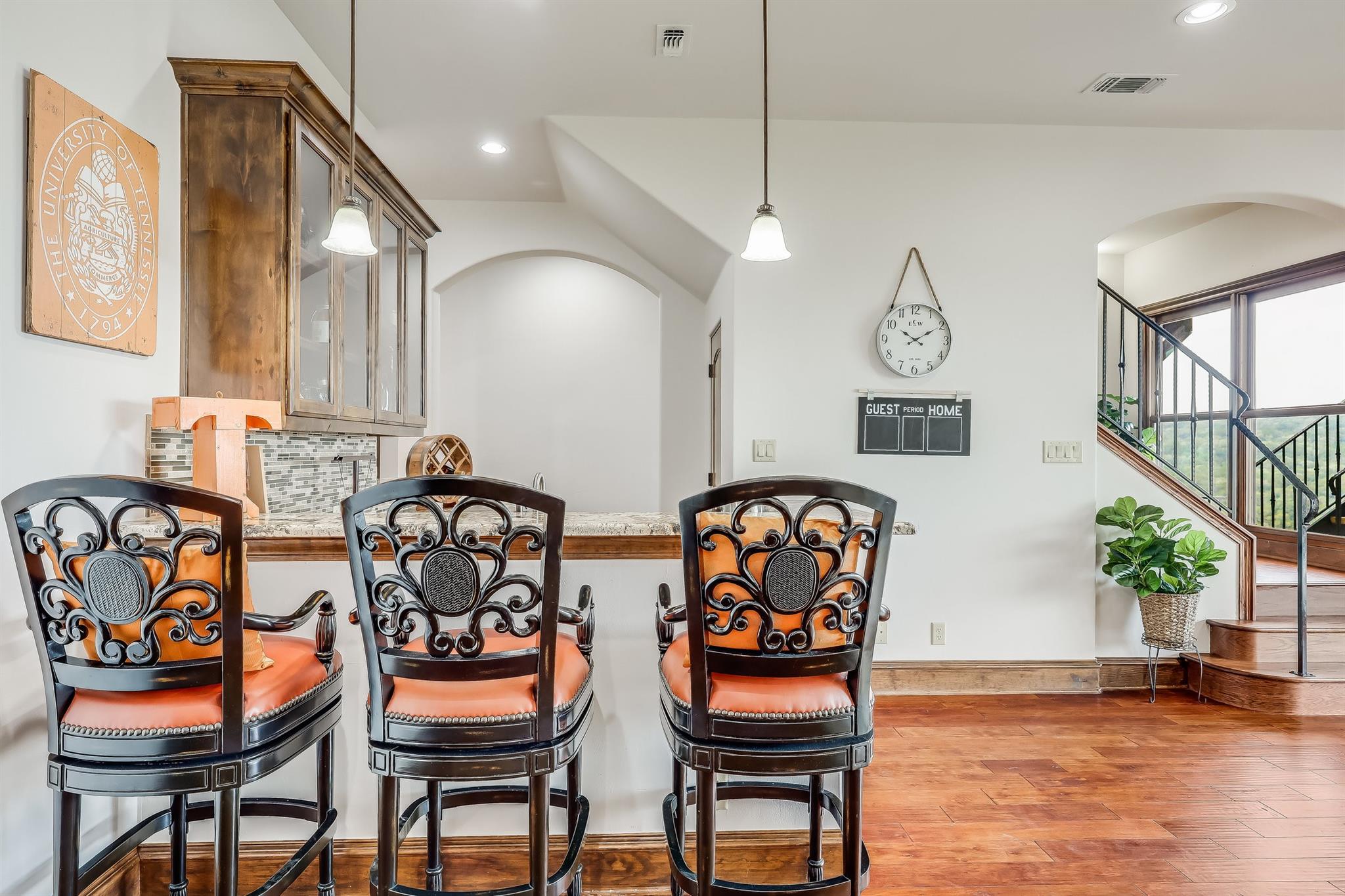 | Interior Features | Bar, Breakfast Bar, Built-in Features, Ceiling Fan(s), Beamed Ceilings, Cathedral Ceiling(s), High Ceilings, Tray Ceiling(s), Chandelier, Granite Counters, Double Vanity, Eat-in Kitchen, Entrance Foyer, French Doors, Interior Steps, Kitchen Island, Multiple Dining Areas, Multiple Living Areas, Natural Woodwork, Open Floorplan, Pantry, Primary Bedroom on Main, Recessed Lighting, Soaking Tub, Storage, Walk-In Closet(s), Washer Hookup, Wet Bar, Wired for Sound | |