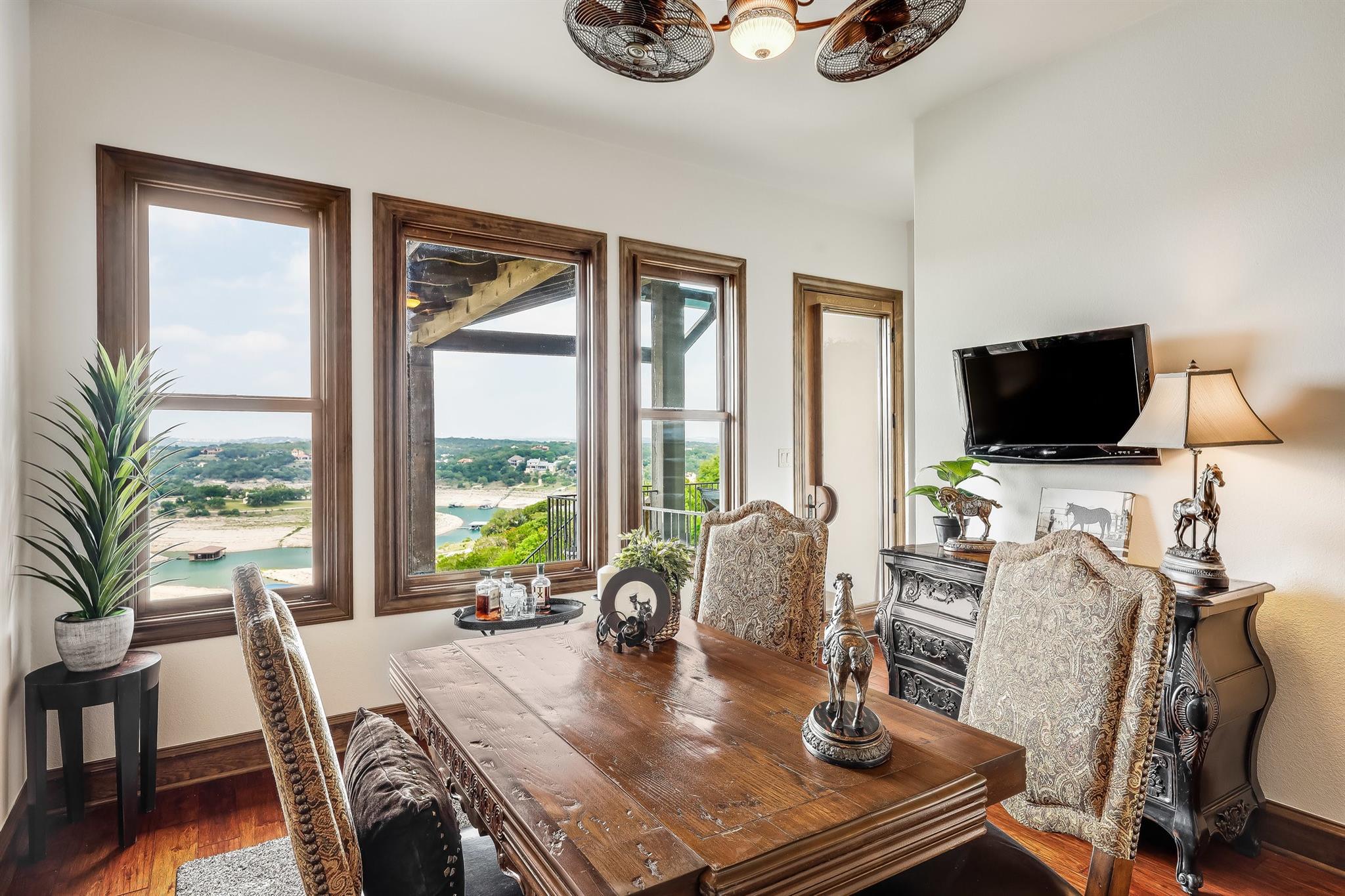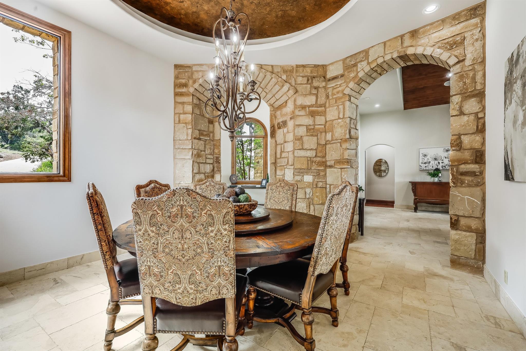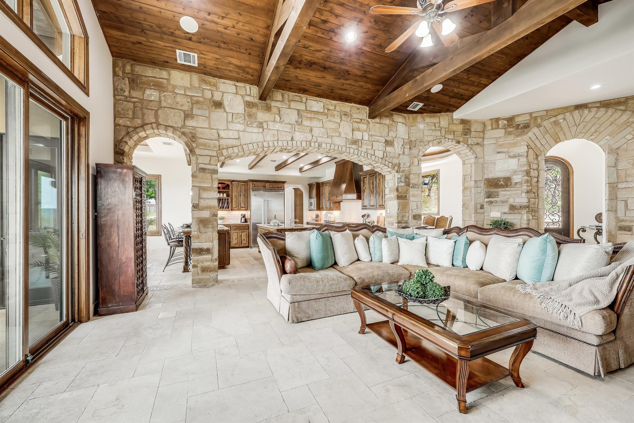Experience the extraordinary beauty of 709 S Angel Light in La Isla at Angel Bay, where the allure of the Mediterranean seamlessly blends with the charm of Texas. This custom-built home is a true masterpiece, offering breathtaking cathedral ceilings and awe-inspiring views from every corner, providing an exquisite and private retreat. Indulge in the sensation of waking up in an elegant Italian villa, right in the heart of Texas, as you step onto the two covered decks that showcase sweeping panoramas of Lake Travis and the captivating hill country. The rustic architectural details, including rich wood beams, stone arches, and earth-toned tile and granite, create a warm and inviting atmosphere. Impeccable top-of-the-line Viking appliances add an extra touch of sophistication to this already elegant residence. Inside, a gourmet kitchen beckons culinary delights, while spa-like bathrooms offer a sanctuary for relaxation. With private access to Lake Travis, every day feels like a permanent vacation in this estate home. While residing in La Isla at Angel Bay, you will enjoy convenient access to a wealth of amenities in Angel Bay, Lakeway, Bee Cave, and Austin, all while relishing in a dream-like escape to nature in the friendly hills of Spicewood, TX. For the residents' enjoyment, a private boat launch and clubhouse are available within the community. Recently renovated, the interior has received a fresh coat of paint, giving it a vibrant look. The kitchen and butler's pantry now showcase sleek subway tile backsplashes, adding a modern touch. In the fall of 2022, a new Viking refrigerator, Sub Zero Wine Cooler, and two Viking Ice Makers were installed, bringing modern conveniences to the kitchen. This property offers an excellent "Turn Key" opportunity as it comes with nearly all the furniture and a majority of the decor. The "Rhino" used for easy access to the boat dock also conveys. Get Instant Equity, priced well below TCAD - MOTIVATED SELLER, BRING AN OFFER!