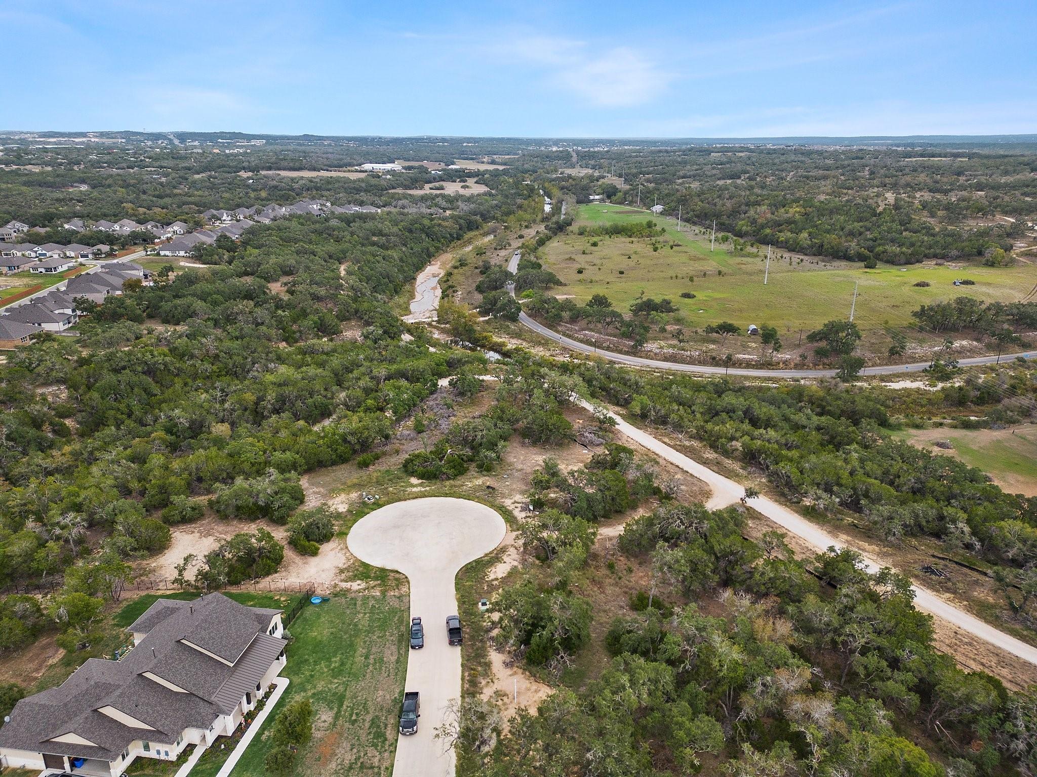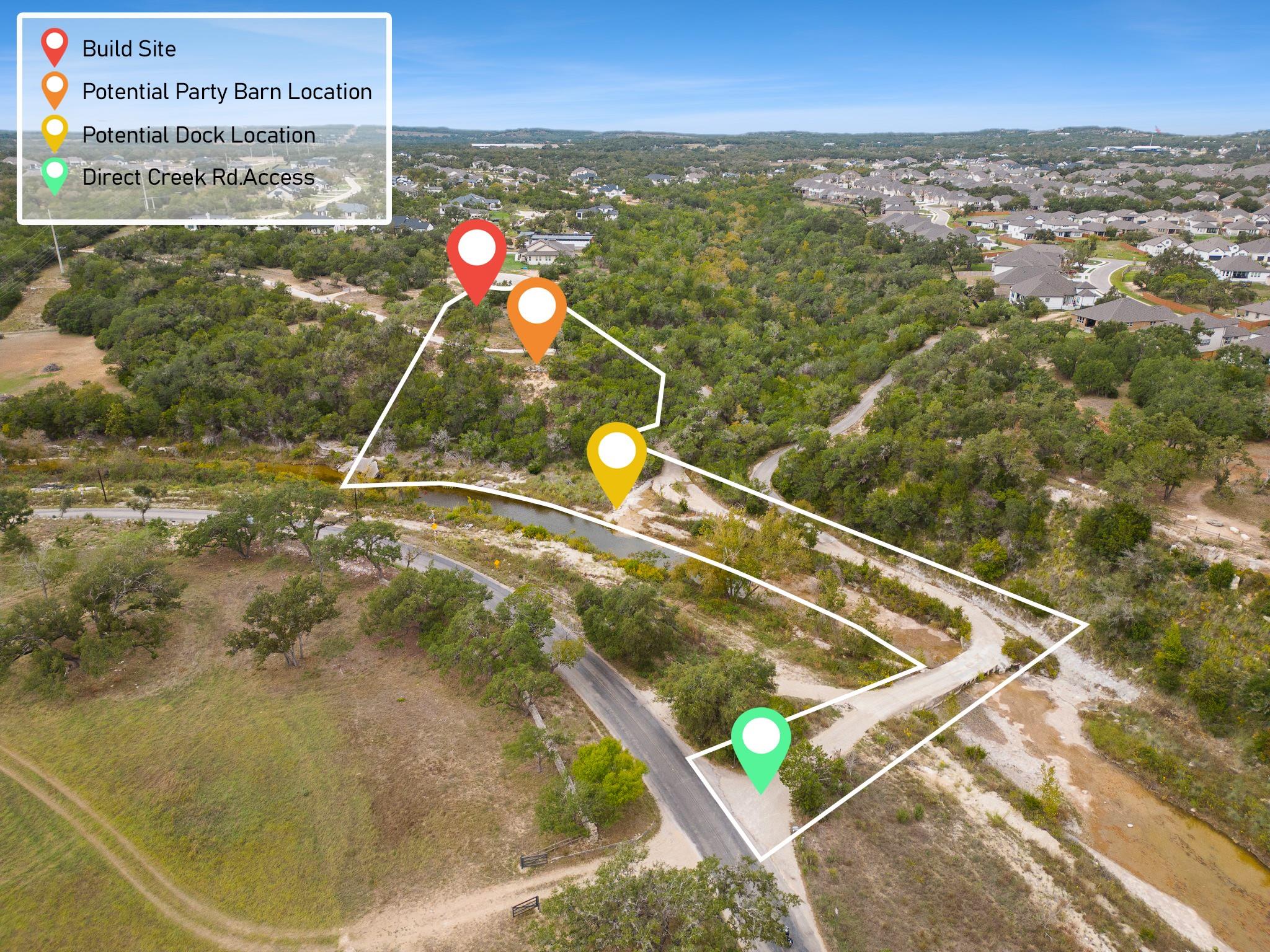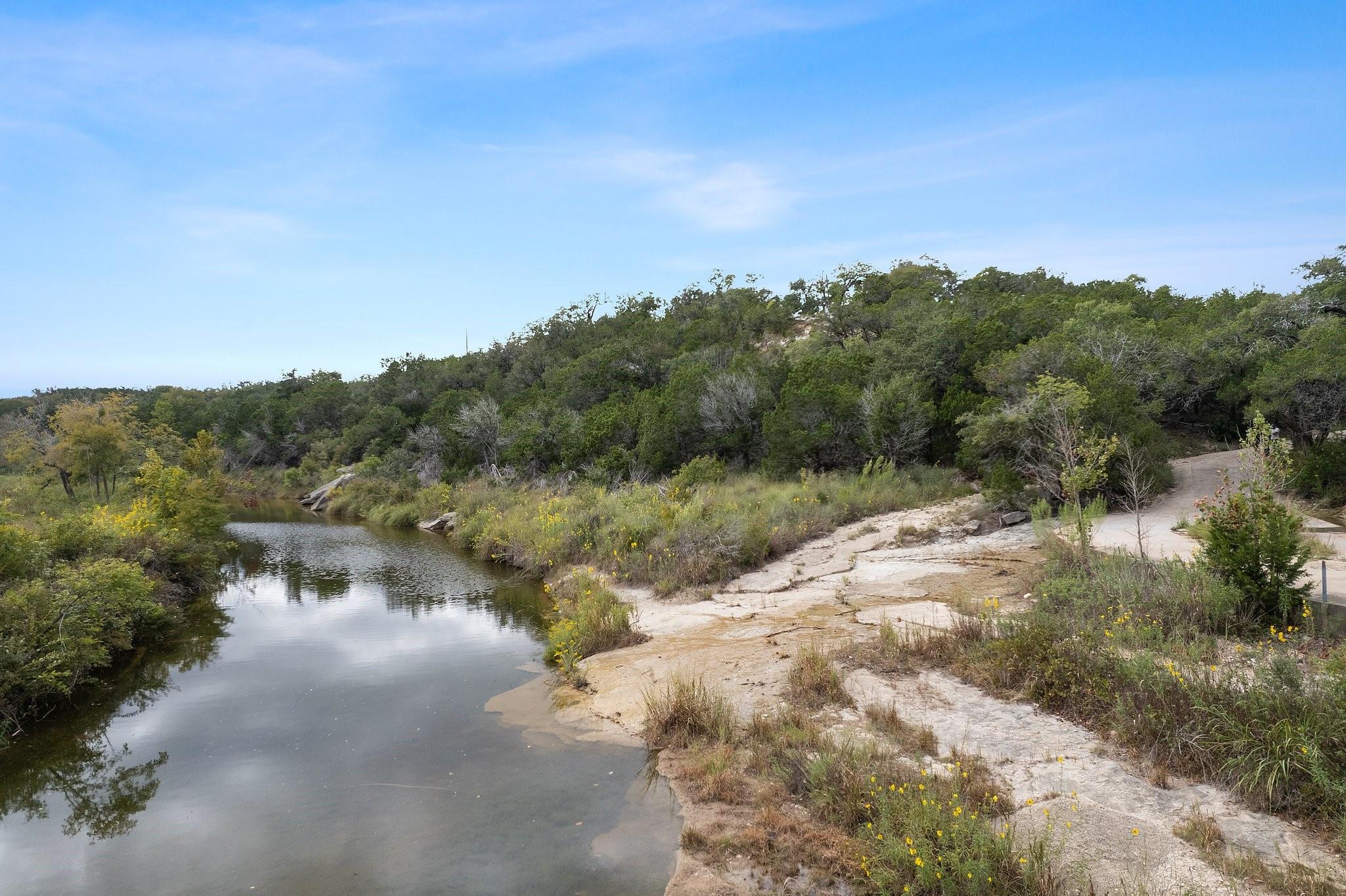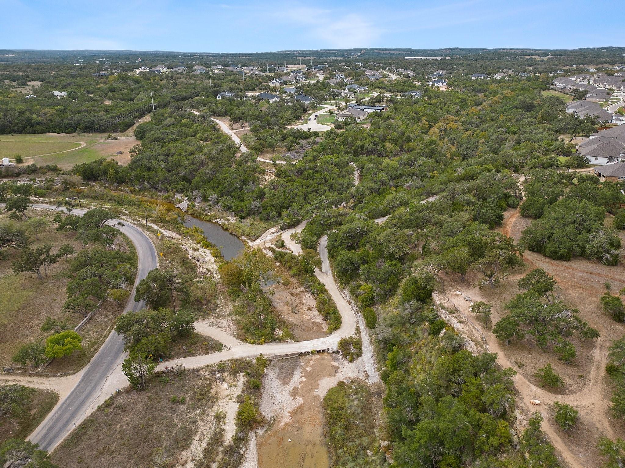 To be built in the gated community of Bunker Ranch by local builder Herradura Homes on a 3.86 acre lot, one of the largest in the community. Not only does this lot feature panoramic hill country views from the build site, but features nearly 500 feet of Onion Creek frontage. There is a perfect bluff to build your dream party barn, and a space for a creek front dock. The proposed TBB floor plan is spacious, with an office and bonus room. If desired, a second story game room or guest room could be added, providing spectacular views of the Onion Creek Valley. Herradura Homes is known for quality and detailed design with high-end upgrades. The home features wood floors throughout, 16-ft ceilings, wood beam accents, designer lighting, quartz countertops, steel front door, solid core interior doors, spray insulation, and a spacious open-concept floor plan. The home's five bedrooms and four full bathrooms include a spacious primary bedroom with an en-suite primary bathroom with double vanity, soaking tub, separate shower, and his-and-hers walk-in closets. The chef's kitchen features a quartz center island, large walk-in pantry, and high end appliances, including a 48-inch built-in gas range with a custom range hood and a 42-inch built-in refrigerator. The kitchen opens to the spacious living room featuring a full masonry stone wall surrounding the fireplace. There is plenty of storage and parking in the 3-car garage, with the separate laundry and mud rooms just inside. The generously-sized covered back patio overlooks the panoramic views to enjoy gatherings by the outdoor fireplace. There is direct access to Creek Rd, so you can be at Camp Lucy and Tillie's in five minutes. Bunker Ranch is located just minutes to Walnut Elementary, Dripping Springs Middle, Dripping Springs High School and downtown Dripping Springs. Standard builder warranty.