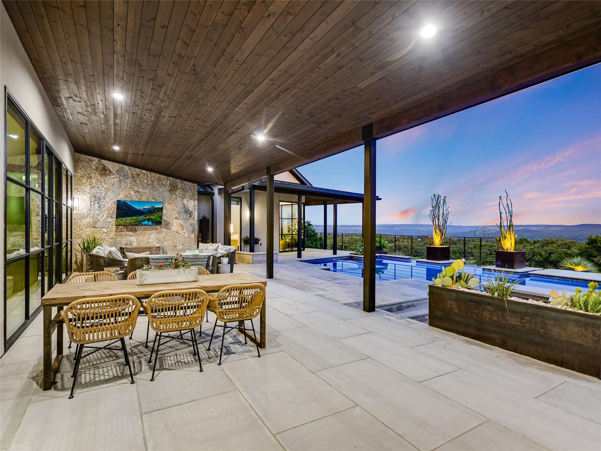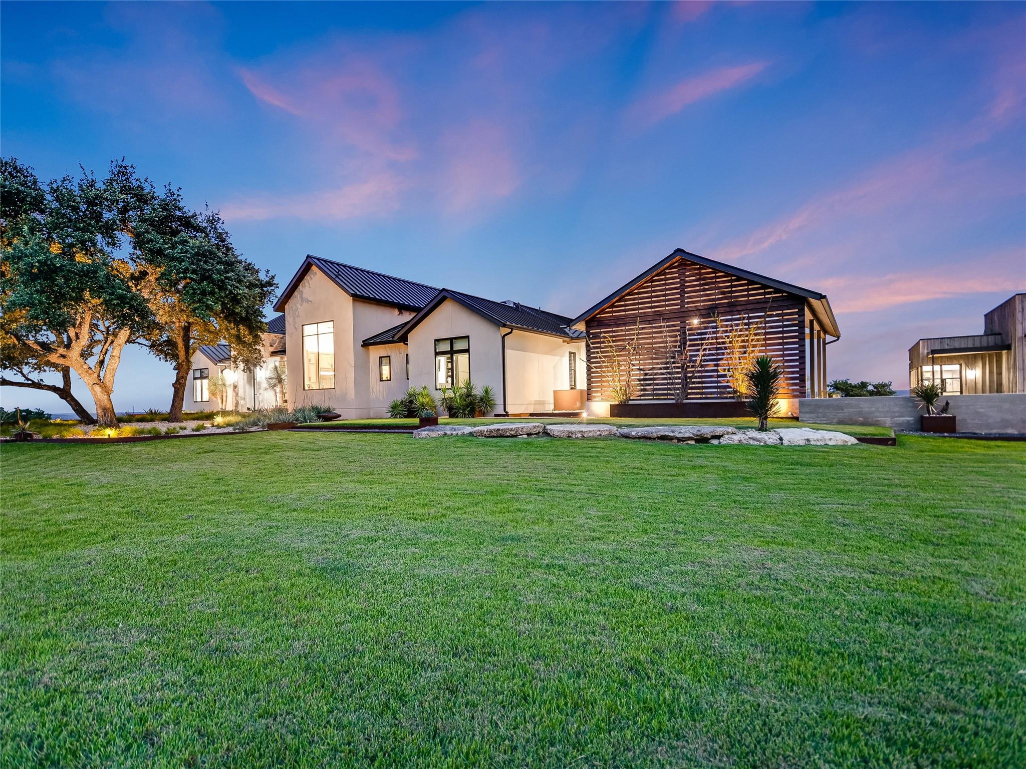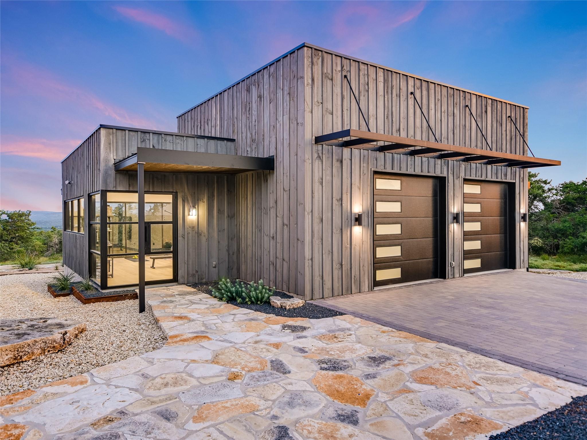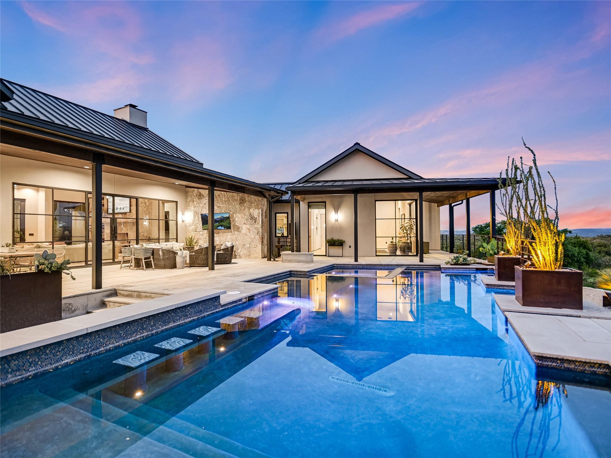 Escape to this extraordinary, modern Texas Hill Country home on a sprawling 23+/- acre property with awe-inspiring panoramic views. This estate offers a perfect blend of tranquility, luxury, and convenience.As you step inside, the grandeur of this meticulously designed residence unfolds. The open floor plan seamlessly blends indoor and outdoor living, allowing you to fully immerse yourself in the breathtaking surroundings and unobstructed hill country views. White oak wood floors and steel windows exude contemporary elegance, while natural light creates an inviting atmosphere.The spacious living area features a magnificent stone fireplace, creating a warm ambiance for gatherings. The chef's kitchen is a culinary masterpiece with top-of-the-line Wolf appliances and a Sub-Zero refrigerator. Entertain in the dining area or gather around the 11 ft custom island with floor-to-ceiling windows offering breathtaking views.The luxurious master suite offers a private retreat with stunning views adjoined by a spa-like ensuite bathroom including a sauna. Three additional spacious bedrooms each have their own private bath with custom tile work.The home offers ample storage options, including generous closets, a mudroom, and an oversized laundry room equipped with two washers and dryers. A custom safe room provides a secure shelter during inclement weather or to protect your collectables.The two-tier pool, expansive deck, covered patio, and fire pit are the ultimate entertainment experience.Landscaped grounds provide a serene backdrop.Located in the coveted Wimberley ISD and close to Austin and San Antonio airports; tranquility with city amenities! It features an oversized,detached air-conditioned space with a garage, workout room, and storage.All of this PLUS a wildlife exemption! Don't miss your opportunity to own this entertainer's dream in Wimberley, Texas. Schedule your private tour today and experience the unparalleled luxury and serenity this property has to offer.