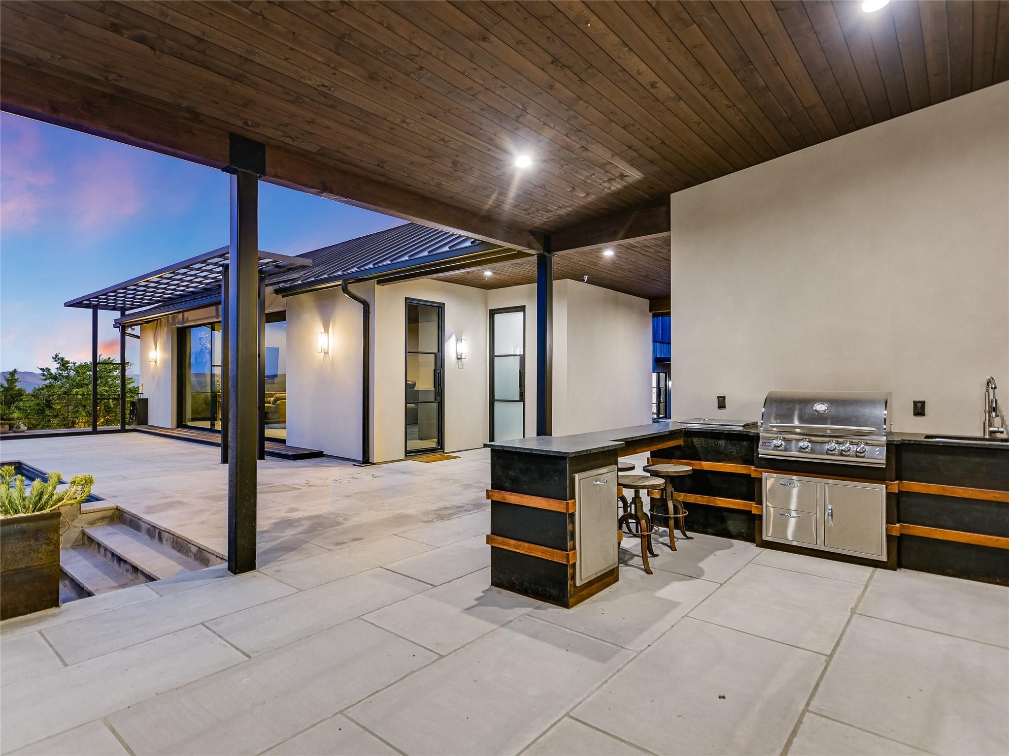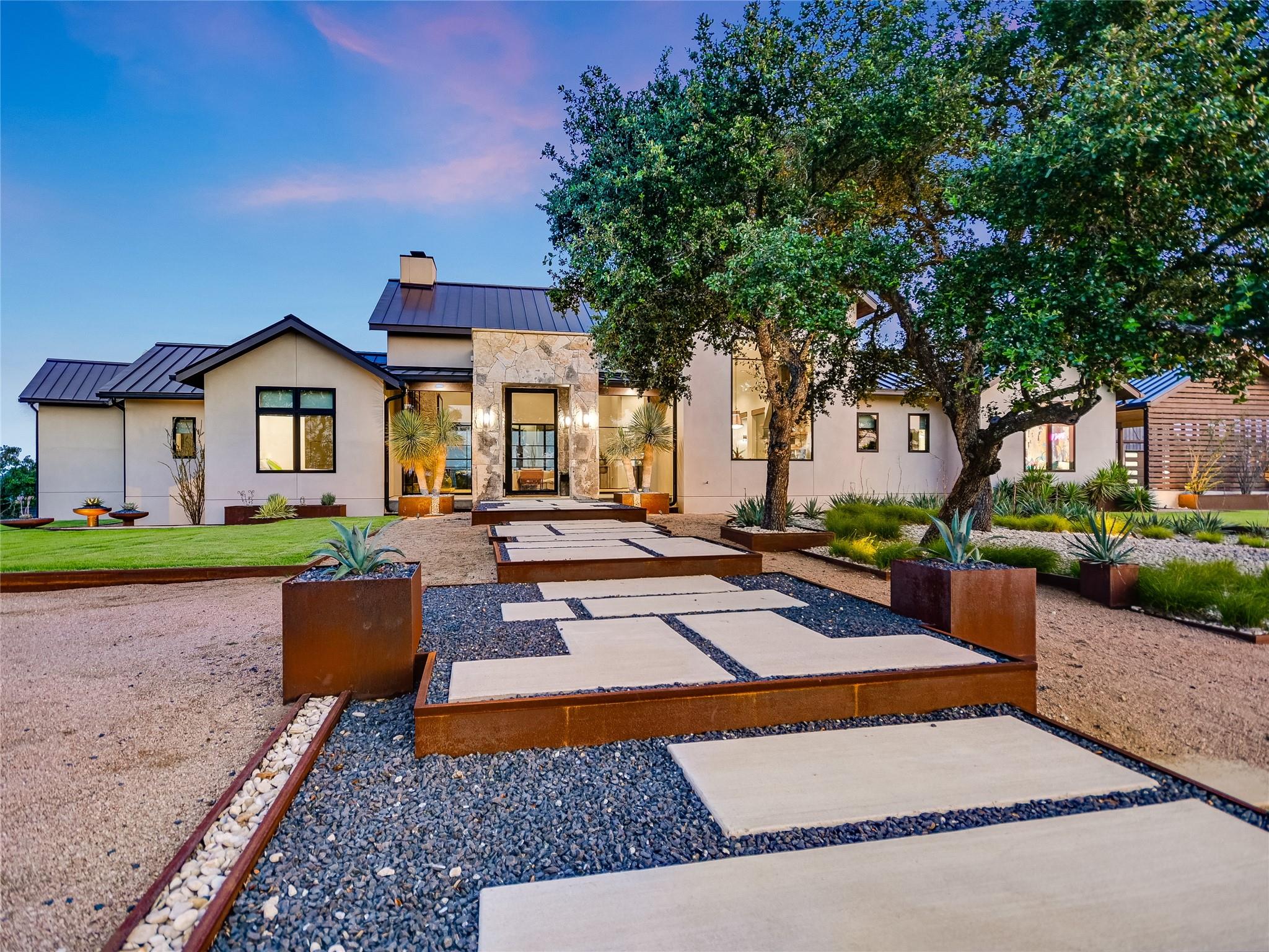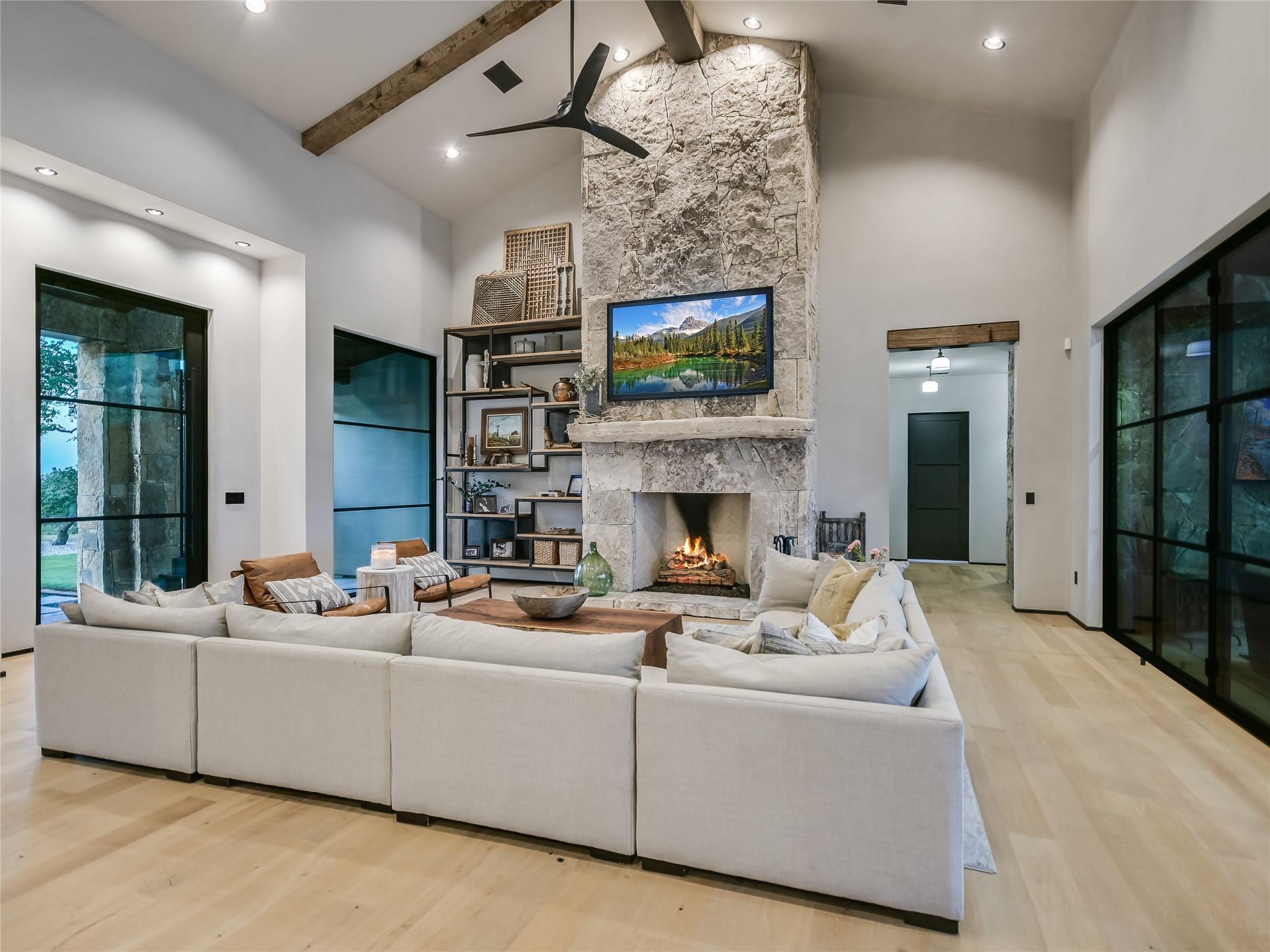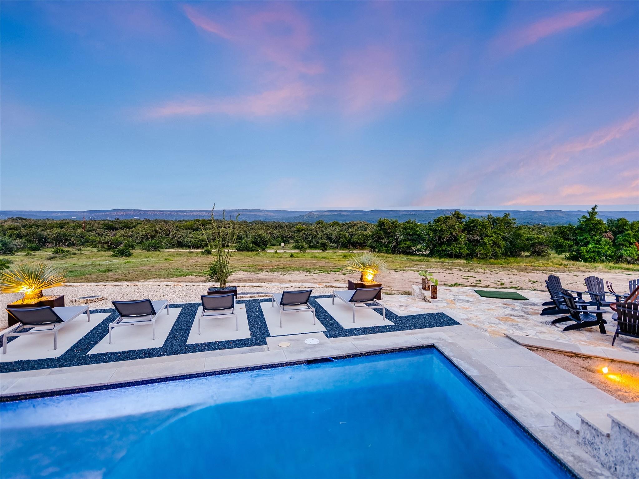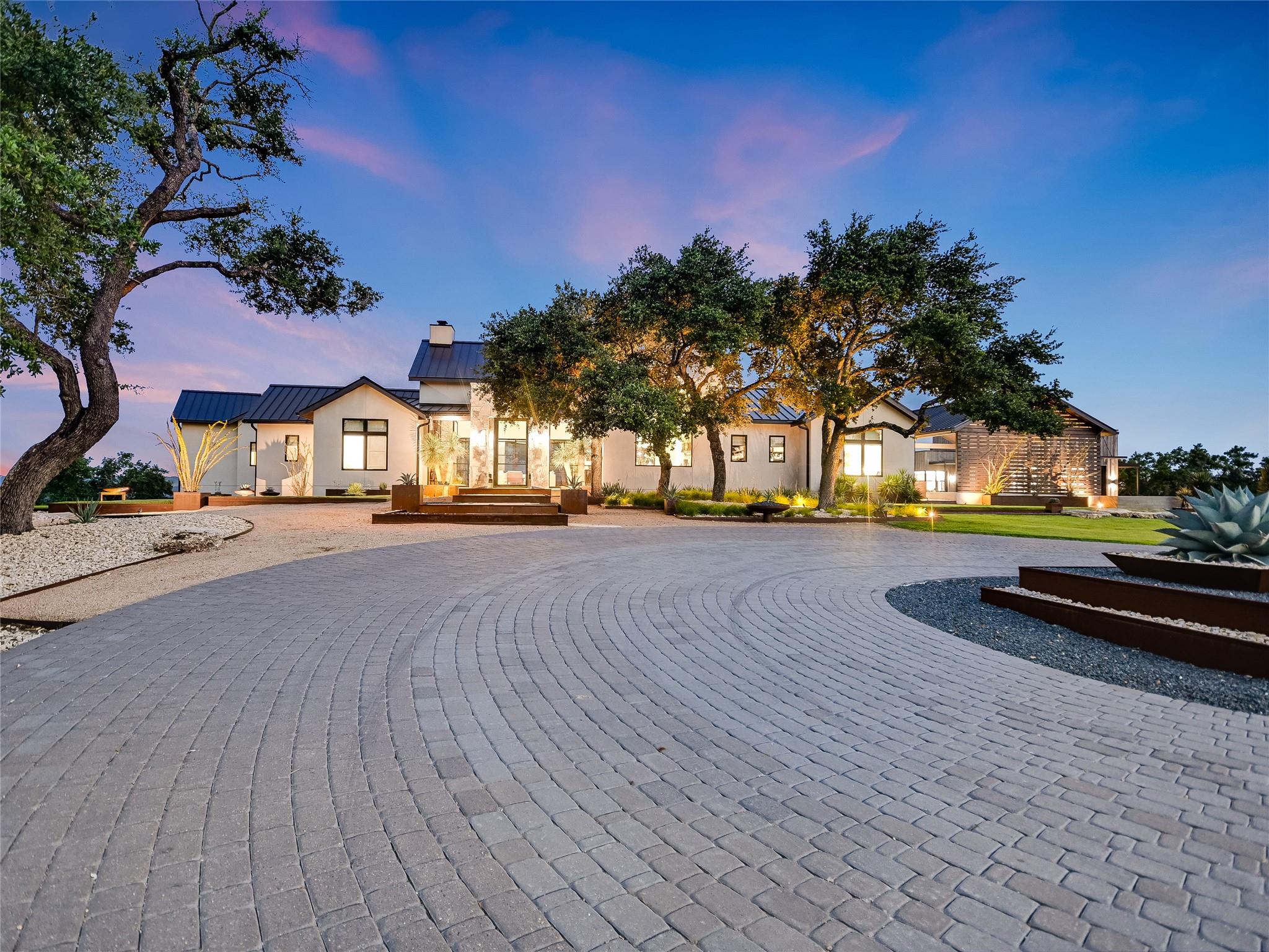 Escape to this extraordinary, modern Texas Hill Country home on a sprawling 23+/- acre property with awe-inspiring panoramic views. This estate offers a perfect blend of tranquility, luxury, and convenience.As you step inside, the grandeur of this meticulously designed residence unfolds. The open floor plan seamlessly blends indoor and outdoor living, allowing you to fully immerse yourself in the breathtaking surroundings and unobstructed hill country views. White oak wood floors and steel windows exude contemporary elegance, while natural light creates an inviting atmosphere.The spacious living area features a magnificent stone fireplace, creating a warm ambiance for gatherings. The chef's kitchen is a culinary masterpiece with top-of-the-line Wolf appliances and a Sub-Zero refrigerator. Entertain in the dining area or gather around the 11 ft custom island with floor-to-ceiling windows offering breathtaking views.The luxurious master suite offers a private retreat with stunning views adjoined by a spa-like ensuite bathroom including a sauna. Three additional spacious bedrooms each have their own private bath with custom tile work.The home offers ample storage options, including generous closets, a mudroom, and an oversized laundry room equipped with two washers and dryers. A custom safe room provides a secure shelter during inclement weather or to protect your collectables.The two-tier pool, expansive deck, covered patio, and fire pit are the ultimate entertainment experience.Landscaped grounds provide a serene backdrop.Located in the coveted Wimberley ISD and close to Austin and San Antonio airports; tranquility with city amenities! It features an oversized,detached air-conditioned space with a garage, workout room, and storage.All of this PLUS a wildlife exemption! Don't miss your opportunity to own this entertainer's dream in Wimberley, Texas. Schedule your private tour today and experience the unparalleled luxury and serenity this property has to offer.