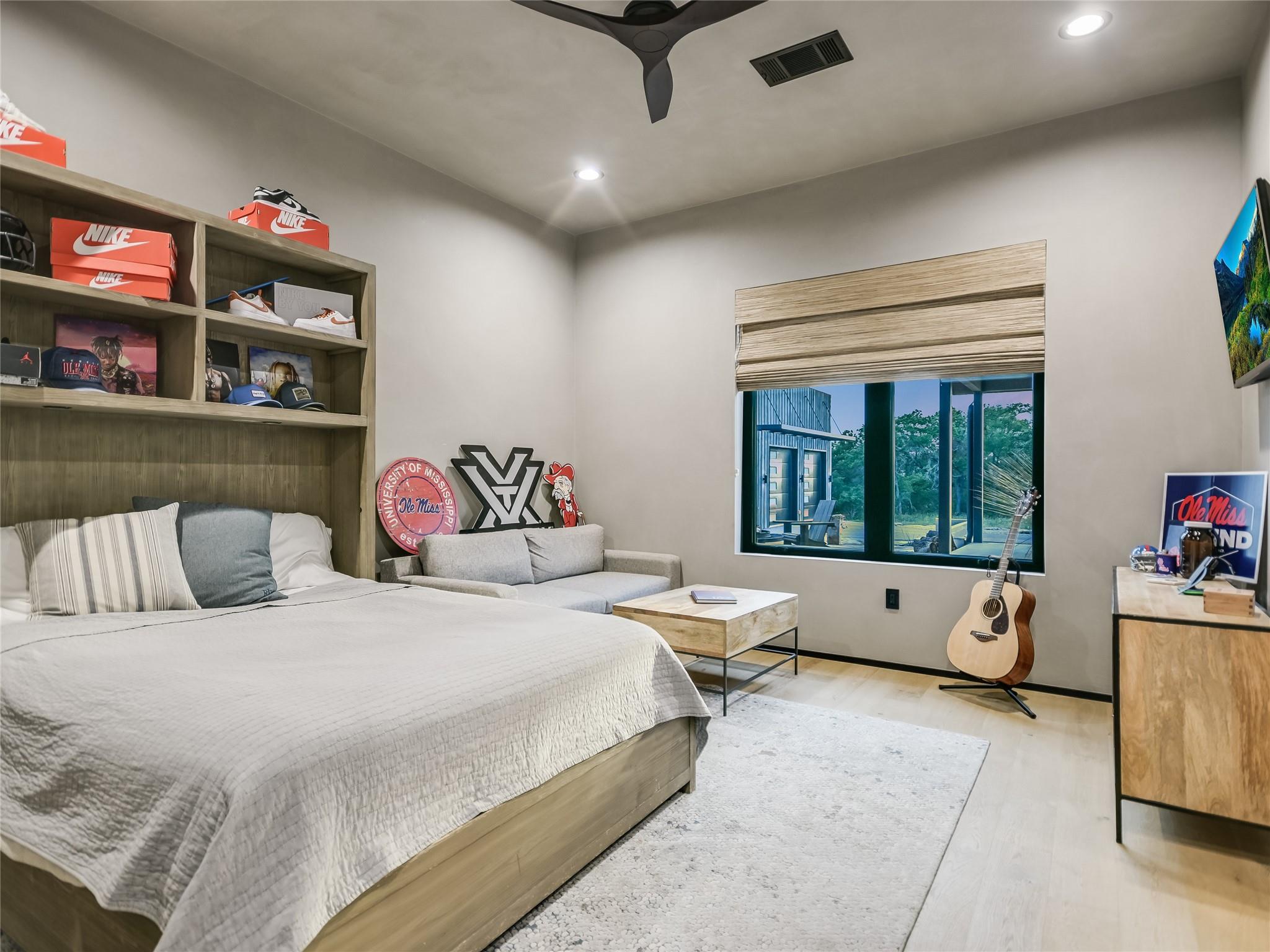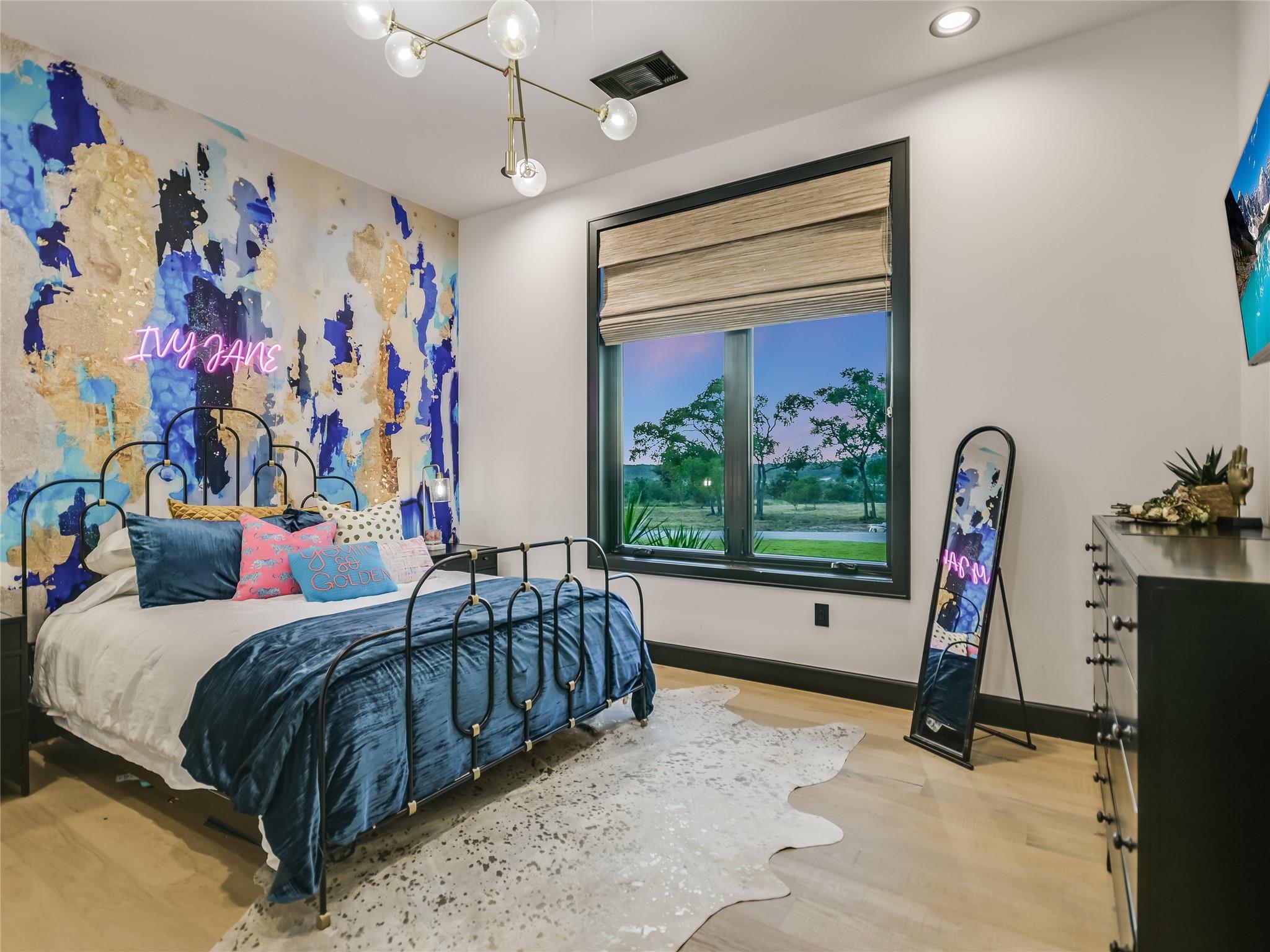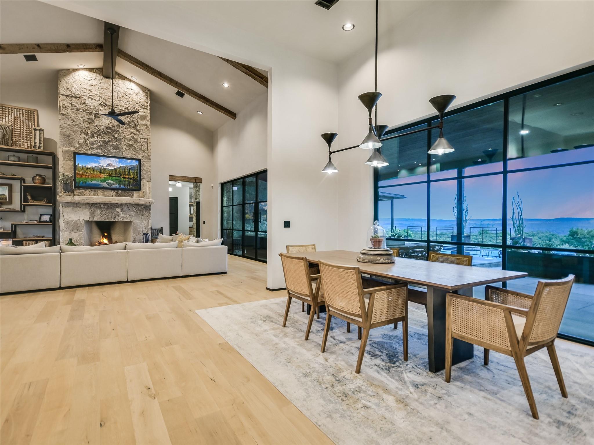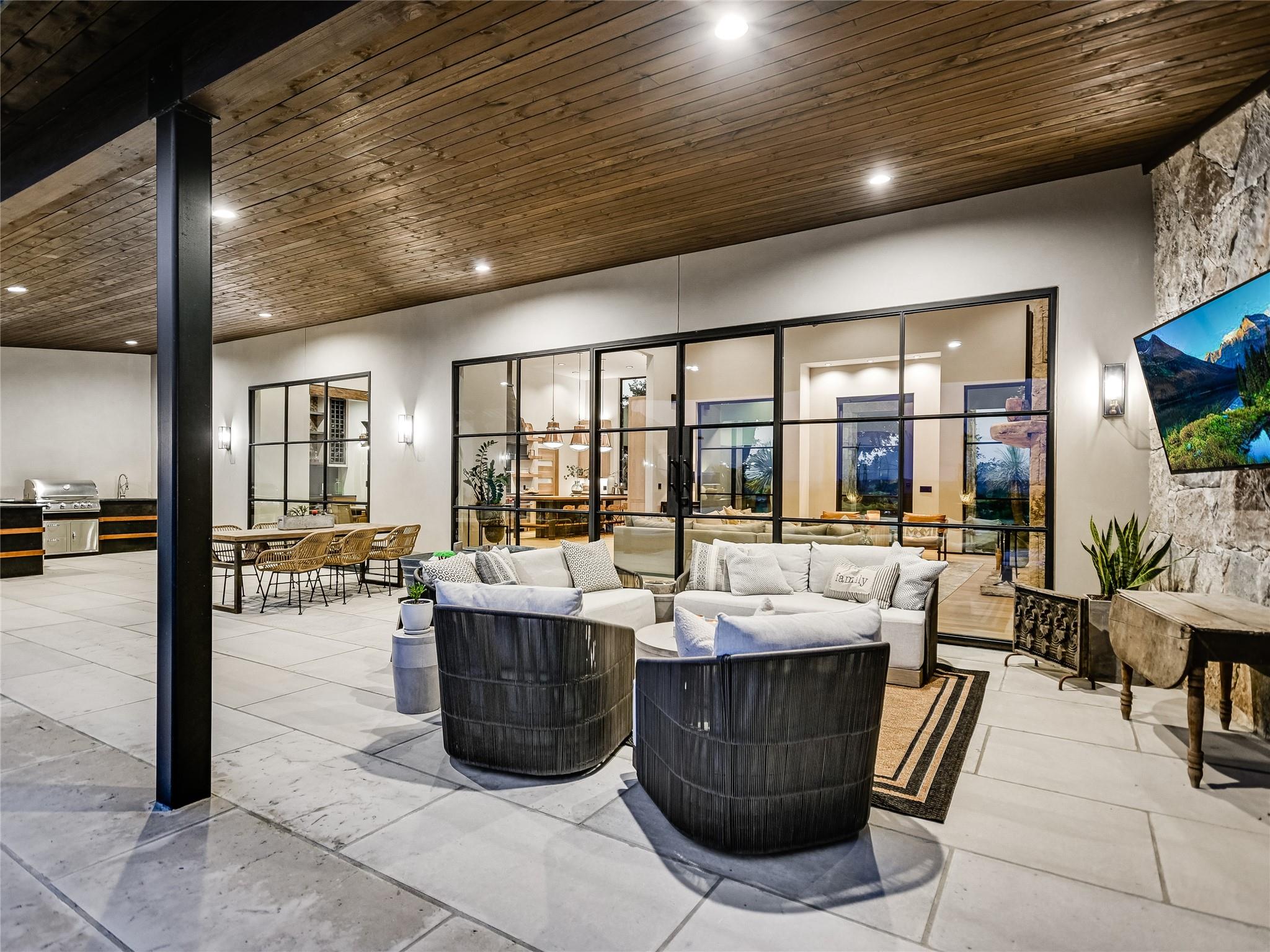 Escape to this extraordinary, modern Texas Hill Country home on a sprawling 23+/- acre property with awe-inspiring panoramic views. This estate offers a perfect blend of tranquility, luxury, and convenience.As you step inside, the grandeur of this meticulously designed residence unfolds. The open floor plan seamlessly blends indoor and outdoor living, allowing you to fully immerse yourself in the breathtaking surroundings and unobstructed hill country views. White oak wood floors and steel windows exude contemporary elegance, while natural light creates an inviting atmosphere.The spacious living area features a magnificent stone fireplace, creating a warm ambiance for gatherings. The chef's kitchen is a culinary masterpiece with top-of-the-line Wolf appliances and a Sub-Zero refrigerator. Entertain in the dining area or gather around the 11 ft custom island with floor-to-ceiling windows offering breathtaking views.The luxurious master suite offers a private retreat with stunning views adjoined by a spa-like ensuite bathroom including a sauna. Three additional spacious bedrooms each have their own private bath with custom tile work.The home offers ample storage options, including generous closets, a mudroom, and an oversized laundry room equipped with two washers and dryers. A custom safe room provides a secure shelter during inclement weather or to protect your collectables.The two-tier pool, expansive deck, covered patio, and fire pit are the ultimate entertainment experience.Landscaped grounds provide a serene backdrop.Located in the coveted Wimberley ISD and close to Austin and San Antonio airports; tranquility with city amenities! It features an oversized,detached air-conditioned space with a garage, workout room, and storage.All of this PLUS a wildlife exemption! Don't miss your opportunity to own this entertainer's dream in Wimberley, Texas. Schedule your private tour today and experience the unparalleled luxury and serenity this property has to offer.