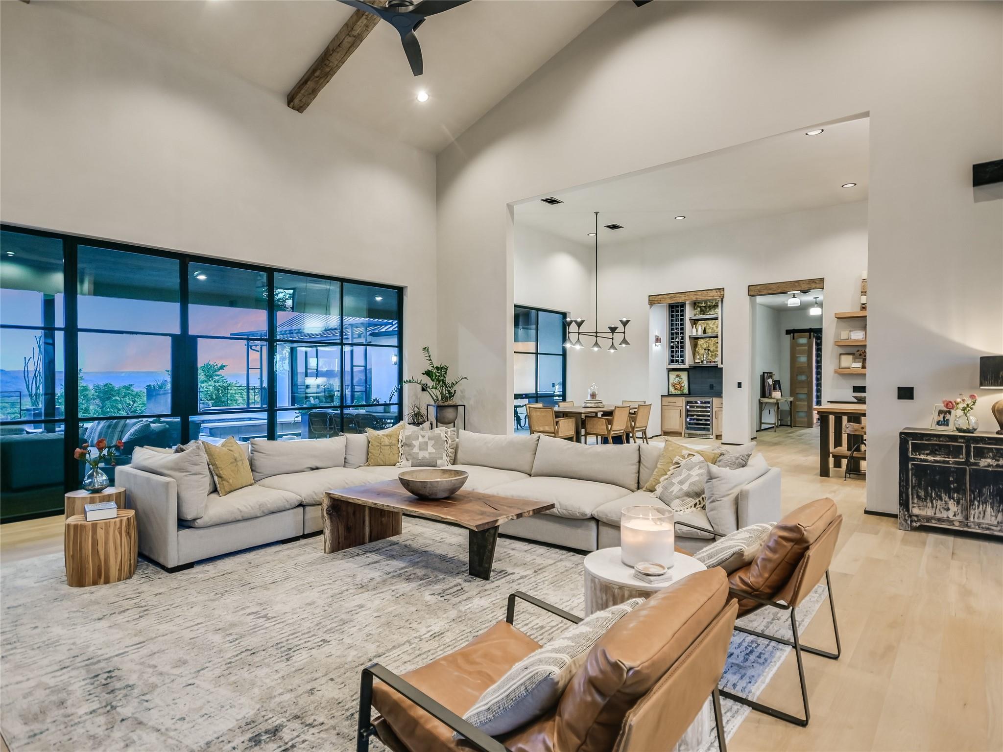 | Interior Features | Built-in Features, Beamed Ceilings, High Ceilings, Chandelier, Granite Counters, Quartz Counters, Double Vanity, Kitchen Island, Open Floorplan, Pantry, Primary Bedroom on Main, Sauna, Smart Thermostat, Soaking Tub, Stackable W/D Connections, Two Primary Closets, Walk-In Closet(s) | |