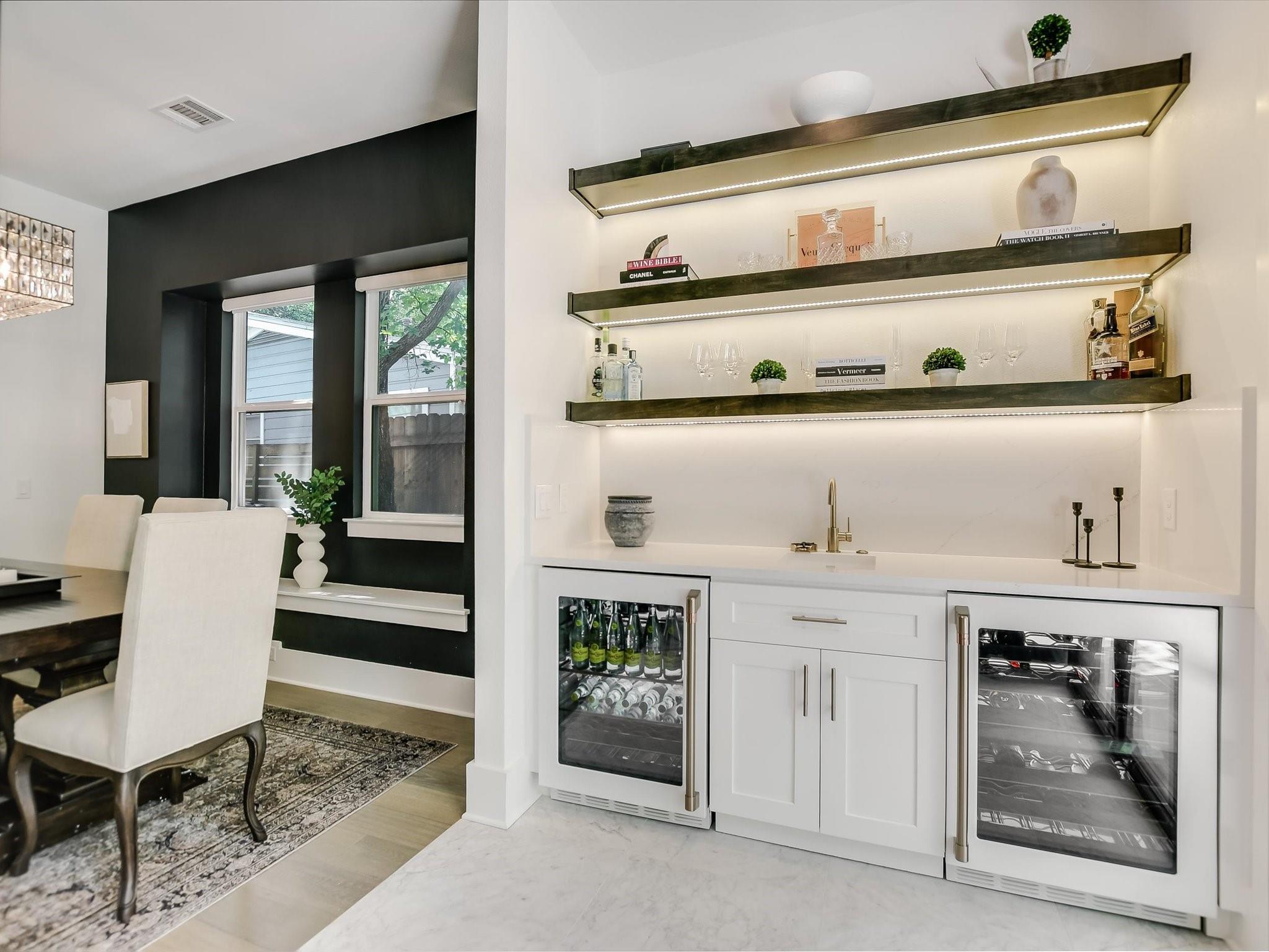 | Appliances | Bar Fridge, Convection Oven, Dishwasher, Disposal, Gas Cooktop, Microwave, Gas Oven, Refrigerator, Vented Exhaust Fan, Wine Refrigerator | |