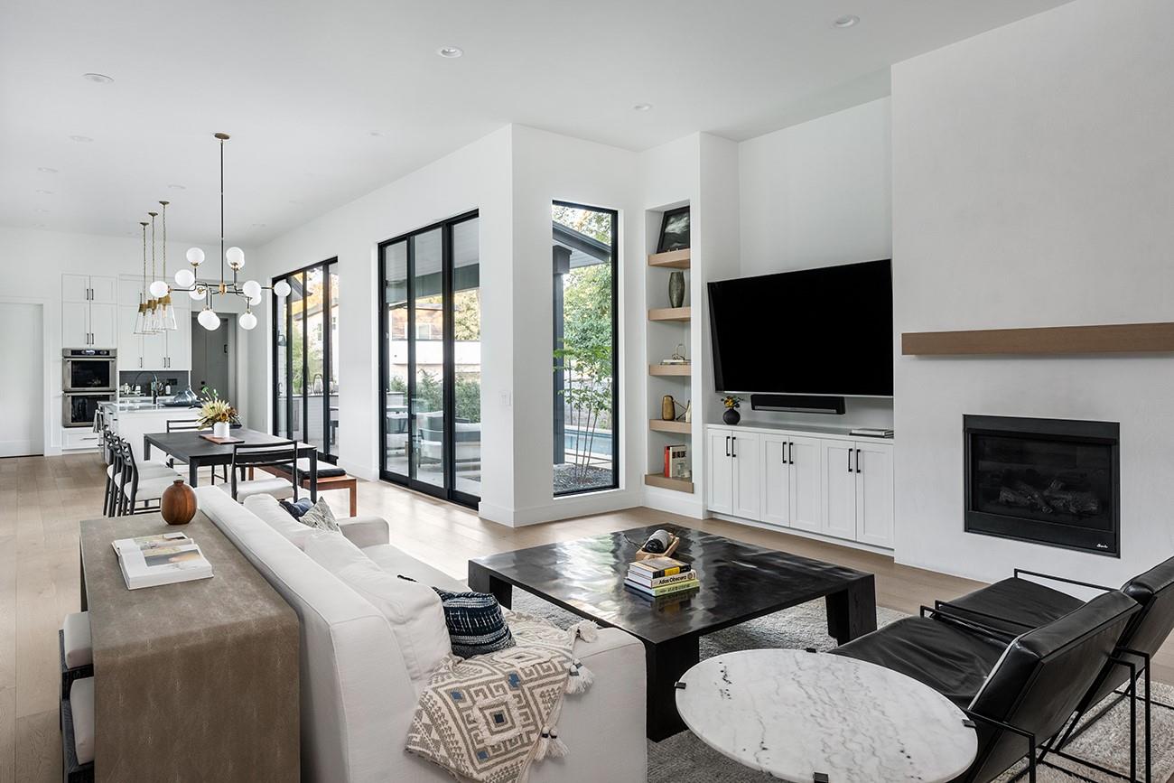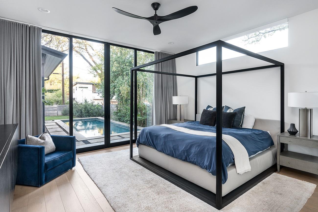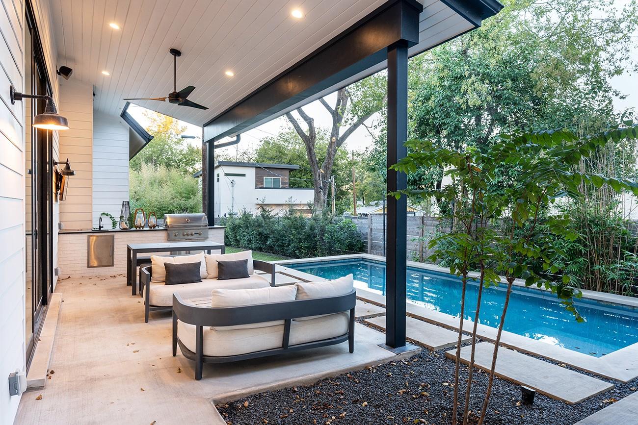 A tasteful, timeless home from Mozami Homes, filled with sophisticated finishes and sitting in an exceptional Bouldin Creek location. The open floor plan allows the chef's kitchen to flow seamlessly into the dining and living rooms, and expansive windows are placed carefully throughout. The modern layout maximizes convenient first-floor living, with a spacious primary suite overlooking the pool, a large walk-in closet, and a stunning spa bath. There is also a first-floor guest room with an ensuite bath, and a large first-floor office. You'll enjoy easy alley access and a two-car carport. Finishes include: Western doors & windows, 5' Western entrance, Thermador appliances, White oak floors, custom cabinetry, quartz counters, matte black finished plumbing, & designer lighting.