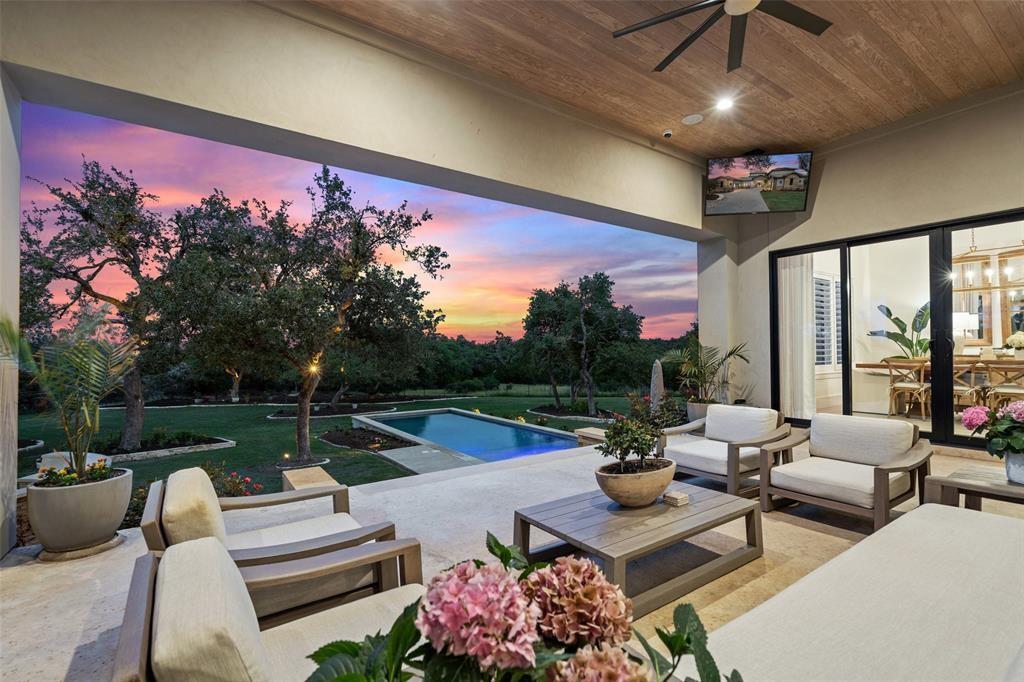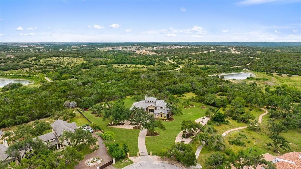 Welcome to 18001 Glenville Cove. The epitome of Texas Hill Country living. This magnificent custom built is remarkable in every detail. In this peaceful setting, this home sits on 2.33 acres on one of the best lots in Belvedere with HOA green space on one side and High game fence acreage to the rear of the homesite. When you enter this secluded 5026 sqft sprawling estate you will find a captivating open floor plan with soaring ceilings and floor to ceiling sliding doors that fill the home with natural light. The gourmet kitchen has custom Tuscany Viking edition oven. The private primary bedroom has incredible views and accessibility to the gardens and lush landscaped backyard. The primary bathroom is a spa like retreat with an inviting and spacious layout, dual vanities, a stand alone tub, walk in shower and two bright and extra spacious primary closets. On the main floor south wing of the home you will find 3 sizable guest bedrooms each with its own beautiful private bathroom. Upstairs you will find a retreat for relaxing with a media room, beverage fridge, along with a 5th full bath. Bring the outdoors in and open up the massive sliding glass door to the expansive patio. Enjoy the abundance of mature oak tree lined backyard view with a gorgeous pool, custom built bbq/fire pit area, and lavish fruitful gardens. Bring your prized cars side by side, or water toys for this spacious 5 car, air conditioned garages. This fully fenced and gated property is perfectly secured for families and pets along with a water filter system, CCTV security system, full irrigation, control 4 system with sound system throughout the home, patio and gym as well as full house plantation shutters. Belvedere is an award winning community with 80 acres of nature preserves, fishing ponds and a community center with lazy river pool, splash pad, and sports court. Convenient to shopping and dining in Bee Cave, Lakeway, Dripping Springs. Low tax rates and sought after Lake Travis ISD.