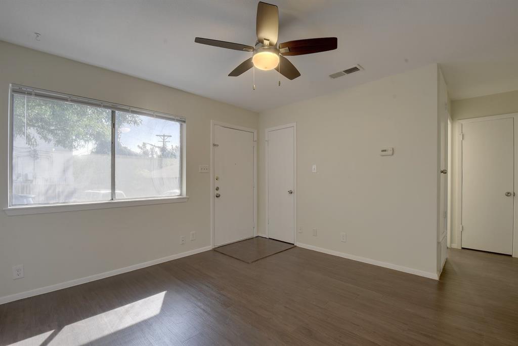Cute 1bed/1bath single story apartment in South Austin fourplex located near St. Edwards University. Landlord provides common area maintenance, water and sewer. Tenant responsible for electricity, internet, cable and/or phone. Unit A has been freshly painted has new window blinds and both the bathroom and kitchen have been recently updated. Kitchen has stainless steel appliances (stove, microwave, dishwasher, refrigerator - please note microwave not in pictures, new appliance to be installed). Community Laundry room at end of building. No smoking in the unit, but smoking allowed outside in common area or private patio. Floors are laminate and tile (no carpet). Large primary bedroom has walk-in closet. Pets allowed, contact agent for additional information about pet policy, deposits and fees.