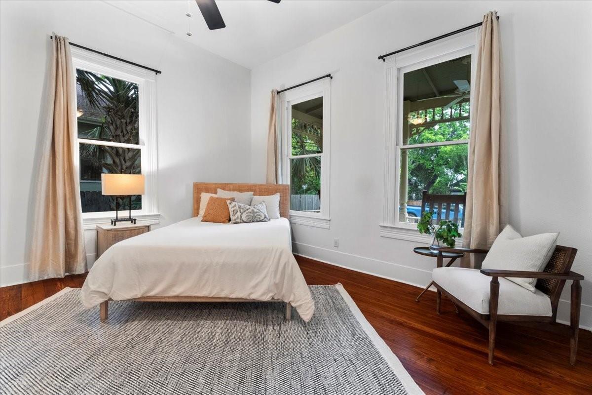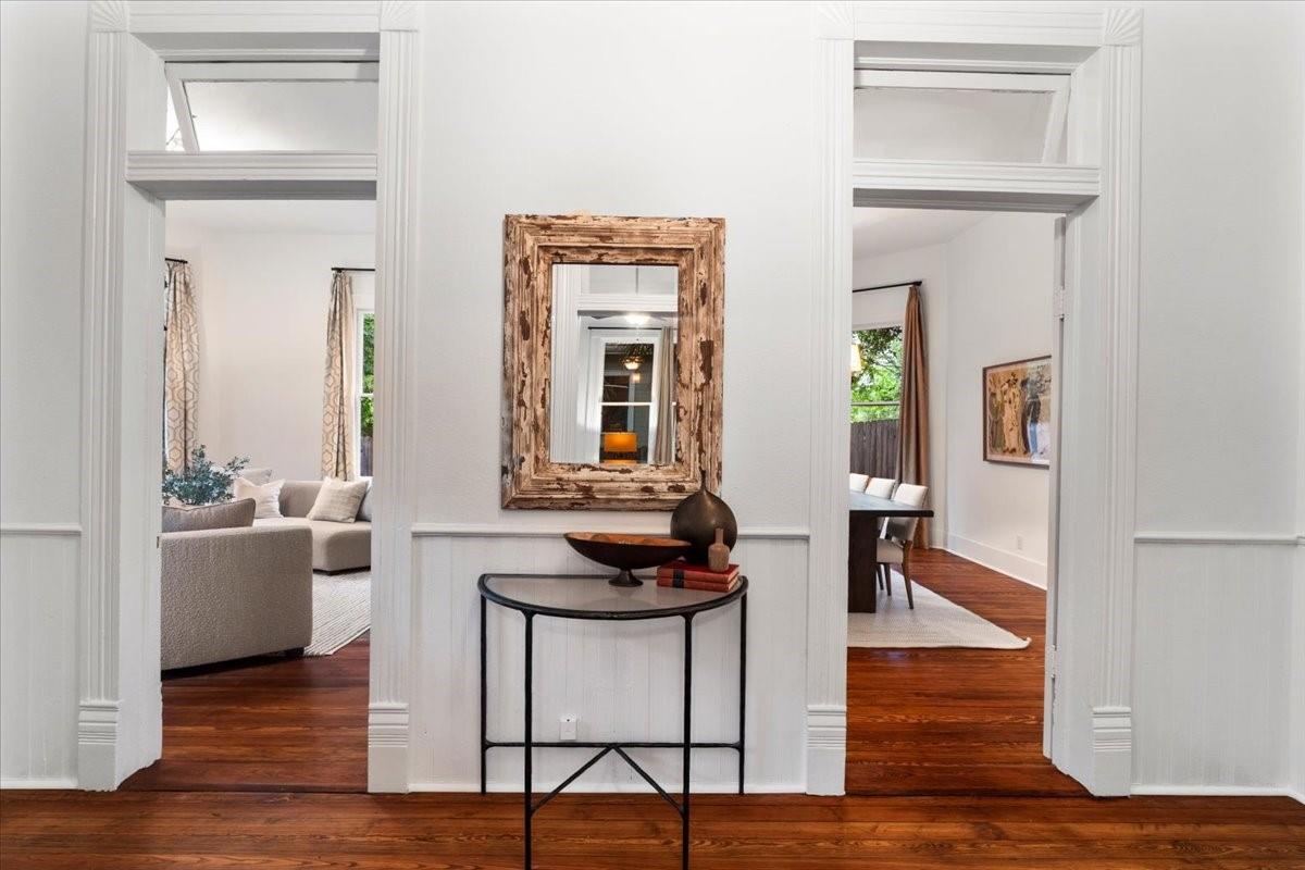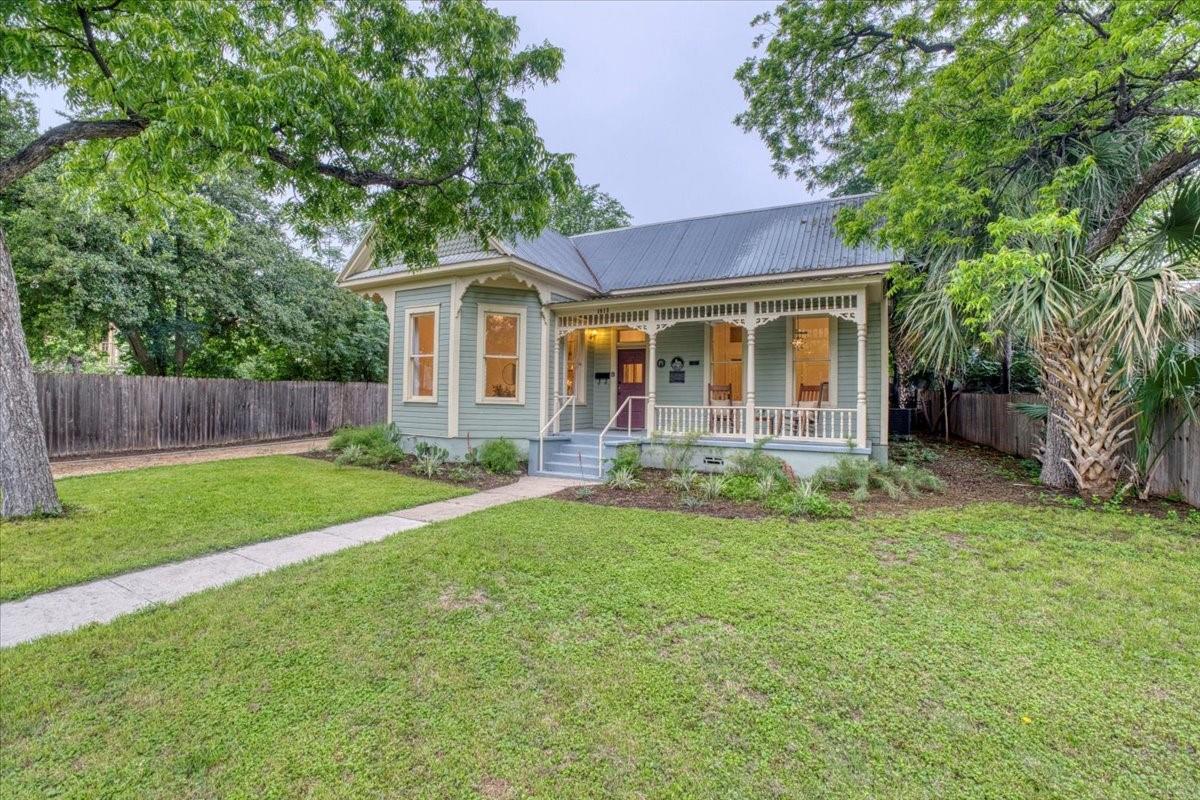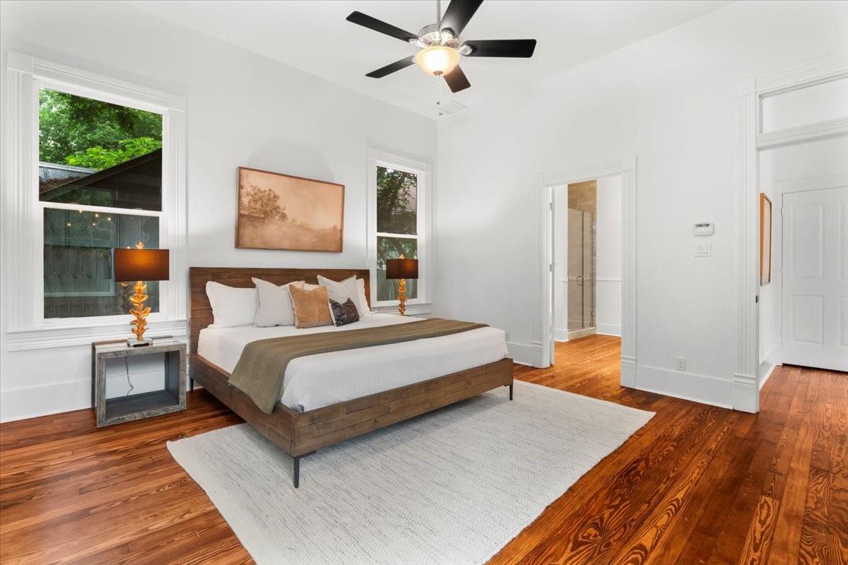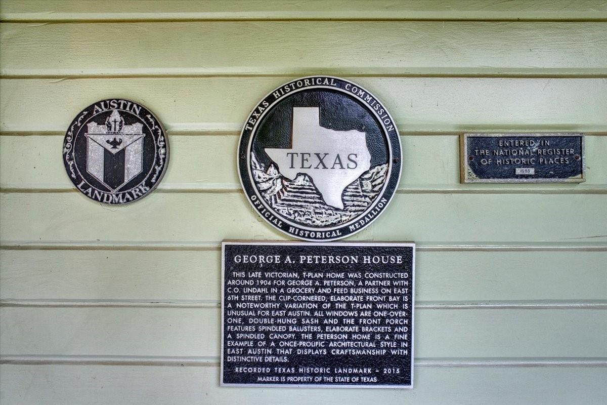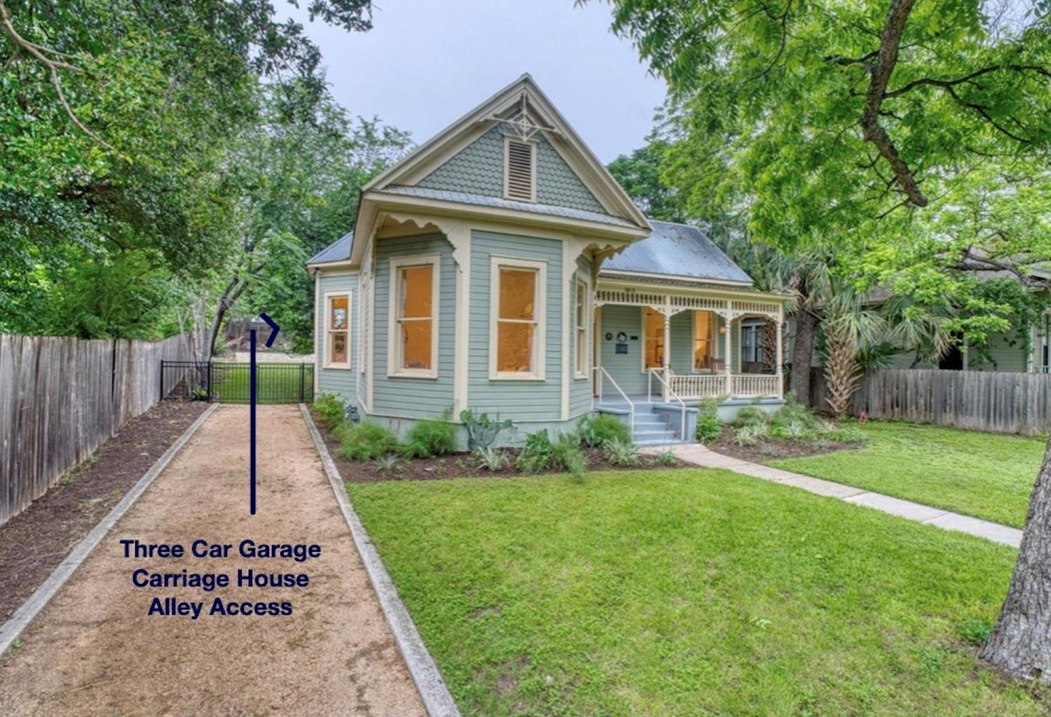 Located in the historic Robertson Hill District of East Austin stands the award-winning George A. Peterson House, a true gem that seamlessly blends Victorian charm with modern living concepts. This stunning home offers a flexible floor plan designed to cater to various family sizes and lifestyles. Upon entering the main house, you are greeted by spacious living areas, including front and back living rooms, and a Texas sized open kitchen with an over-sized floating peninsula perfect for gatherings with the family. The primary suite is a sanctuary of privacy, boasting a luxurious en-suite bathroom complete with a walk-in shower, claw-foot soaking tub, and dual sink stations. The secondary bedrooms offer privacy and separation, ideal for a growing family. Thoughtfully updated with modern amenities while preserving its elegant period features. The original pine-leaf wood floors have been beautifully restored to complement the Queen Anne mill-work found throughout the house. With 11-foot ceilings and an abundance of natural light from bay windows and walk-out French doors, the home exudes a warm and light-filled inviting atmosphere. Mindful of integrity value, plumbing and electrical have been updated where needed, including a new HVAC system. The property also includes a separate fully equipped apartment and a spacious 3-car garage, offering endless lifestyle and income opportunities. Outdoor living is a delight with a sizable .22-acre lot, a charming stone courtyard patio, and a lush green turfed lawn. Conveniently located within walking distance to downtown Austin and the vibrant entertainment districts of East Austin, this home is also zoned for renowned Mathews Elementary. The historical designation of the property also provides a substantial 70%+- annual tax savings. The George A. Peterson House embodies the perfect blend of historical elegance and modern convenience, offering a unique opportunity to live the good life in the heart of East Austin.