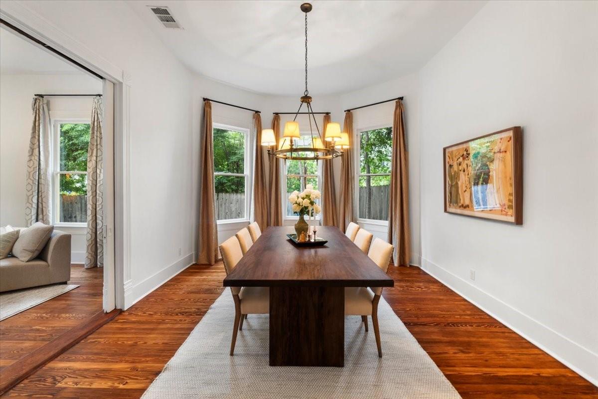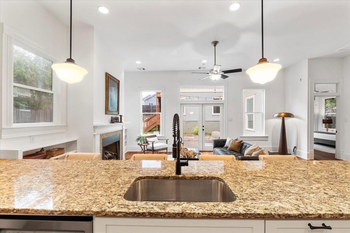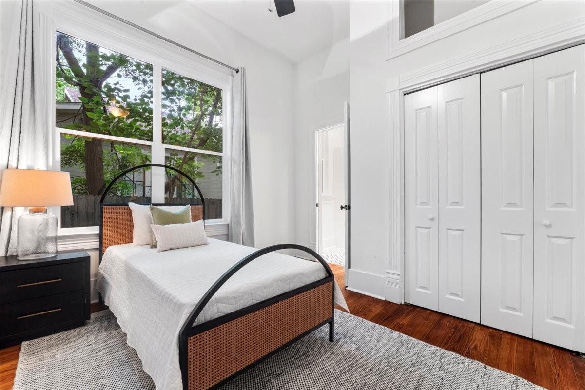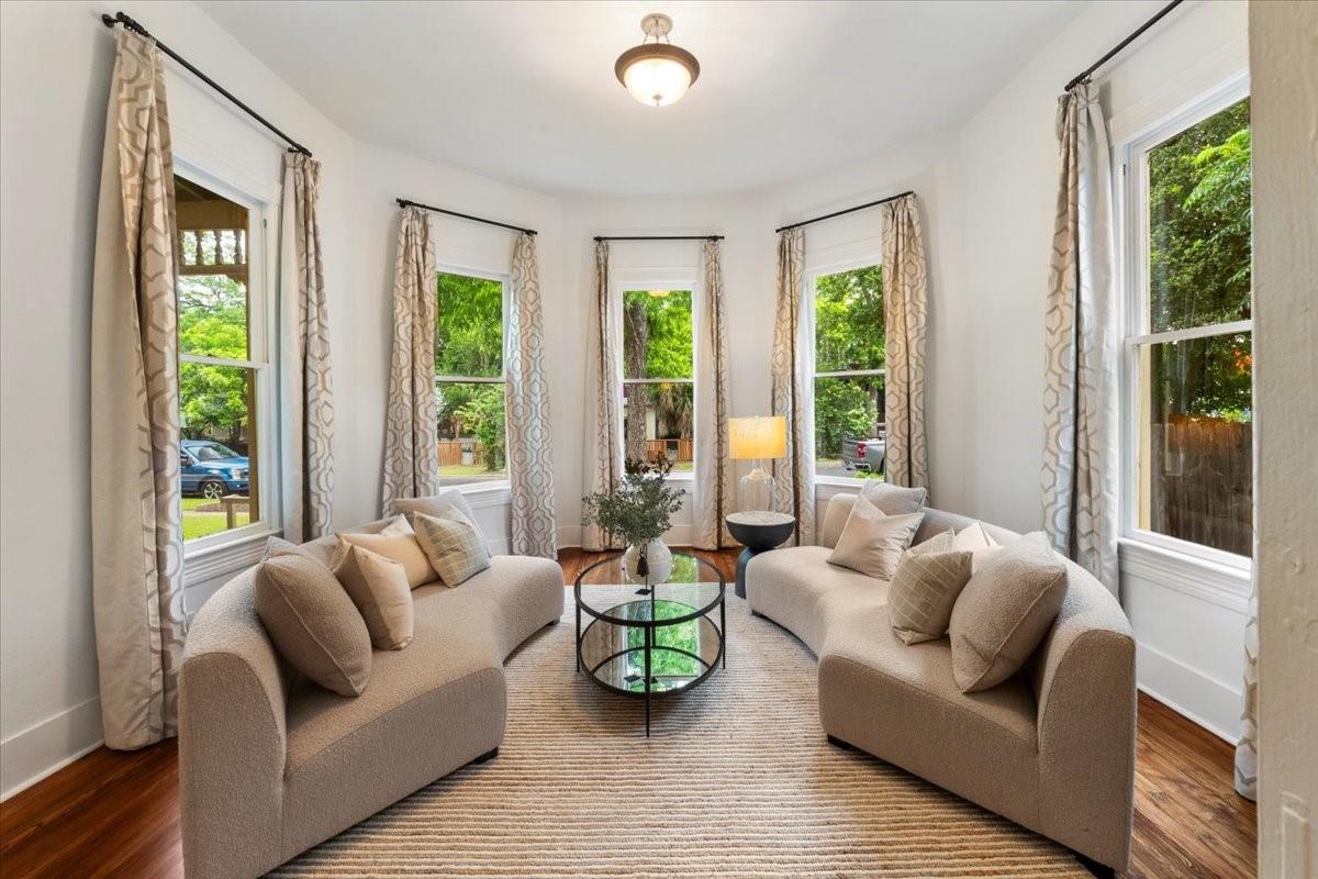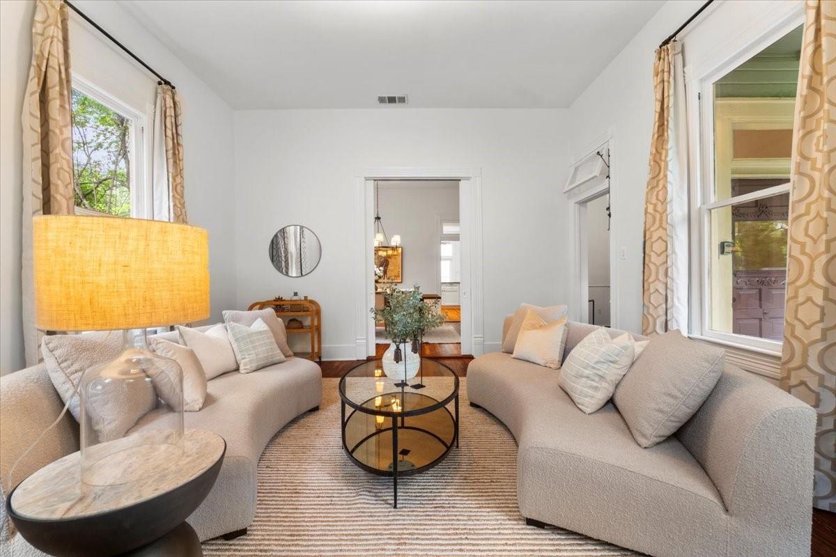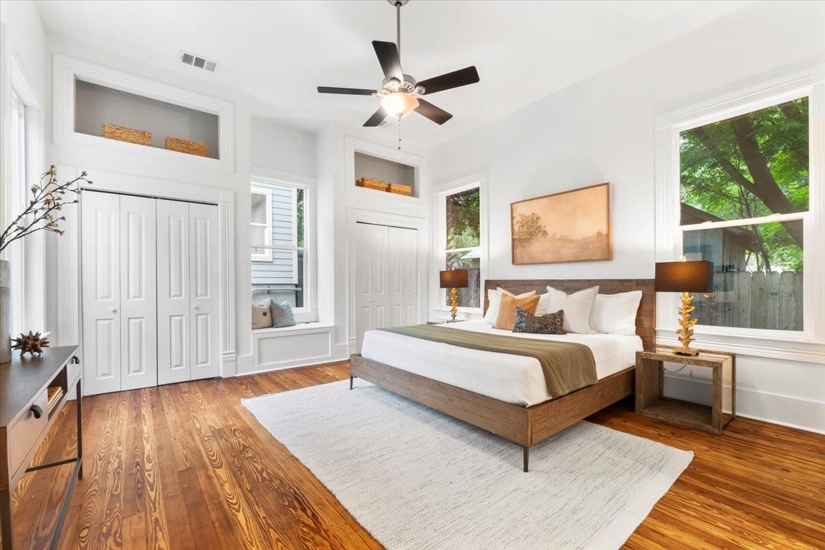 Located in the historic Robertson Hill District of East Austin stands the award-winning George A. Peterson House, a true gem that seamlessly blends Victorian charm with modern living concepts. This stunning home offers a flexible floor plan designed to cater to various family sizes and lifestyles. Upon entering the main house, you are greeted by spacious living areas, including front and back living rooms, and a Texas sized open kitchen with an over-sized floating peninsula perfect for gatherings with the family. The primary suite is a sanctuary of privacy, boasting a luxurious en-suite bathroom complete with a walk-in shower, claw-foot soaking tub, and dual sink stations. The secondary bedrooms offer privacy and separation, ideal for a growing family. Thoughtfully updated with modern amenities while preserving its elegant period features. The original pine-leaf wood floors have been beautifully restored to complement the Queen Anne mill-work found throughout the house. With 11-foot ceilings and an abundance of natural light from bay windows and walk-out French doors, the home exudes a warm and light-filled inviting atmosphere. Mindful of integrity value, plumbing and electrical have been updated where needed, including a new HVAC system. The property also includes a separate fully equipped apartment and a spacious 3-car garage, offering endless lifestyle and income opportunities. Outdoor living is a delight with a sizable .22-acre lot, a charming stone courtyard patio, and a lush green turfed lawn. Conveniently located within walking distance to downtown Austin and the vibrant entertainment districts of East Austin, this home is also zoned for renowned Mathews Elementary. The historical designation of the property also provides a substantial 70%+- annual tax savings. The George A. Peterson House embodies the perfect blend of historical elegance and modern convenience, offering a unique opportunity to live the good life in the heart of East Austin.