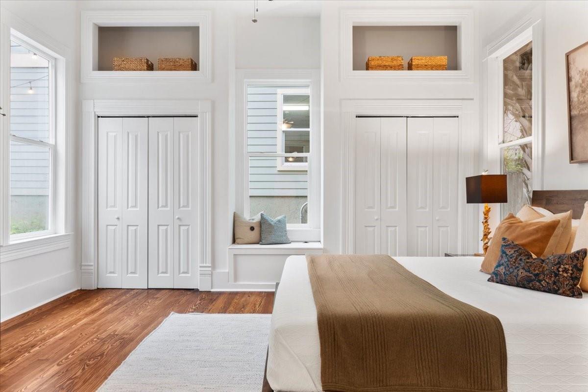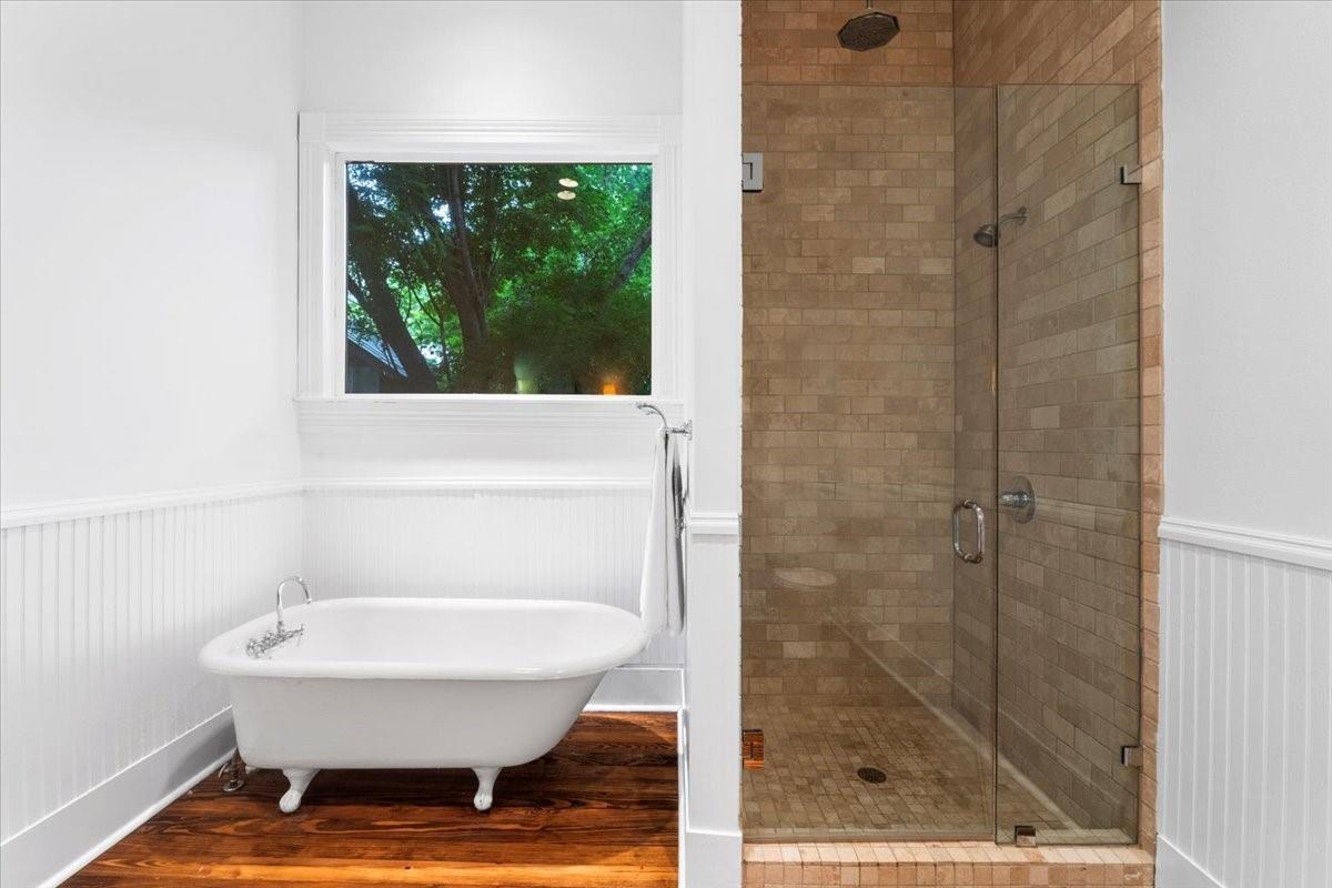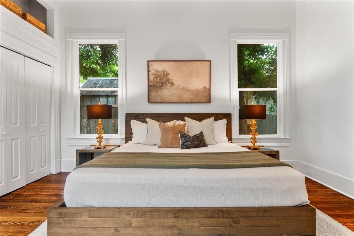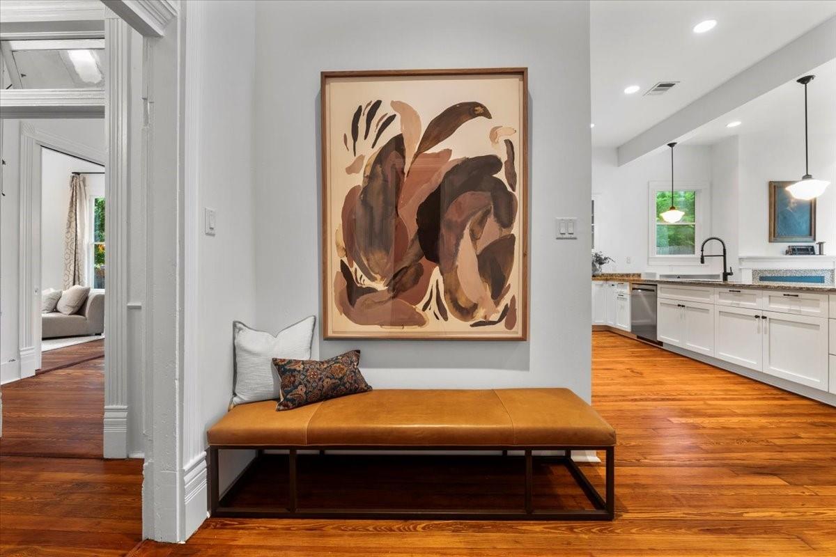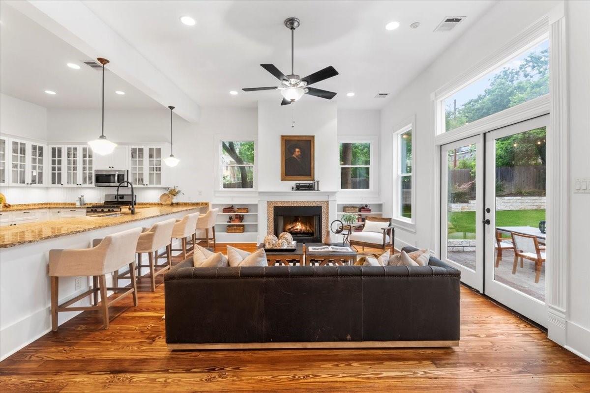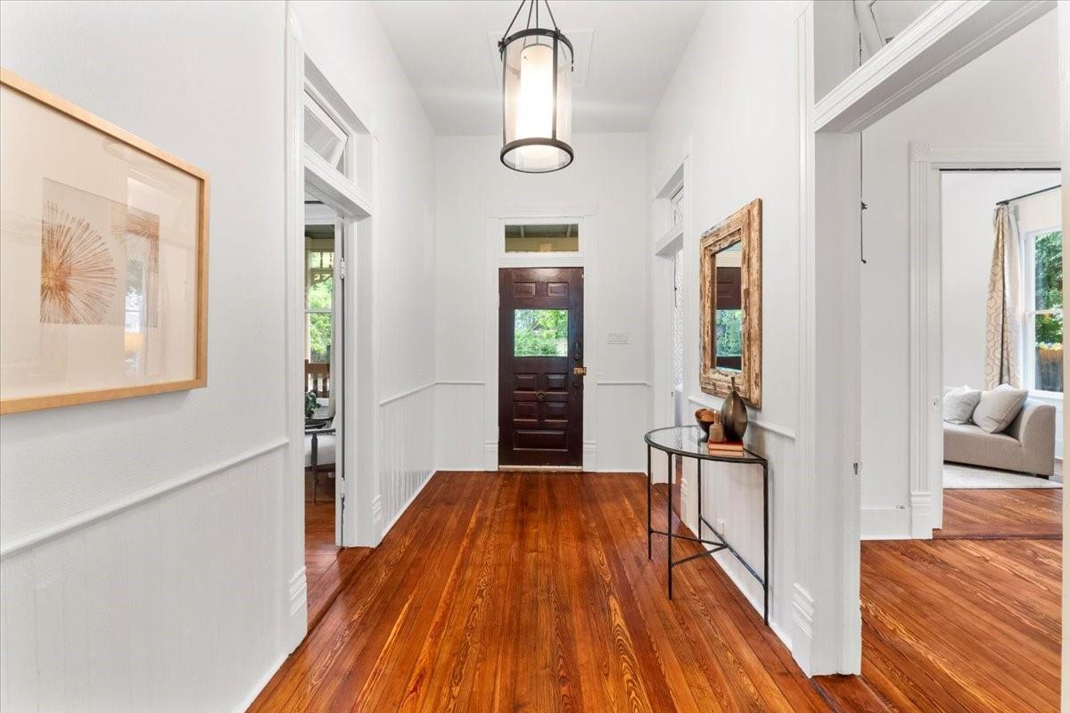 Located in the historic Robertson Hill District of East Austin stands the award-winning George A. Peterson House, a true gem that seamlessly blends Victorian charm with modern living concepts. This stunning home offers a flexible floor plan designed to cater to various family sizes and lifestyles. Upon entering the main house, you are greeted by spacious living areas, including front and back living rooms, and a Texas sized open kitchen with an over-sized floating peninsula perfect for gatherings with the family. The primary suite is a sanctuary of privacy, boasting a luxurious en-suite bathroom complete with a walk-in shower, claw-foot soaking tub, and dual sink stations. The secondary bedrooms offer privacy and separation, ideal for a growing family. Thoughtfully updated with modern amenities while preserving its elegant period features. The original pine-leaf wood floors have been beautifully restored to complement the Queen Anne mill-work found throughout the house. With 11-foot ceilings and an abundance of natural light from bay windows and walk-out French doors, the home exudes a warm and light-filled inviting atmosphere. Mindful of integrity value, plumbing and electrical have been updated where needed, including a new HVAC system. The property also includes a separate fully equipped apartment and a spacious 3-car garage, offering endless lifestyle and income opportunities. Outdoor living is a delight with a sizable .22-acre lot, a charming stone courtyard patio, and a lush green turfed lawn. Conveniently located within walking distance to downtown Austin and the vibrant entertainment districts of East Austin, this home is also zoned for renowned Mathews Elementary. The historical designation of the property also provides a substantial 70%+- annual tax savings. The George A. Peterson House embodies the perfect blend of historical elegance and modern convenience, offering a unique opportunity to live the good life in the heart of East Austin.