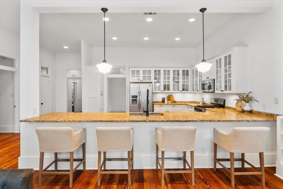 | Interior Features | Two Primary Baths, Two Primary Suties, Bookcases, Breakfast Bar, Ceiling Fan(s), High Ceilings, Granite Counters, Crown Molding, Electric Dryer Hookup, Entrance Foyer, Multiple Living Areas, No Interior Steps, Open Floorplan, Primary Bedroom on Main, Recessed Lighting, Soaking Tub, Two Primary Closets, Washer Hookup, See Remarks | |