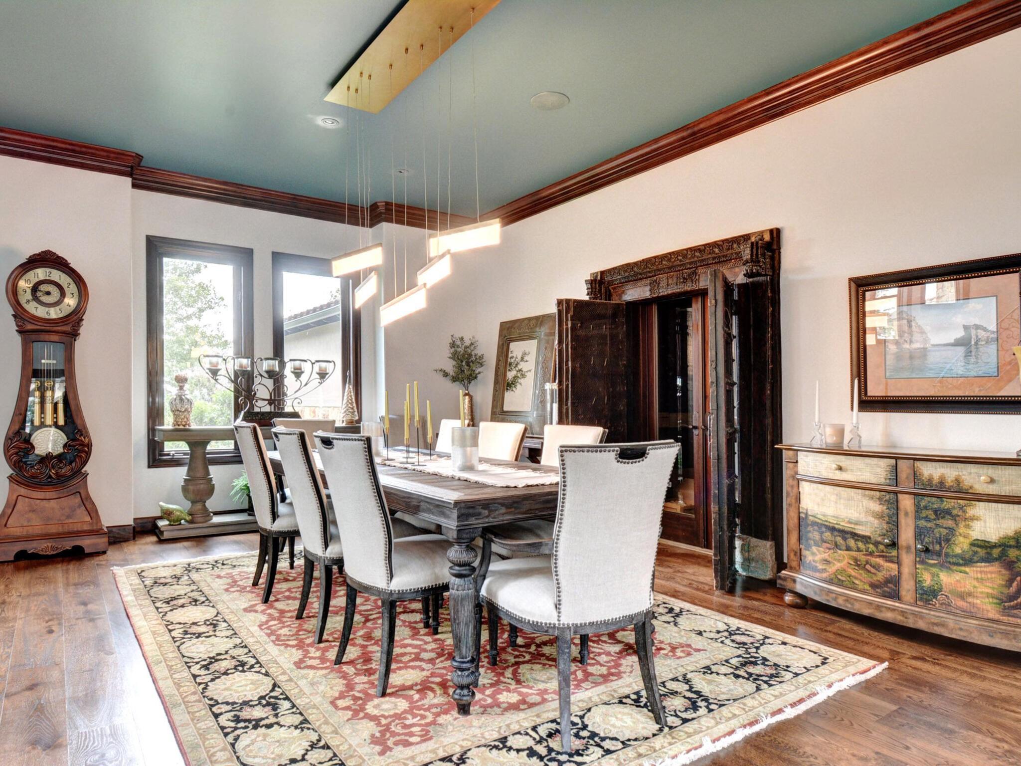 | Interior Features | Bar, Bookcases, Breakfast Bar, Ceiling Fan(s), Beamed Ceilings, Cathedral Ceiling(s), High Ceilings, Central Vacuum, Chandelier, Granite Counters, Crown Molding, Double Vanity, Electric Dryer Hookup, French Doors, Kitchen Island, Pantry, Primary Bedroom on Main, Recessed Lighting, Soaking Tub, Two Primary Closets | |
