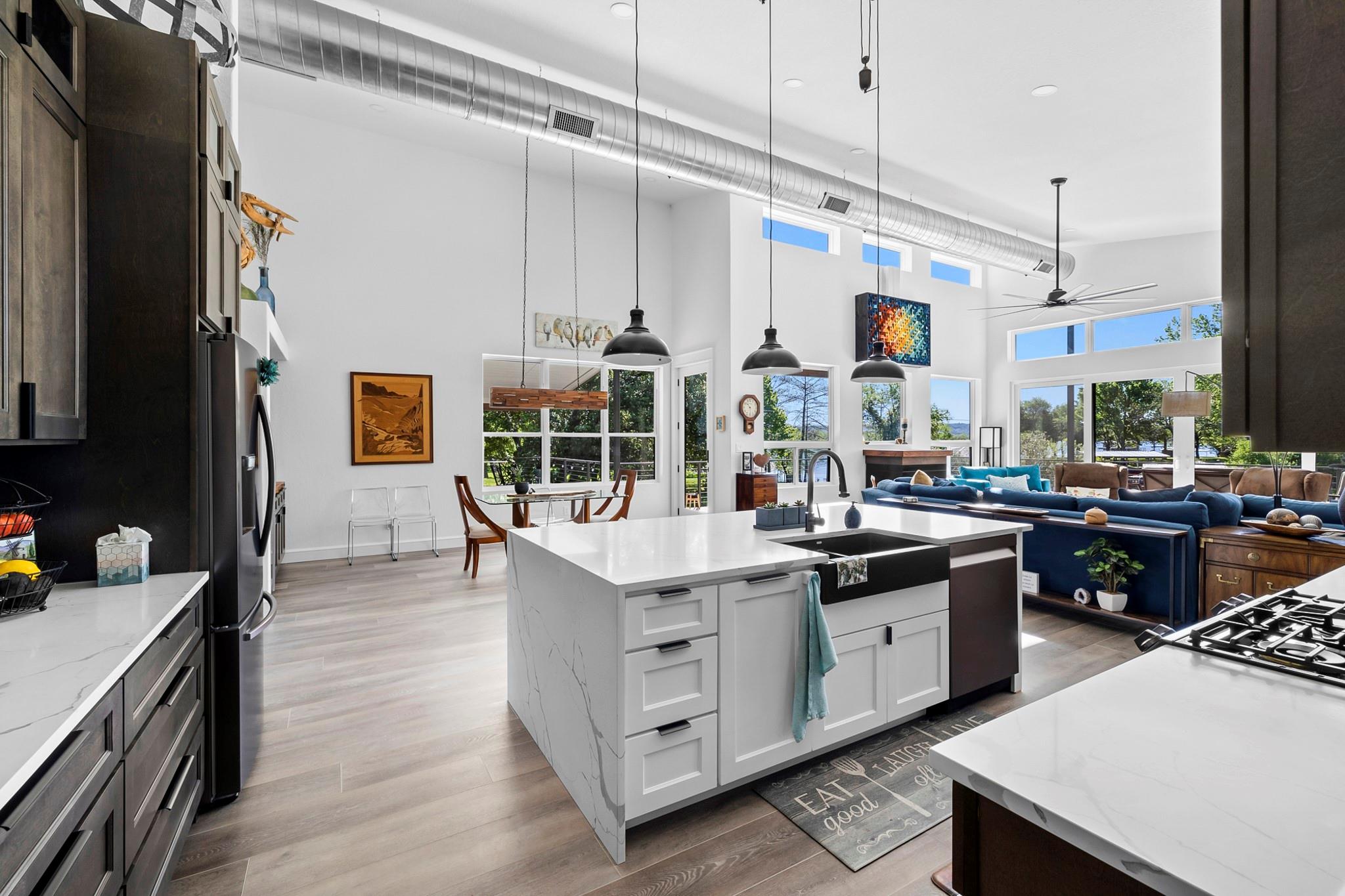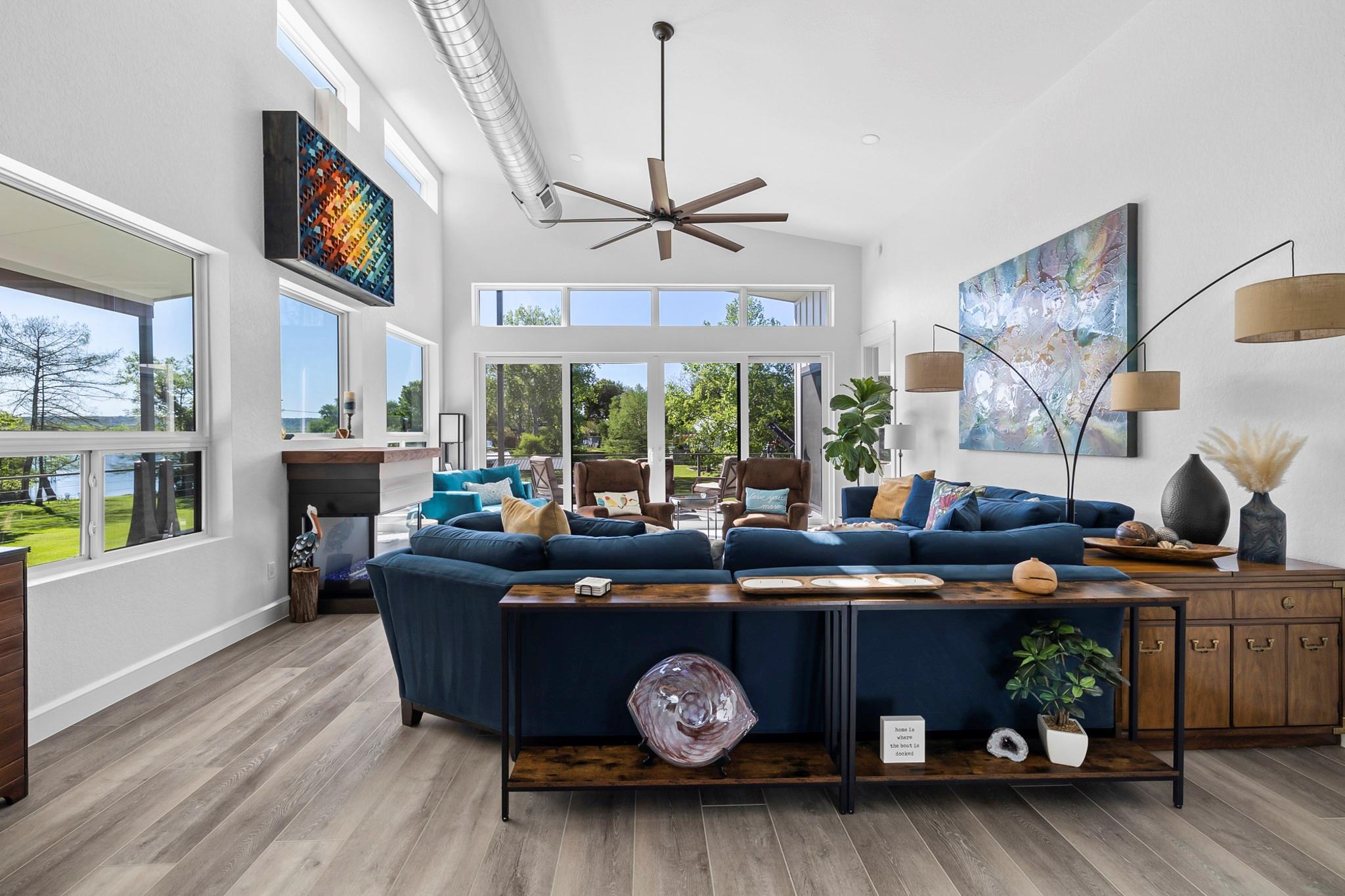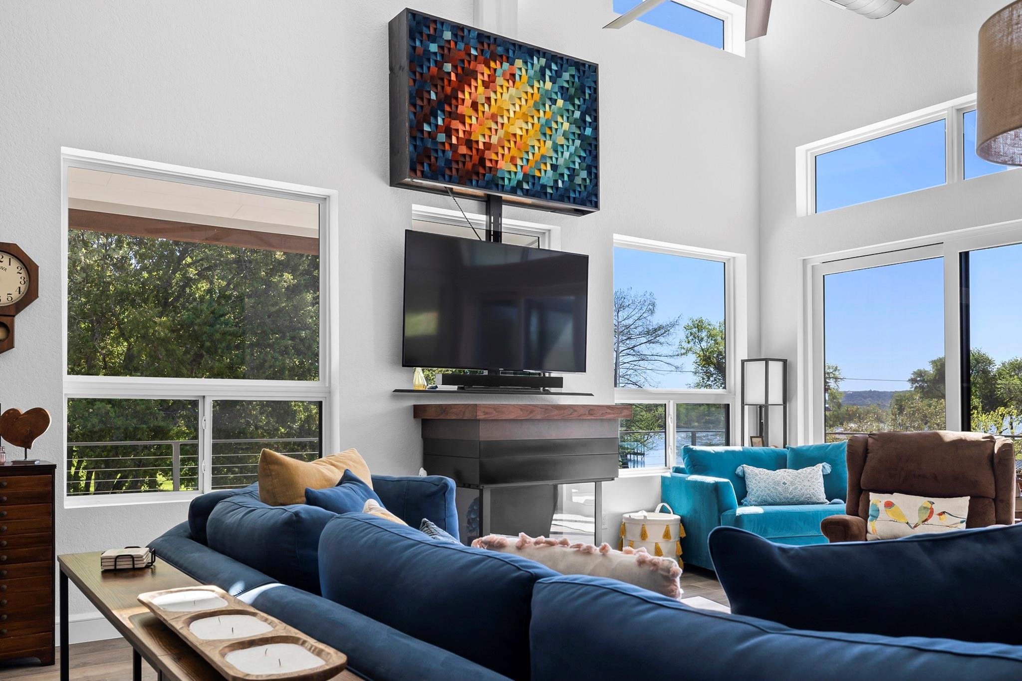 Experience the epitome of luxury lakefront living with this modern masterpiece on the sought-after shores of Inks Lake. This stunning 5,000+ sq ft home features over 2,500 sq ft of main-level living and an additional 2,500+ sq ft basement, which includes ample storage and space for an incredible game room and so much more. This 3-bedroom, 3-bathroom home offers a perfect blend of contemporary design and serene lakefront charm, presenting a unique opportunity to own a piece of Inks Lake. To make this turnkey property even more irresistible, the seller is willing to sell the home furnished and include a pontoon boat with an accepted offer. From the heated floors in the master suite to the sleek modern finishes throughout, every detail of this home exudes luxury and comfort. A separate casita off the main house provides the ideal retreat for family and friends, ensuring privacy and comfort during their stay. With 116 feet of prime waterfront, you can enjoy endless hours of fun, whether soaking in the water or taking the boat out for a spin on the lake. The entire property is fully fenced, making it a safe haven for pets to run free and explore. Spacious porches offer the perfect spot to start your day with a cup of coffee, watching the sunrise over the lake. This home is not only a personal retreat but also a lucrative investment opportunity with its potential for short-term rentals on platforms like Airbnb. This turnkey property on Inks Lake offers the perfect blend of modern luxury and lakeside tranquility. Whether you're looking for a serene retreat, a family getaway, or an investment opportunity, this home has it all. Don’t miss the chance to make this dream home yours!