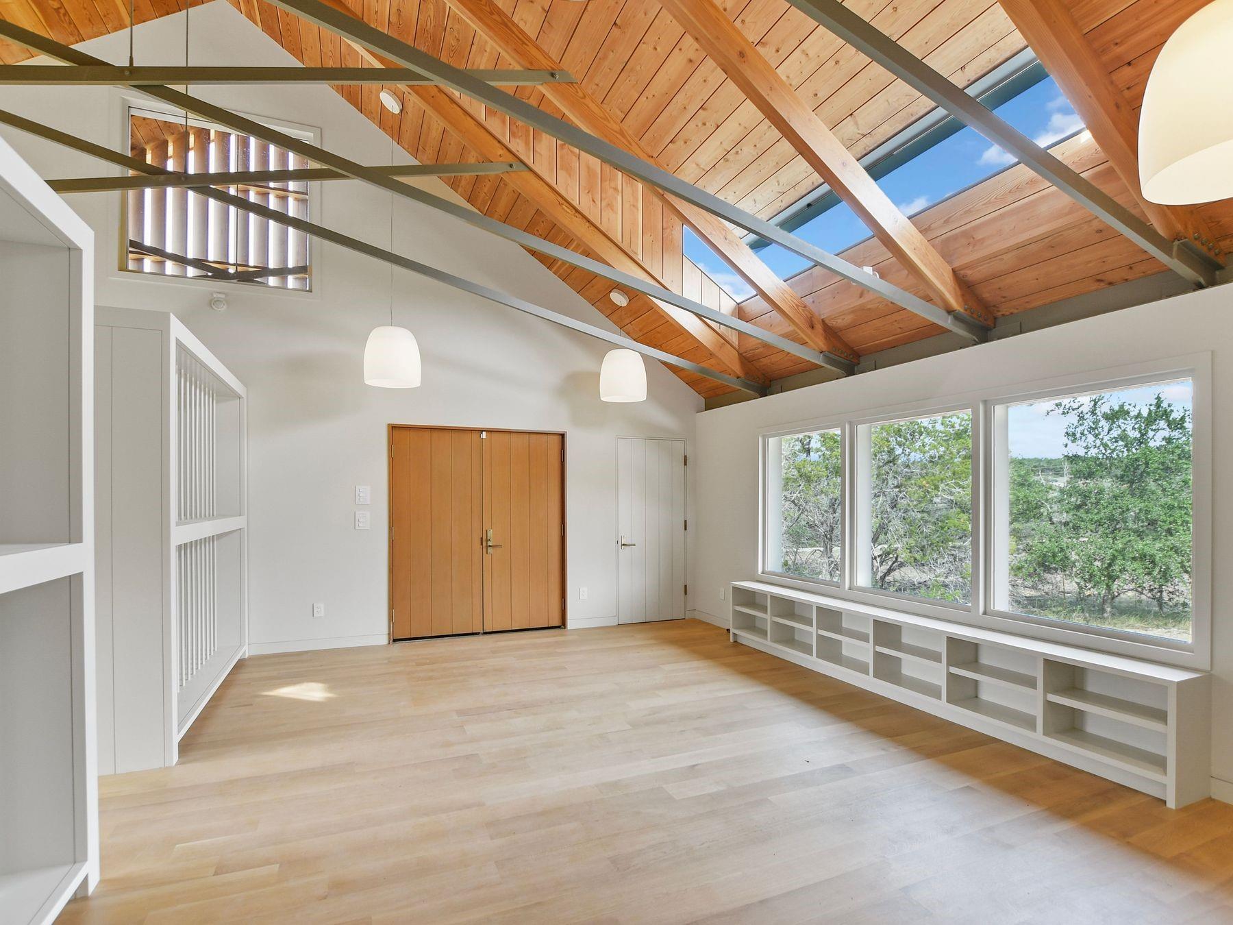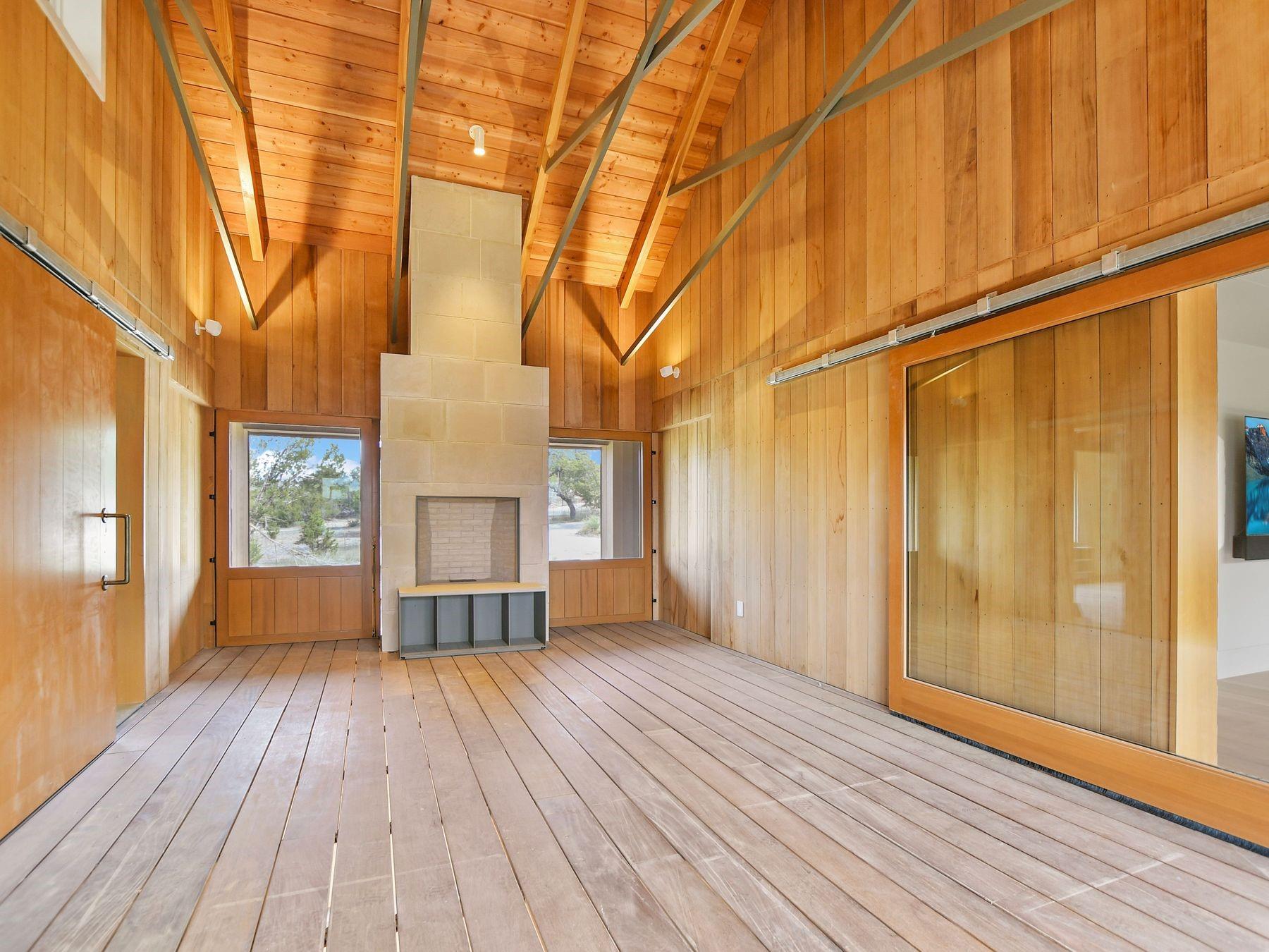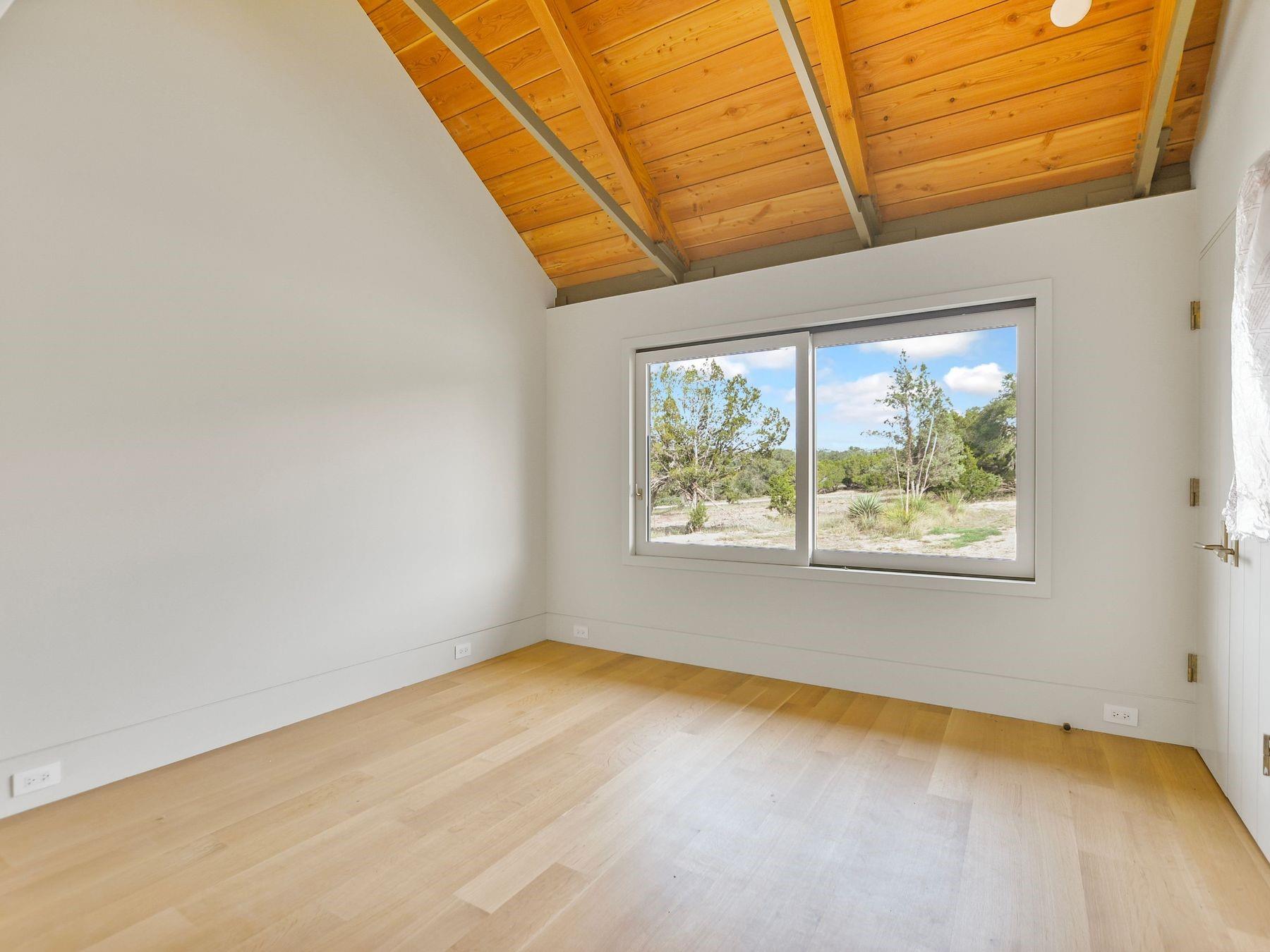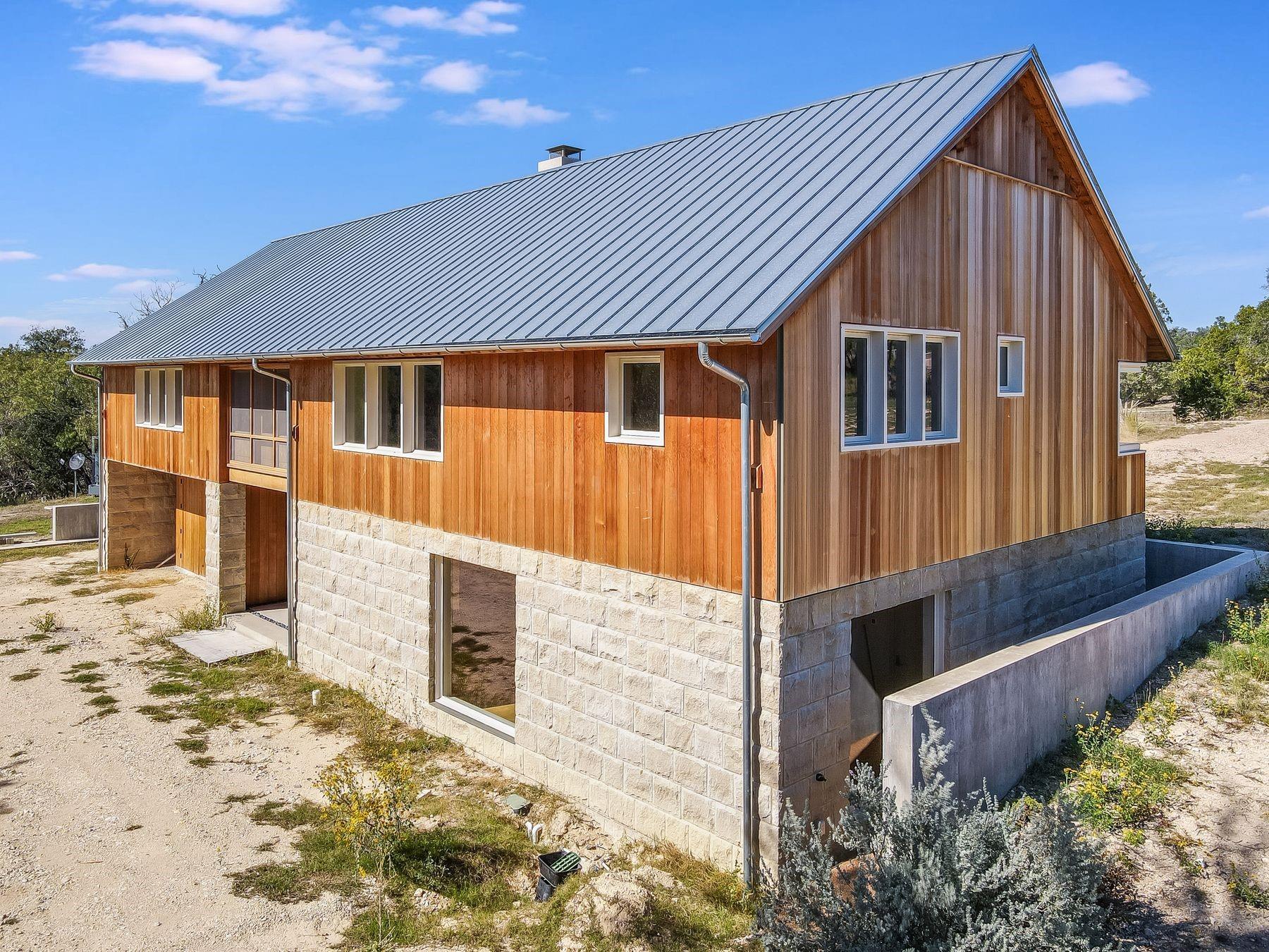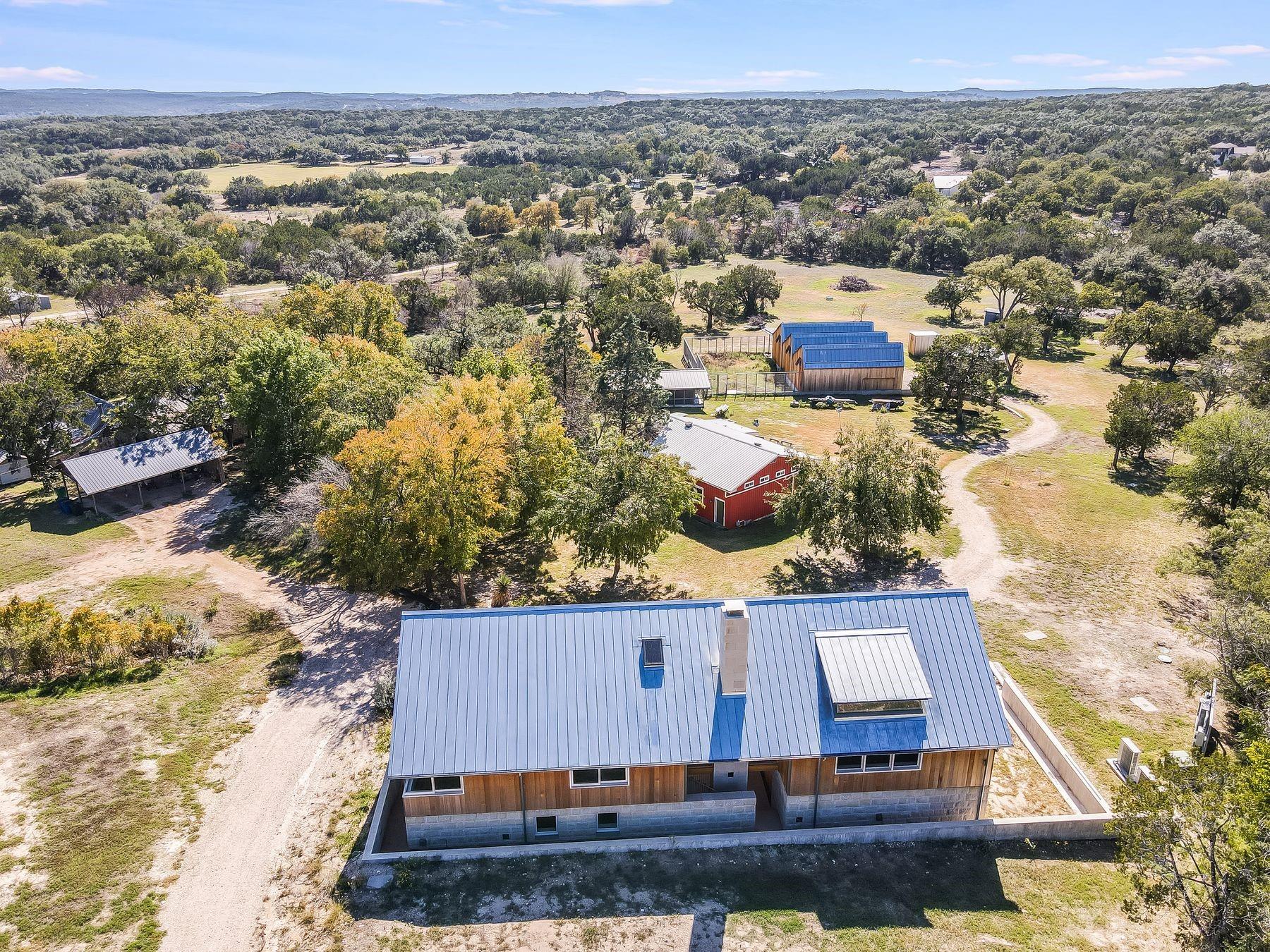 Private, sustainable, and unique are all words that describe this Texas Hill Country property located 45 minutes west of Austin on 9 acres. Three new construction includes an artist's studio with 3 bedrooms and 3 baths and beautiful gourmet kitchen plus a screened porch with fireplace that provides the perfect space for dining al fresco. The property is solar powered by 144 solar panels and 10 Tesla Power Wall batteries. Two water systems provide abundant water. The rain water collection system has a 30,000 gallon storage tank and is primarily for the residence. The well has a 40,000 gallon storage tank and is primarily for irrigation. Both storage tanks have a 4 inch valve compatible with local fire departments. Water is filtered and treated with UV light. The state of the art chicken coop has its own rain water collection system with filtration and UV treatment system and provides the perfect setting for fresh eggs.. There is also storage for eggs and a sink for washing eggs. Built with clear grain cedar siding and a standing seam metal roof, the hen house has everything a chicken could ask. A fenced garden space is adjacent. The huge workshop designed for ventilation and light with large skylights and high ceilings. All new structures designed by nationally know architect, Arthur Anderson. The "red house" has a basic kitchen and one bedroom and one bath. The original farmhouse is still on the property. Plenty of room on this 9 acres to add the house of your dreams. Truly a special property.