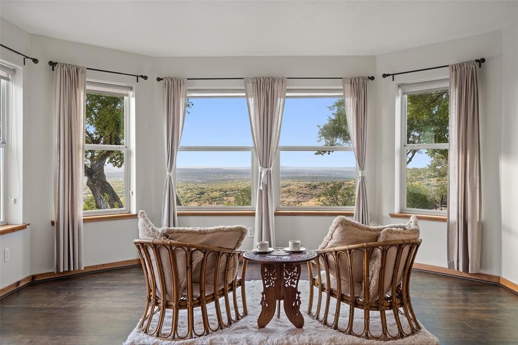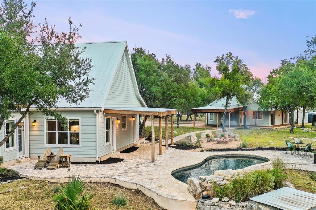 Transcendent Hill Country Views from this exceptionally private and gated 25+ acre Dripping Springs Estate. Comprised of an inviting 2600+ SF main home that captures the remarkable long-range vistas and rocked poolscape along with a fully appointed guest apartment attached to the three-car garage and 1800+/- SF insulated metal building complete with heated and cooled office space. This ranchette lives much larger than its 25 acre footprint in light of the elevated and relatively flat topography but remains easy to maintain. Studded with grand oak trees throughout and a serene habitat for whitetail and songbirds, the land is equally as stunning as the view. A high fenced garden sits behind the guest apartment and is ready to be planted. Efficiently located near Austin and San Antonio, just 15 minutes to local shops and restaurants. Rainwater catchment and well currently in place, Wildlife exempt allowing for exceptionally low taxes, outside of city limits, and lightly restricted.