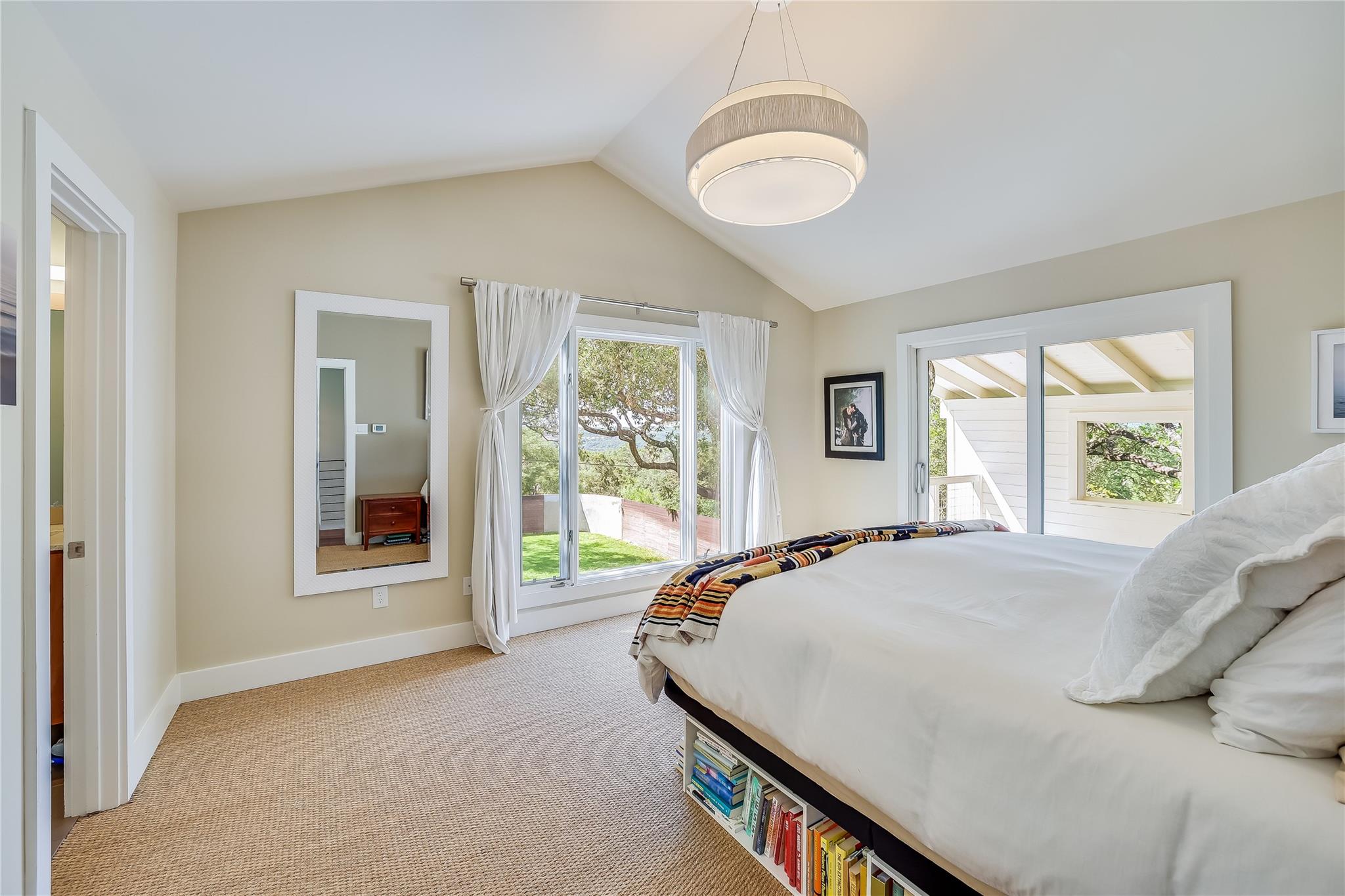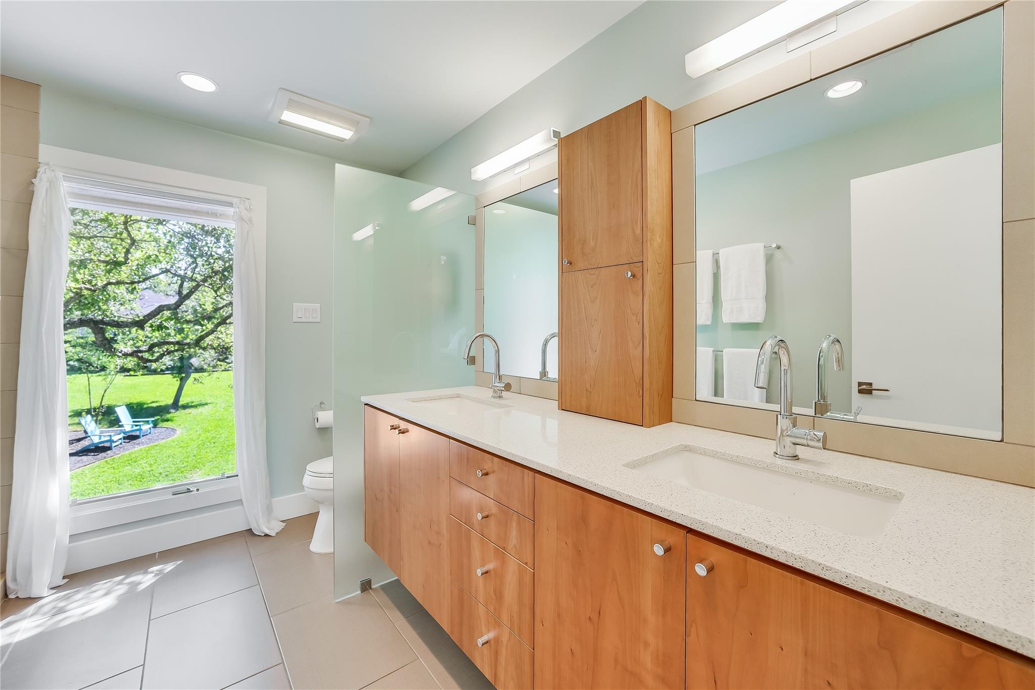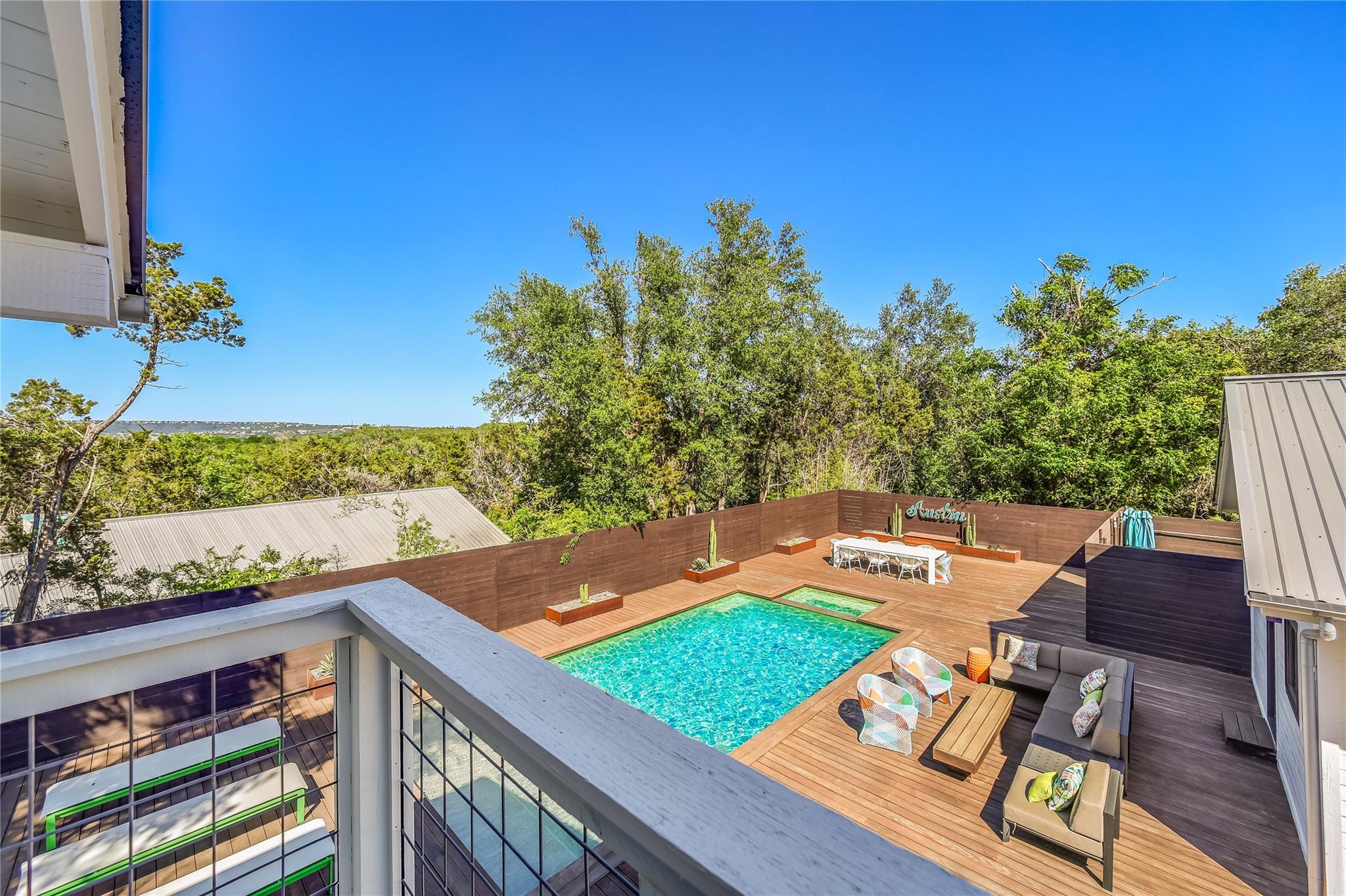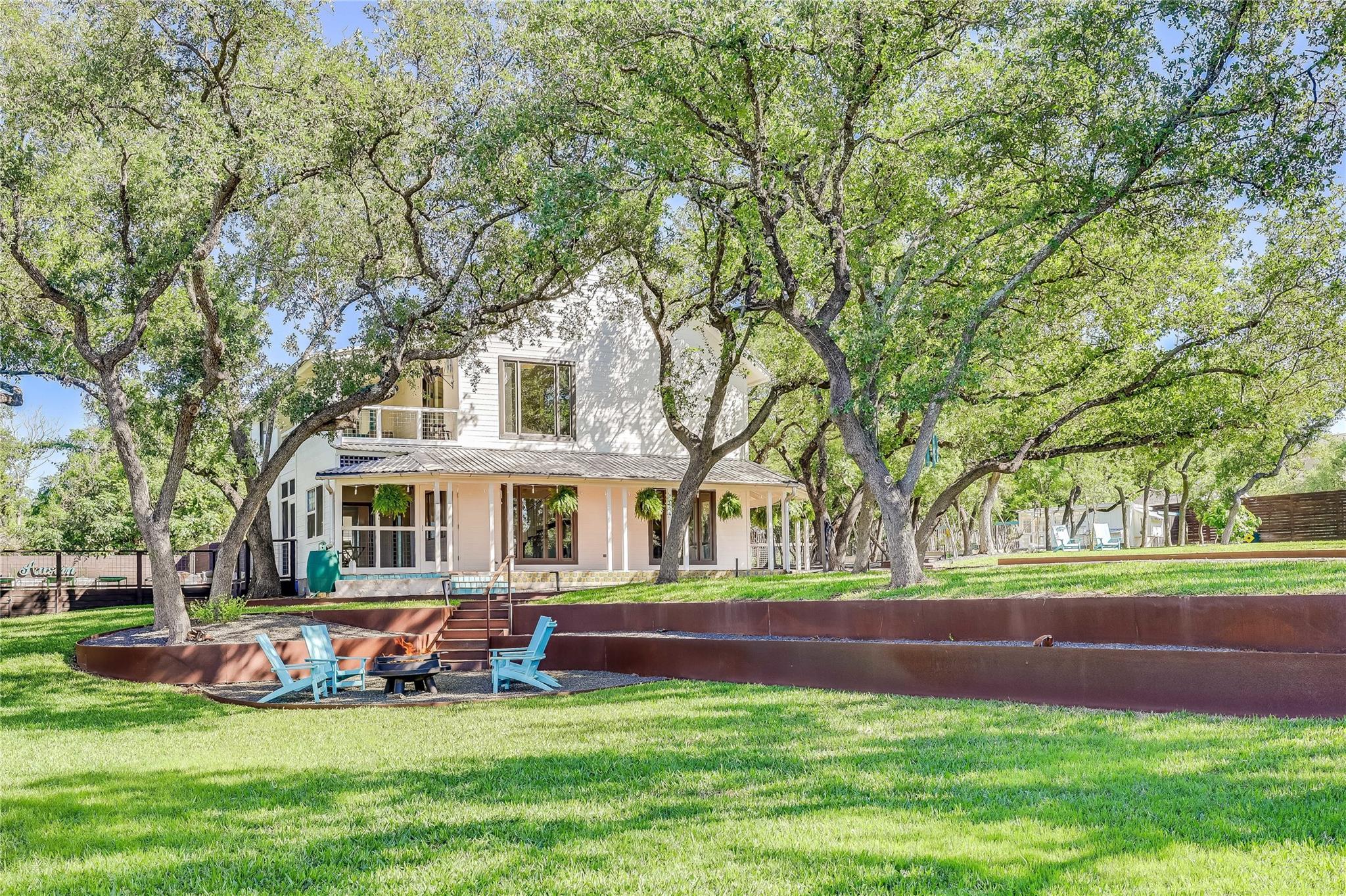 Nestled in the hills of West Austin, this exceptional property offers a serene retreat and refined living. Spanning 0.89 acres across two meticulous lots, this estate presents an unparalleled offering, including separate guest accommodations. The home, a masterpiece of thoughtful design, marries mid-century modern interiors with the charm and warmth of a farmhouse. Mesquite flooring seamlessly merges with custom wood cabinetry, creating an ambiance of organic warmth highlighted by a glass and steel accented staircase. Expansive windows provide an abundance of natural light throughout. The well-appointed kitchen features a professional-grade Wolf range, Thermador oven, Miele dishwasher, and Sub-Zero refrigerator. The kitchen island and breakfast bar open to the living area and dining space, creating a perfect gathering spot. The home's functional elegance extends to a downstairs office, ideal for the discerning professional. Two large covered patios offer additional outdoor living areas, with the primary bedroom boasting its own second-level patio. Both patios could easily be enclosed to add additional square footage. The estate's grounds are a testament to meticulous care and design. A path of Ipe wood decking leads to four raised garden beds, a charming garden shed, and a flat, manicured lawn. Nestled into an amphitheater-like pocket of the property, a fire pit adds a touch of enchantment to the evenings. The highlight of the property’s outdoor space is the crystal-clear pool and heated spa, complemented by an Ipe wood deck and a discreet outdoor shower. The detached guest accommodations provide the perfect space for long-term guests, multi-generational living, a home office, studio, or a pool house ideal for entertaining. This sanctuary is located within the coveted EANES ISD, adding to its desirability. Its proximity to downtown and Lake Austin offers both convenience and a connection to nature's beauty.