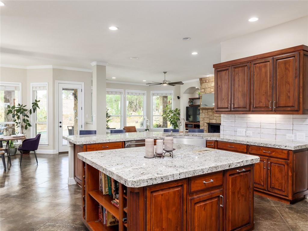 | Interior Features | Breakfast Bar, Ceiling Fan(s), Tray Ceiling(s), Granite Counters, Crown Molding, Electric Dryer Hookup, Entrance Foyer, French Doors, In-Law Floorplan, Kitchen Island, Multiple Dining Areas, Multiple Living Areas, Open Floorplan, Pantry, Primary Bedroom on Main, Recessed Lighting, Soaking Tub, Storage, Walk-In Closet(s), Washer Hookup, Wired for Sound | |