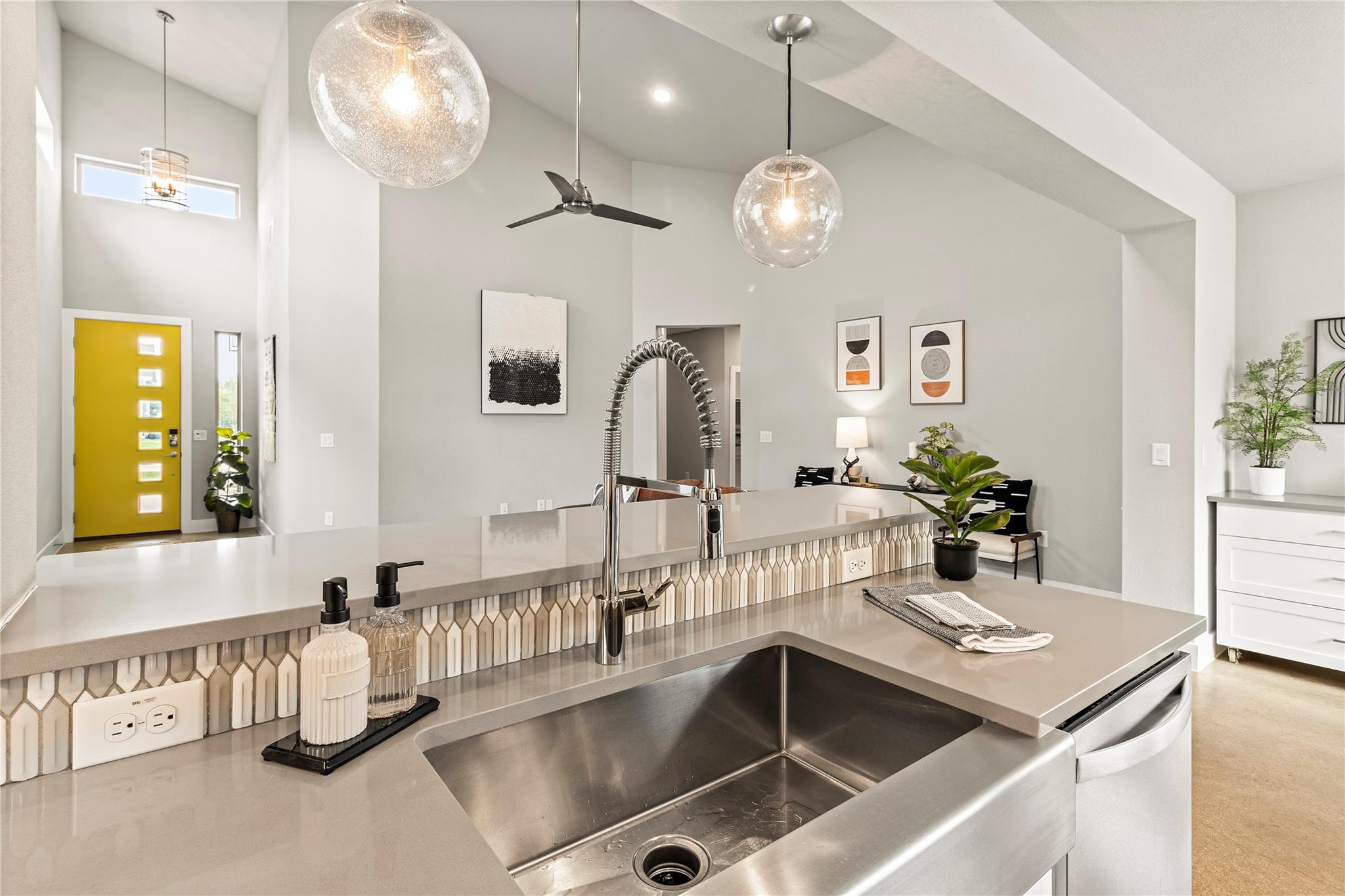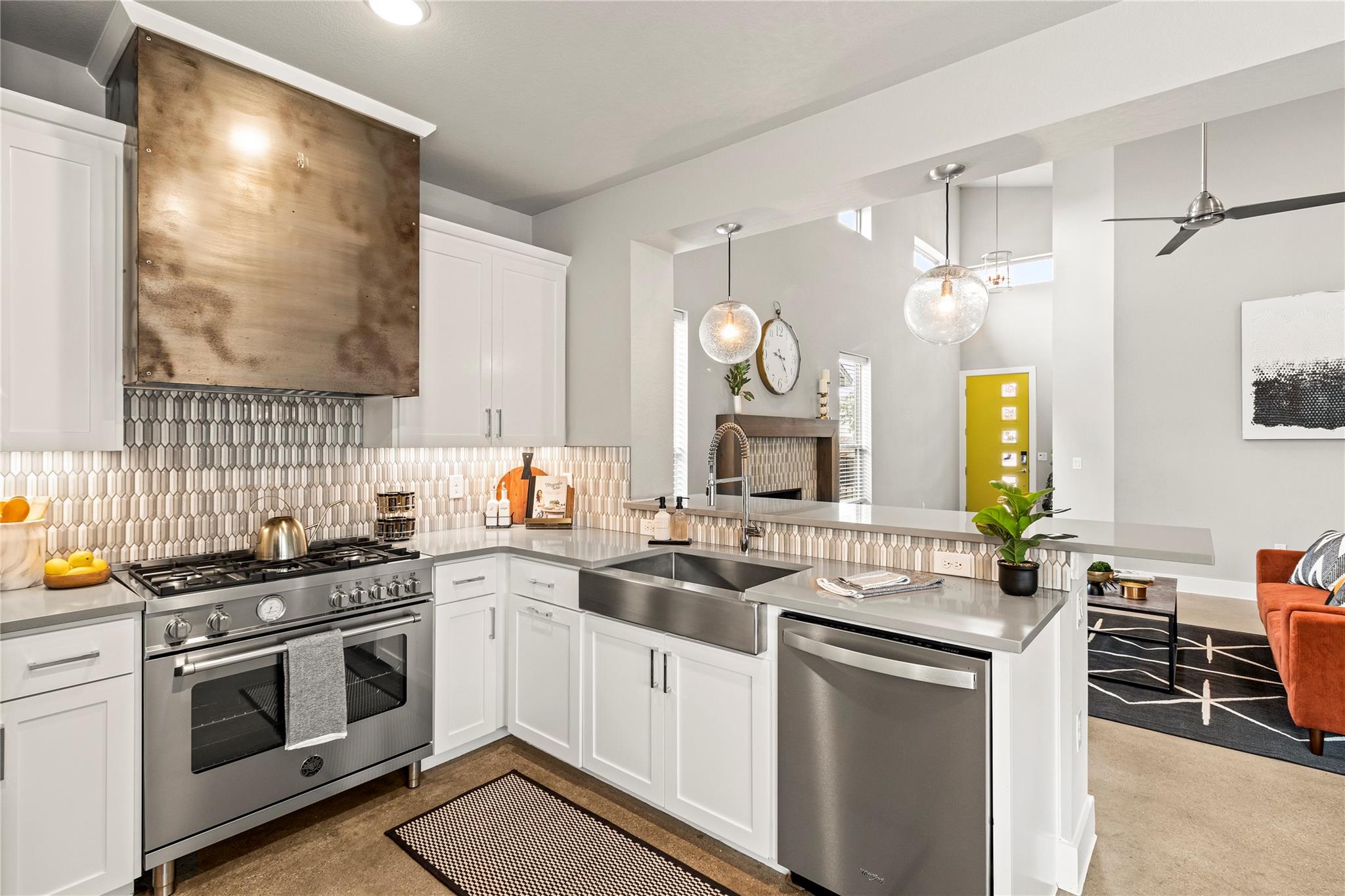 Welcome to your beautiful contemporary-modern inspired home! This single story home boasts 4 beds and 3 full baths with soaring angled ceilings in all the right places. Built in 2019 and located in the coveted Rosemont neighborhood, this meticulously designed residence offers a fusion of sleek aesthetics and functional comfort. Step inside to discover an open-concept layout adorned with clean lines, minimalist finishes, and abundant natural light, creating an inviting atmosphere for both relaxation and entertainment. The gourmet eat-in kitchen serves as the heart of the home, featuring state-of-the-art appliances including a chef's dream Bertazzoni range, premium fixtures, pantry, and a sleek breakfast bar perfect for culinary endeavors and social gatherings. When it's time to wind down, enjoy not one but two primary bedrooms as well as two additional bedrooms, one of which can serve perfectly as an office, guest room, or bonus room! The main primary suite offers luxurious amenities including two walk-in closets and a spa-like en-suite bathroom, providing unparalleled comfort and privacy. Outside, a meticulously landscaped yard offers a serene retreat, ideal for al fresco dining or soaking in the sunshine. With its prime location, this home provides easy access to top-rated Liberty Hill ISD schools, shopping, dining, and recreational amenities, making it the perfect blend of style and convenience. Experience contemporary living at its finest – schedule your showing today and make this exquisite residence your own!