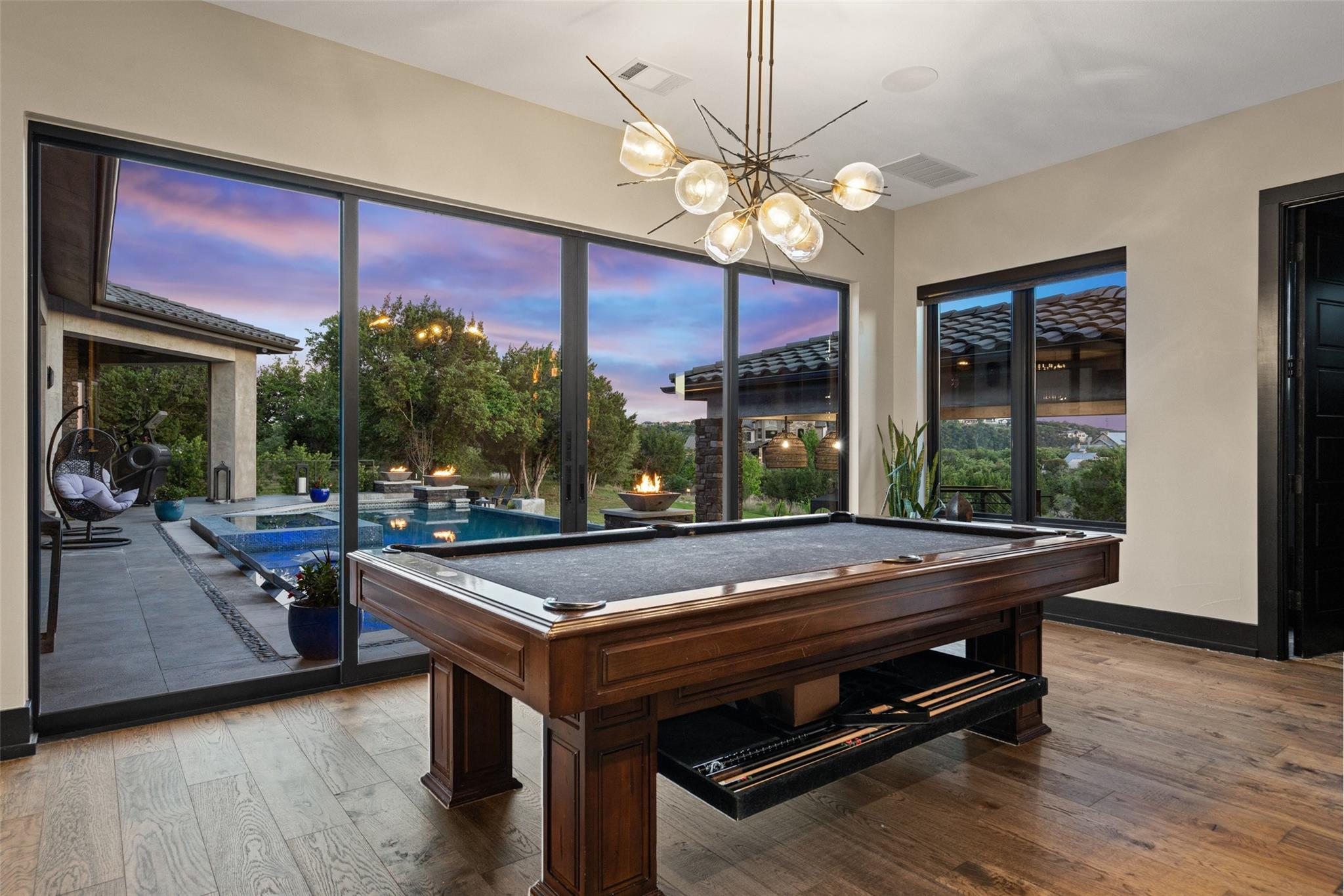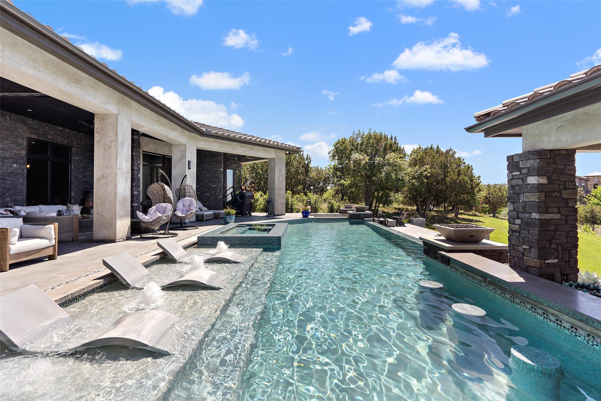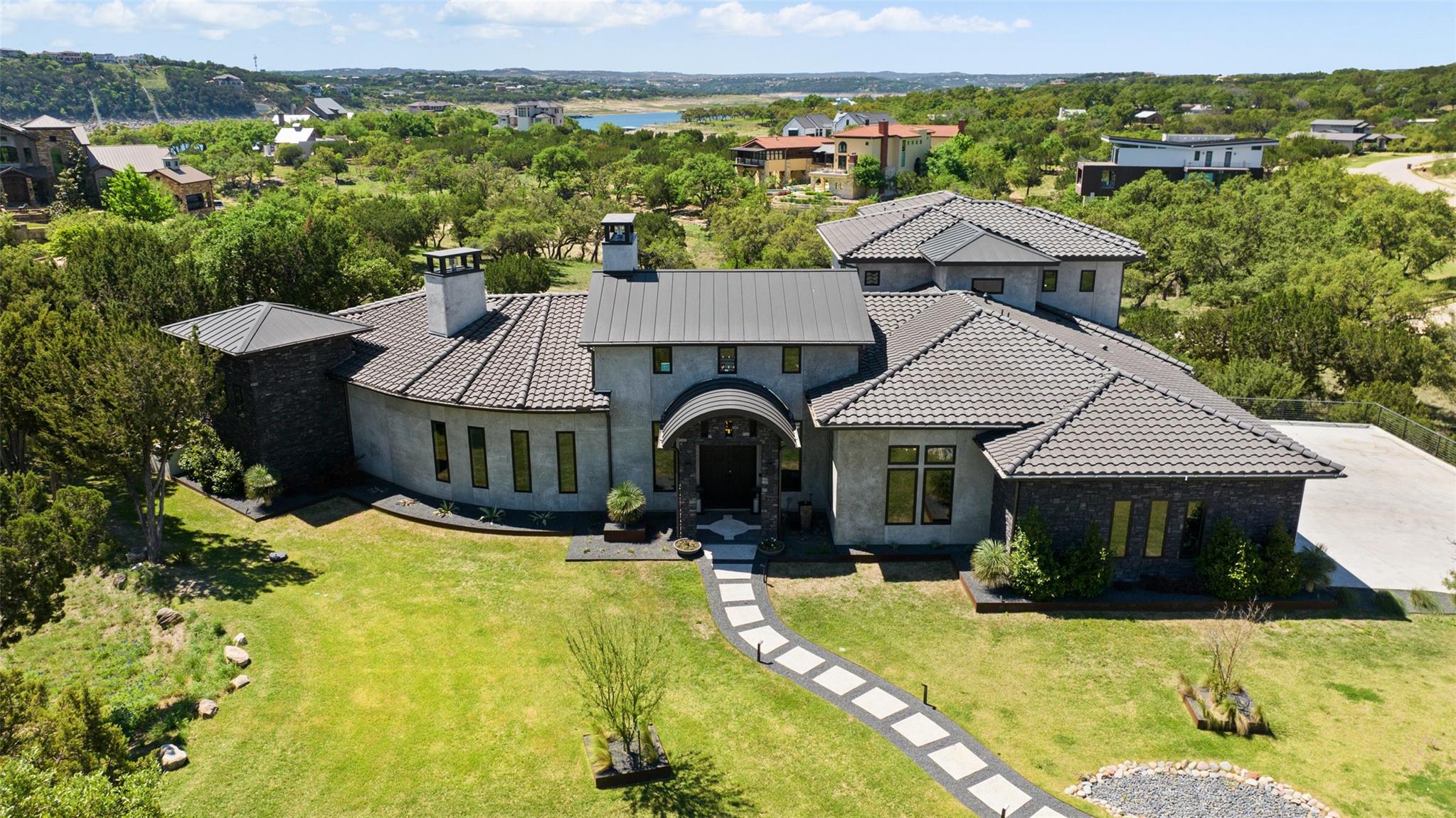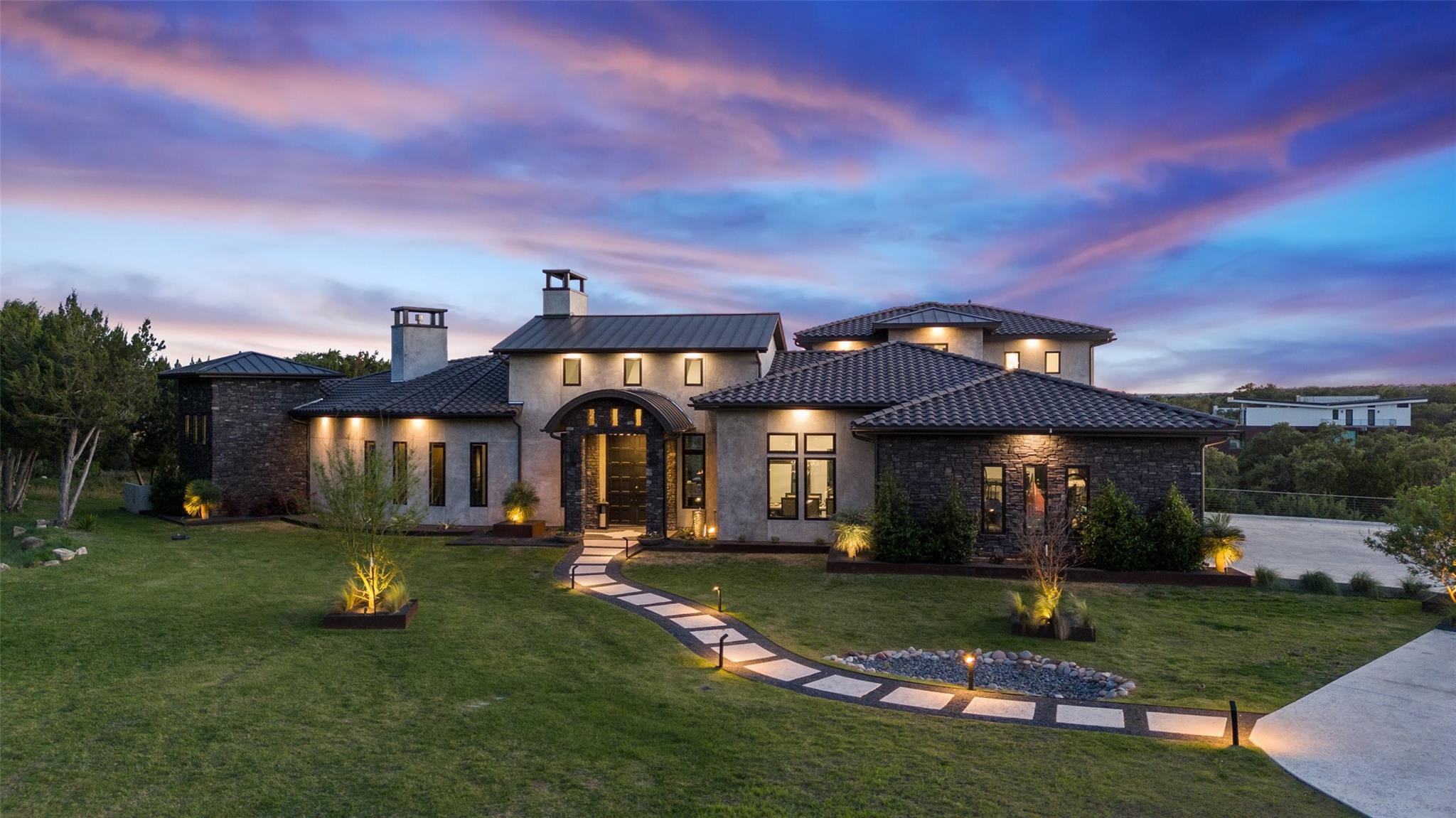 Nestled on a serene cul-de-sac, this stunning Modern Venetian residence, completed in 2021, seamlessly blends timeless architecture w/ contemporary charm. The home is situated on 1.13 acres, with a southwest orientation that captures the hill country panoramas and glimpses of Lake Travis, while graciously welcoming southern breezes. Meticulously crafted, the residence strikes a harmonious balance between seclusion and sweeping vistas. Its intelligently curated layout accentuates al fresco living, with the great room and gourmet kitchen effortlessly spilling onto an expansive veranda & poolside haven, perfect for social gatherings or tranquil moments. The owner's suite, a sanctuary of comfort, features private veranda access, a cozy fireplace, and a lavish ensuite bath w/ ample natural light. Adjacent, a spacious study provides a stylish and tranquil workspace. The recreational wing overlooks the outdoor oasis, offering entertainment options aplenty, from the poolside bar and game room to the media center and stylish wet bar. Completing the home, a 3.5-car garage with ample storage, a convenient laundry/mudroom with pet access, and a second level dedicated to guest accommodations, each with private baths and captivating views. Located in the prestigious gated Reserve at Lake Travis, residents enjoy access to the acclaimed Lake Travis ISD schools, coupled with an enviable locale a mere 15 miles away from the Hill Country Galleria, renowned for its upscale boutiques, culinary delights, and convenience to Whole Foods market. For the boater, a state-of-the-art marina resides within the community. Resort-style opulence, this residence epitomizes both luxury & seclusion, offering an idyllic retreat in an unparalleled setting. The Reserve is an active luxury waterfront community nestled among 311 acres of hill country beauty, surrounded by miles of Lake Travis shoreline w/ an in-neighborhood marina. *Seller will convey boat slip with the sale, boat also available for sale*