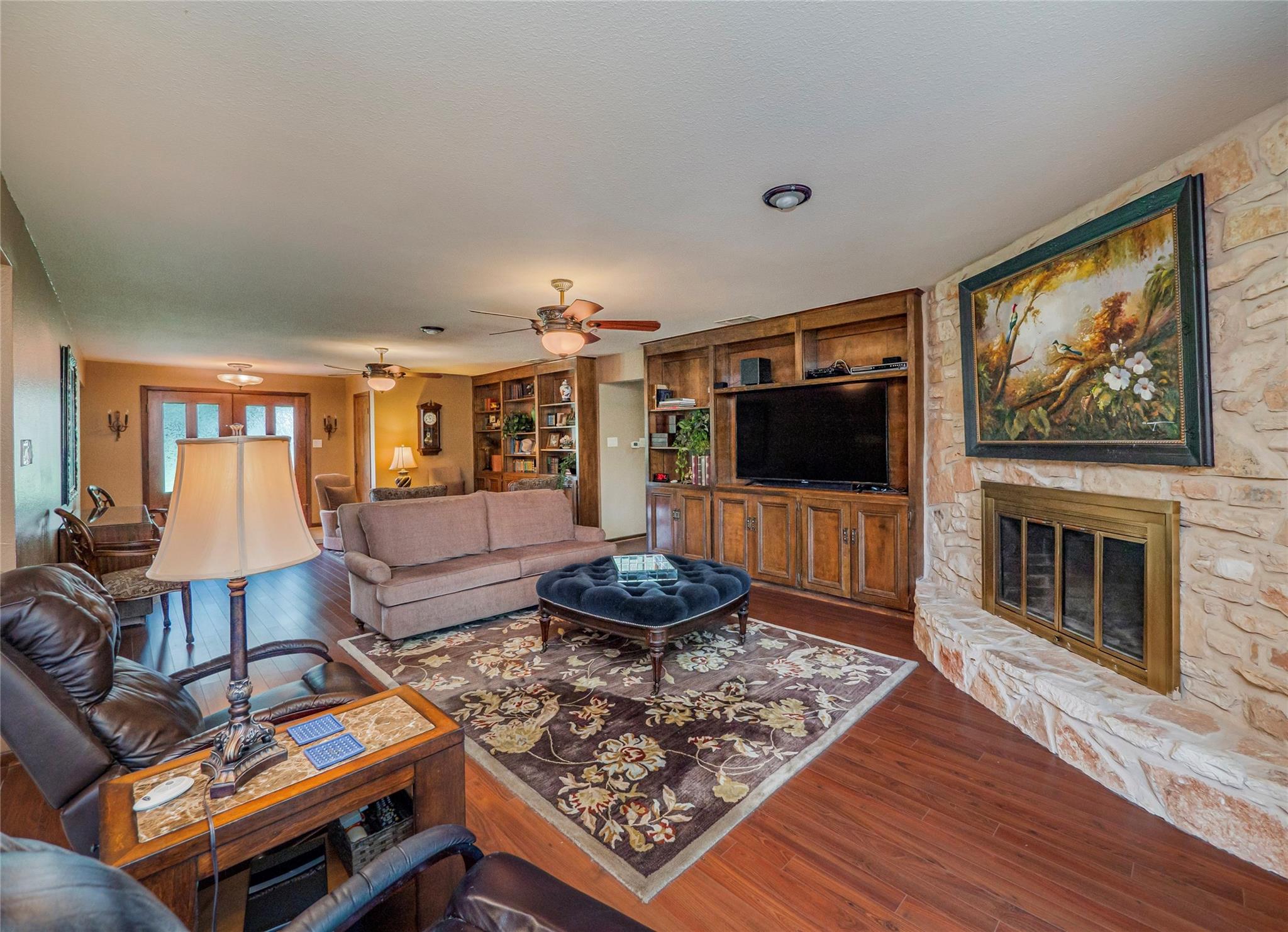 | Interior Features | Bookcases, Built-in Features, Ceiling Fan(s), High Ceilings, Granite Counters, Double Vanity, Electric Dryer Hookup, Entrance Foyer, French Doors, Kitchen Island, Multiple Dining Areas, Multiple Living Areas, Open Floorplan, Pantry, Primary Bedroom on Main, Walk-In Closet(s), Washer Hookup | |