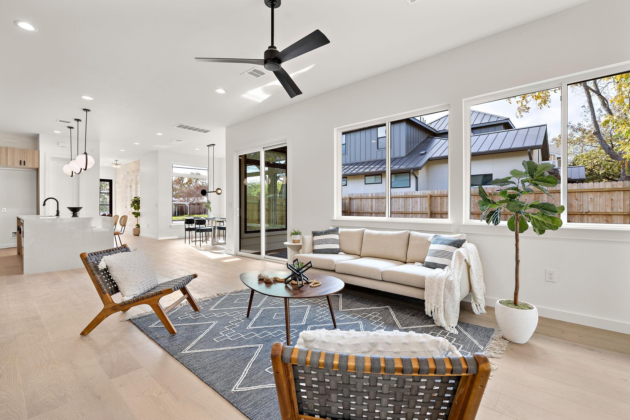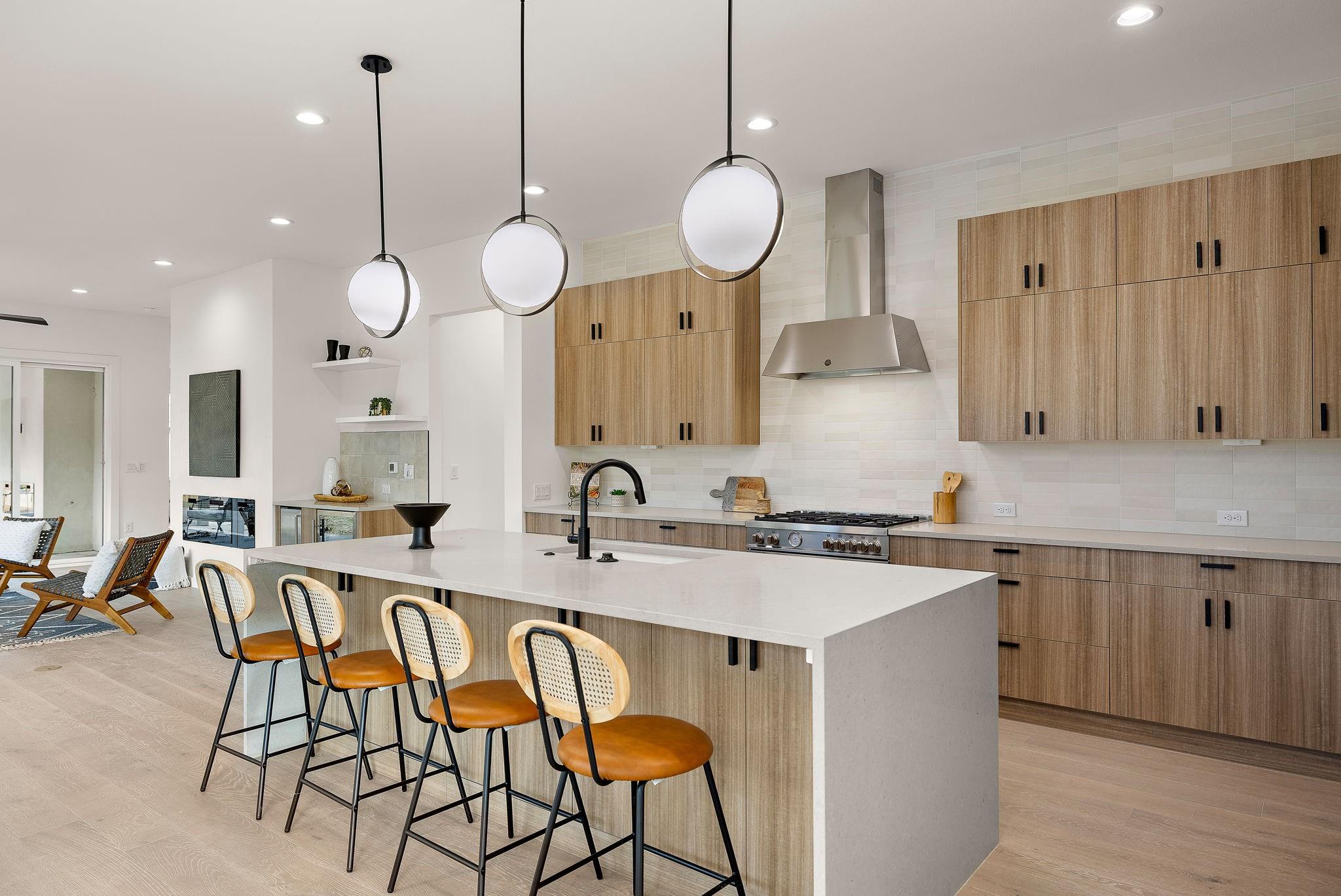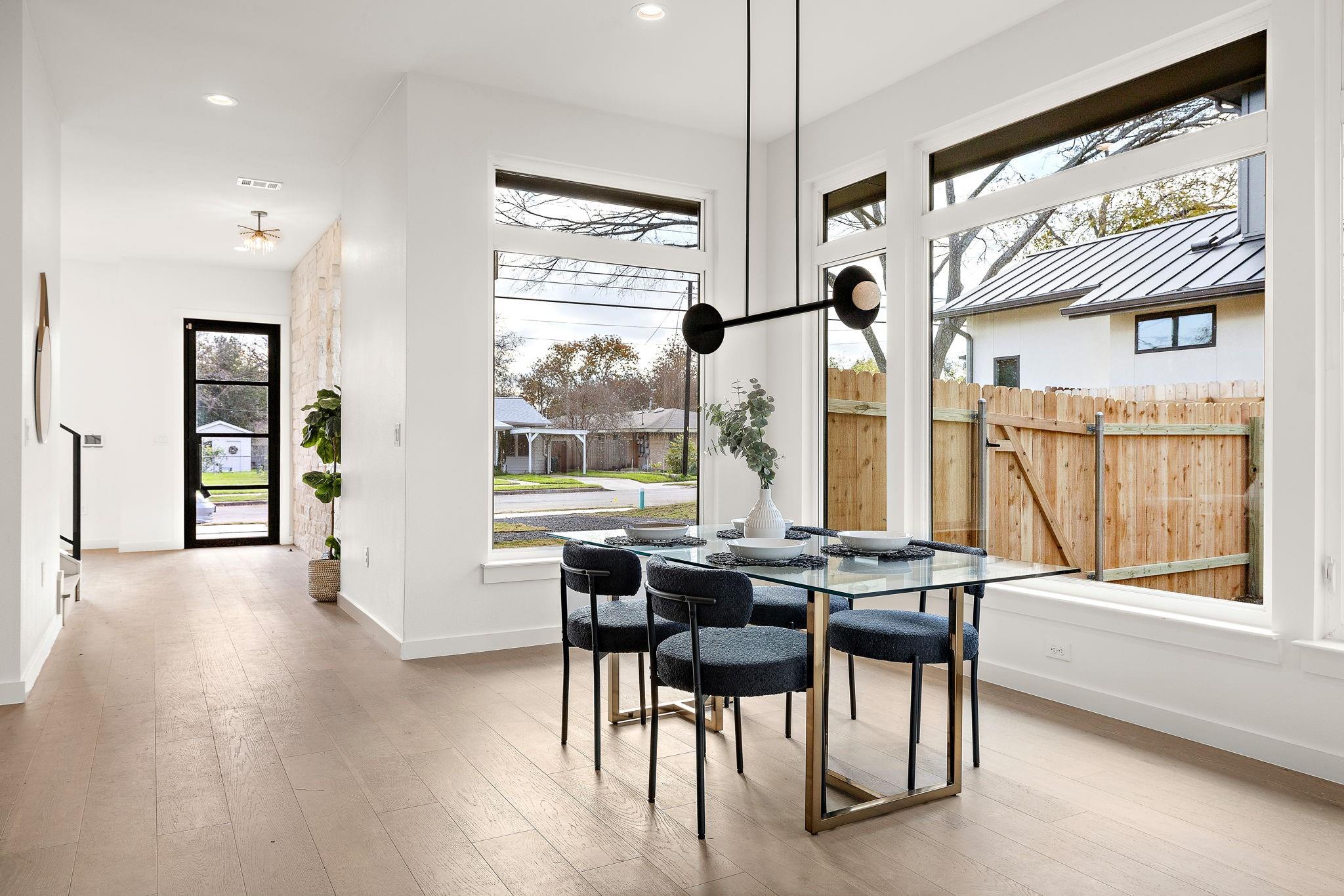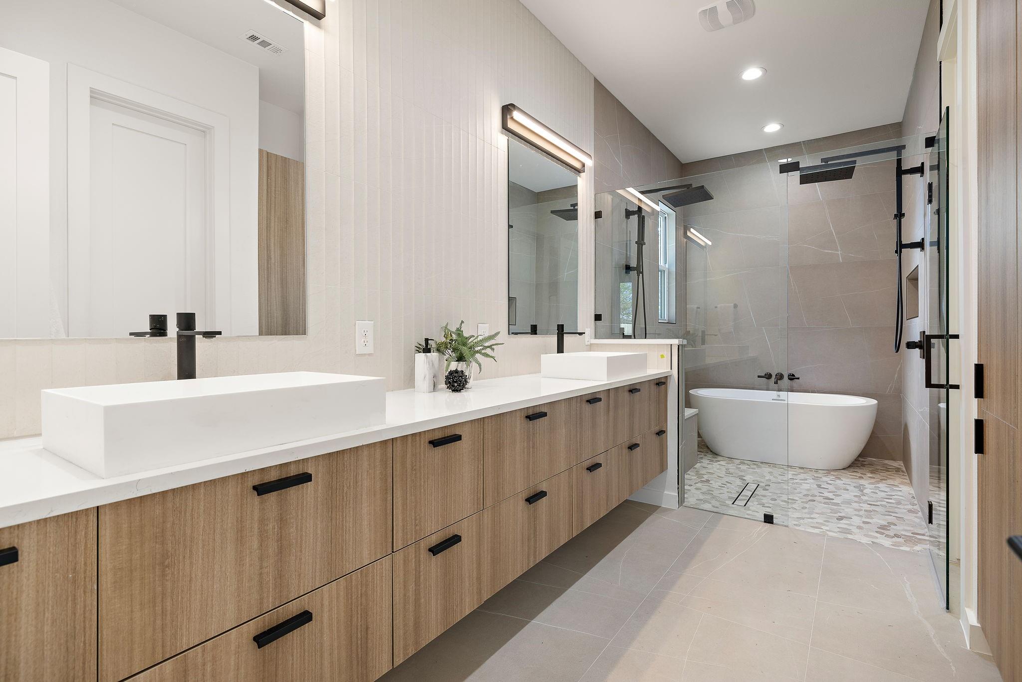 This brand-new construction masterpiece offers the perfect blend of modern luxury and classic charm, making it a true gem in this vibrant community. As you approach the house, you'll be captivated by its natural rock facade, characterized by a harmonious blend of contemporary architecture and traditional design. Step inside, and you'll find a spacious, light-filled flex area ideal for formal living, or an open concept office space. Meander deeper into the expansive home and you will discover the open kitchen with direct access to living and dining spaces. Enjoy the chef's paradise, featuring state-of-the-art appliances, custom cabinetry, and luxurious quartz countertops. Whether you're preparing a casual breakfast or hosting a grand dinner party, this kitchen is sure to inspire your culinary creativity. Adjacent to the kitchen, you'll discover a wall to wall windowed dining area, ideal for enjoying your morning coffee or hosting a formal dinner party. This home boasts four generously sized bedrooms. Two of these bedrooms are luxurious primary suites, complete with spa-like bathrooms featuring custom amenities such as double vanities, oversized soaking tub, and walk-in showers. These private retreats provide flexibility for multi-generational living or a private guest retreat. In addition to the bedrooms, the house features two distinct living spaces, each offering its own unique ambiance and wet bar. The first living area, on the first level, also allows you to enjoy a cozy fire anytime of year with its stunning built in electric fireplace. The second living space, situated upstairs, is a cozy haven where you can relax with your loved ones. One of the highlights of this Crestview home is the expansive backyard, a true oasis of tranquility. Nestled within this outdoor paradise is a stunning dipping pool,and large shaded grassy area. As the sun sets, gather around the exterior fireplace on the covered patio, overlooking the pool and landscaped yard.