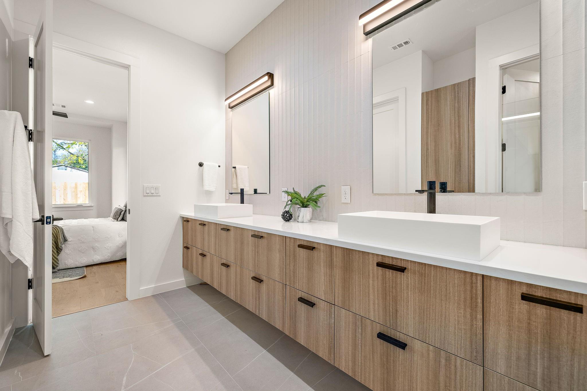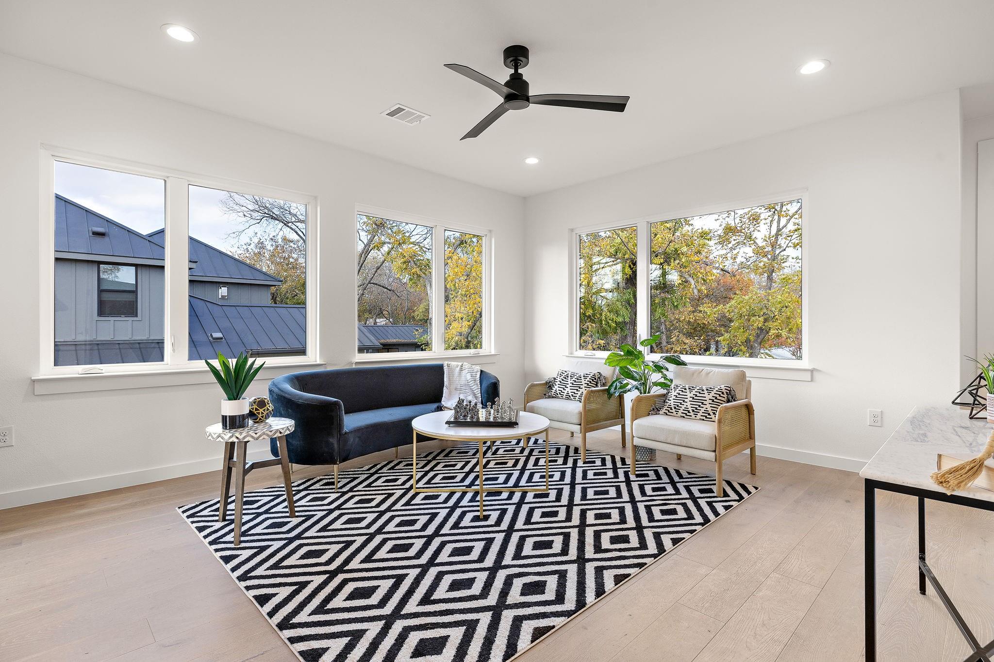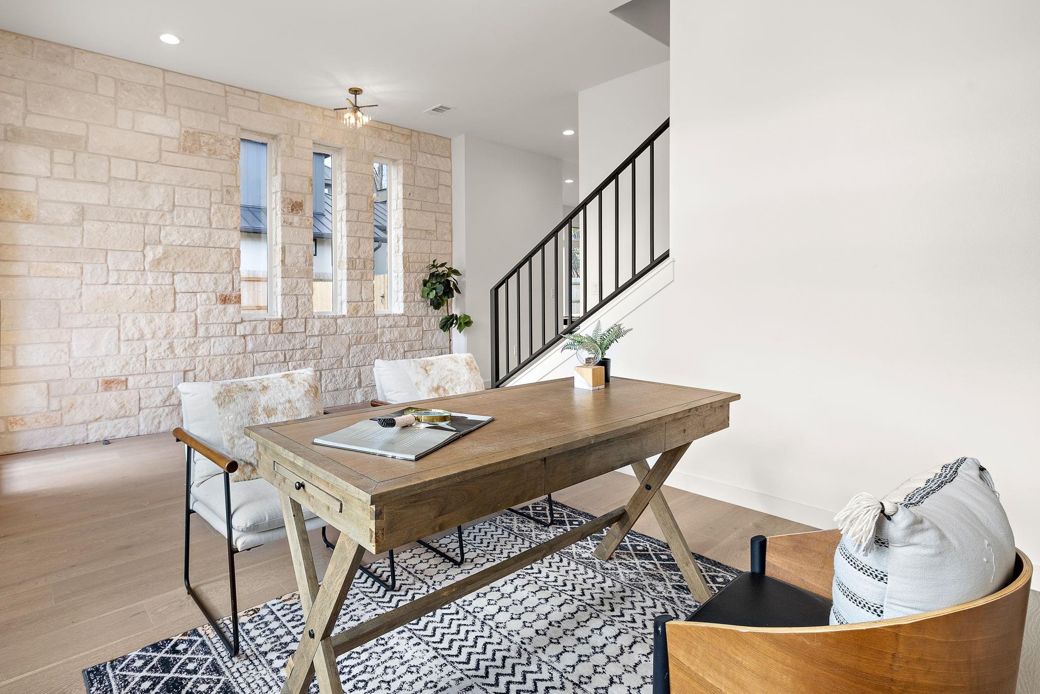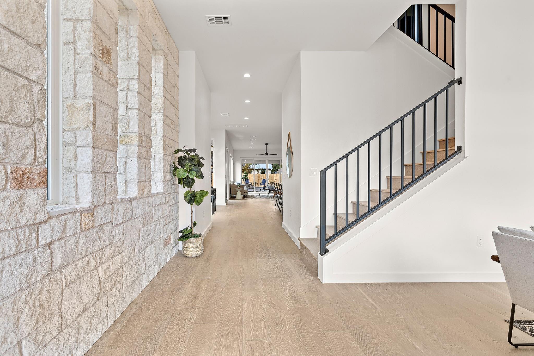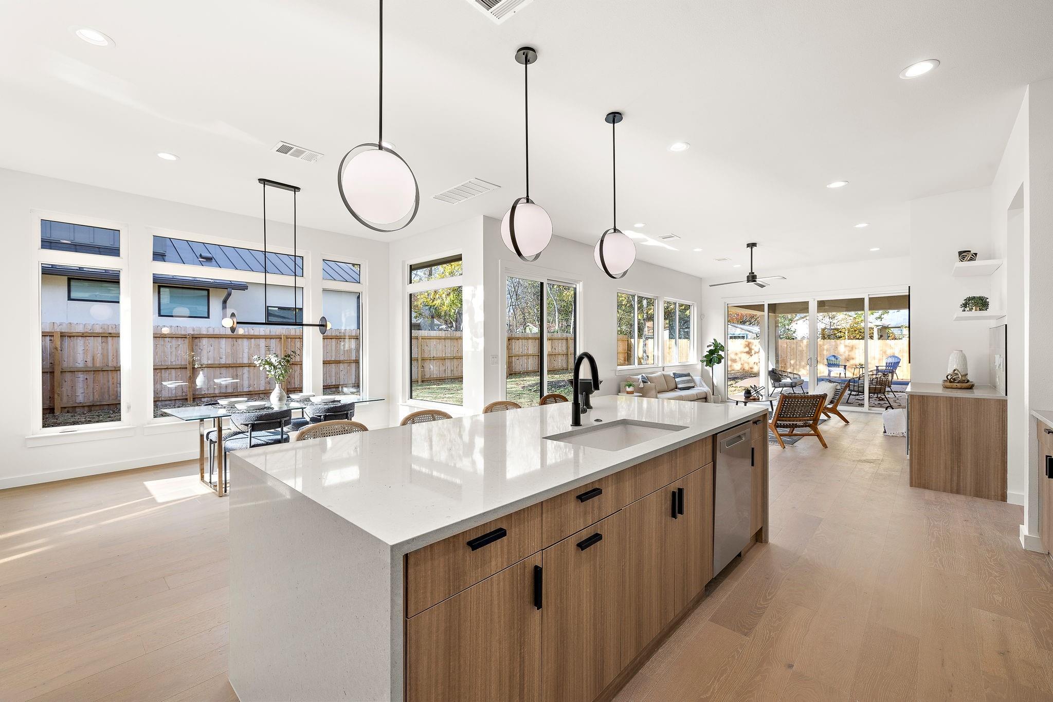 This brand-new construction masterpiece offers the perfect blend of modern luxury and classic charm, making it a true gem in this vibrant community. As you approach the house, you'll be captivated by its natural rock facade, characterized by a harmonious blend of contemporary architecture and traditional design. Step inside, and you'll find a spacious, light-filled flex area ideal for formal living, or an open concept office space. Meander deeper into the expansive home and you will discover the open kitchen with direct access to living and dining spaces. Enjoy the chef's paradise, featuring state-of-the-art appliances, custom cabinetry, and luxurious quartz countertops. Whether you're preparing a casual breakfast or hosting a grand dinner party, this kitchen is sure to inspire your culinary creativity. Adjacent to the kitchen, you'll discover a wall to wall windowed dining area, ideal for enjoying your morning coffee or hosting a formal dinner party. This home boasts four generously sized bedrooms. Two of these bedrooms are luxurious primary suites, complete with spa-like bathrooms featuring custom amenities such as double vanities, oversized soaking tub, and walk-in showers. These private retreats provide flexibility for multi-generational living or a private guest retreat. In addition to the bedrooms, the house features two distinct living spaces, each offering its own unique ambiance and wet bar. The first living area, on the first level, also allows you to enjoy a cozy fire anytime of year with its stunning built in electric fireplace. The second living space, situated upstairs, is a cozy haven where you can relax with your loved ones. One of the highlights of this Crestview home is the expansive backyard, a true oasis of tranquility. Nestled within this outdoor paradise is a stunning dipping pool,and large shaded grassy area. As the sun sets, gather around the exterior fireplace on the covered patio, overlooking the pool and landscaped yard.