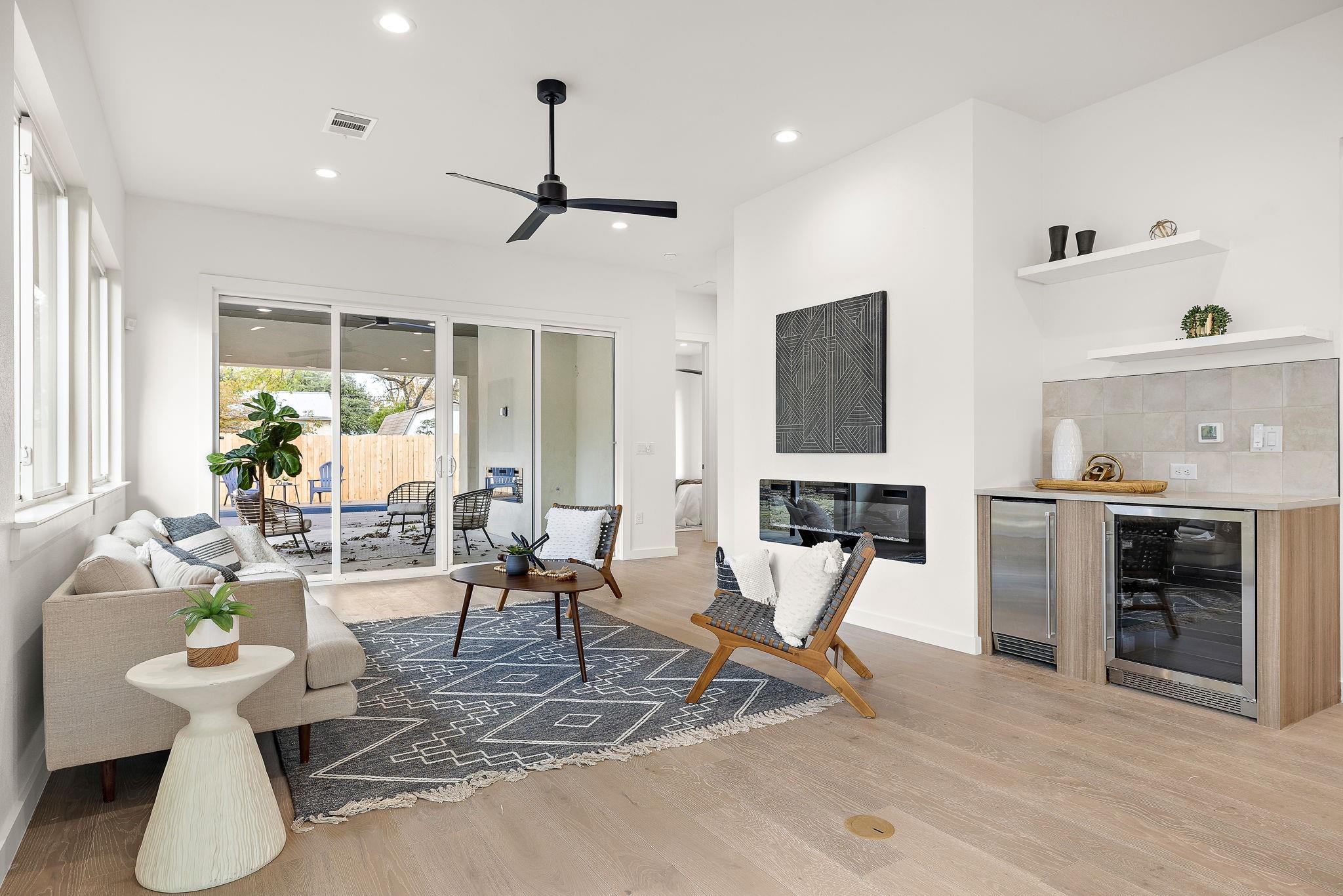 | Fireplace Info | Electric, Living Room, Outside, Ventless | |